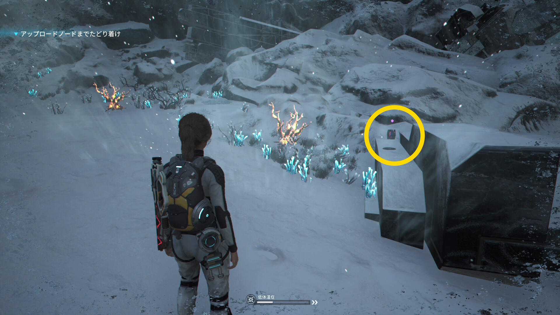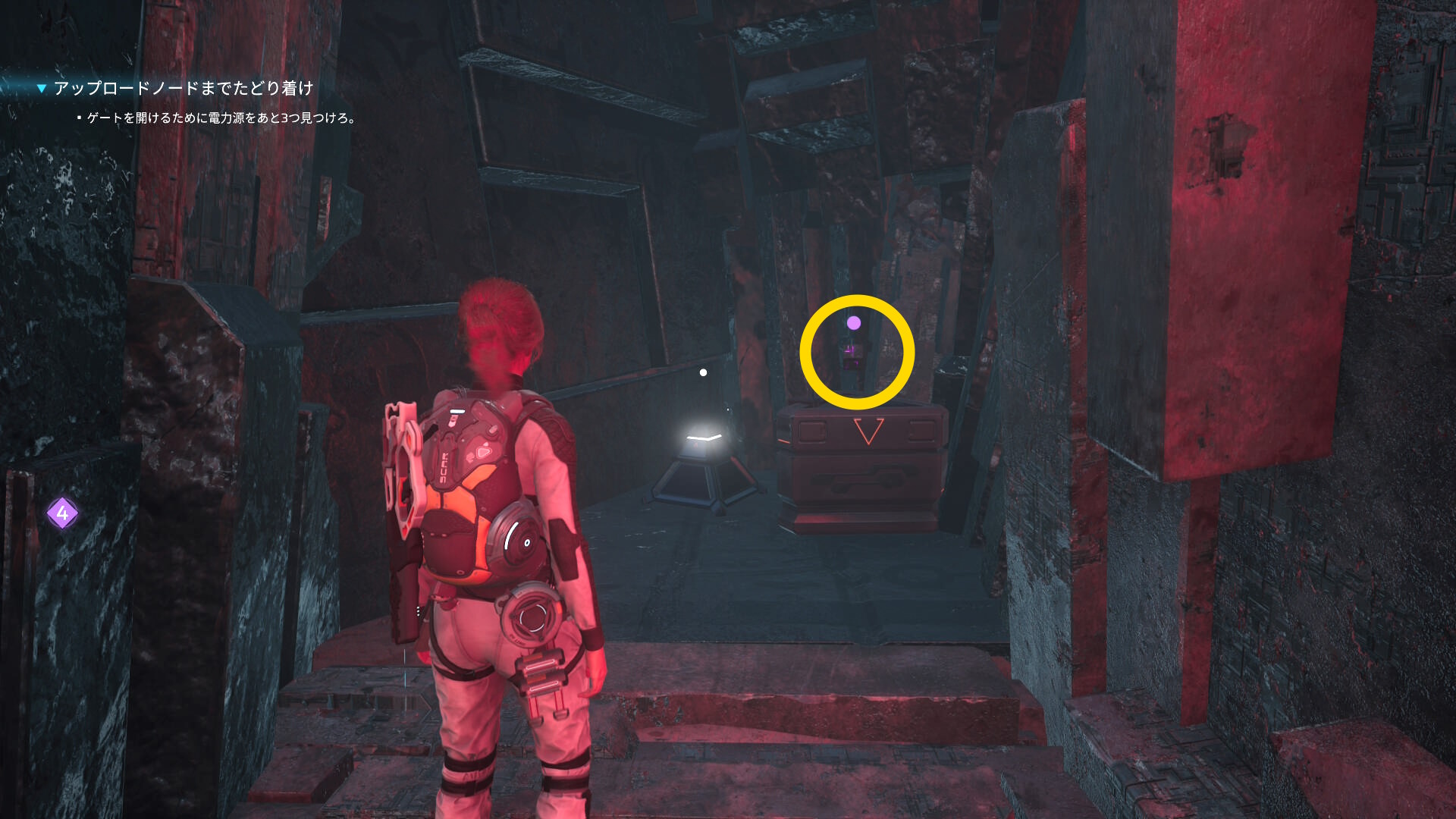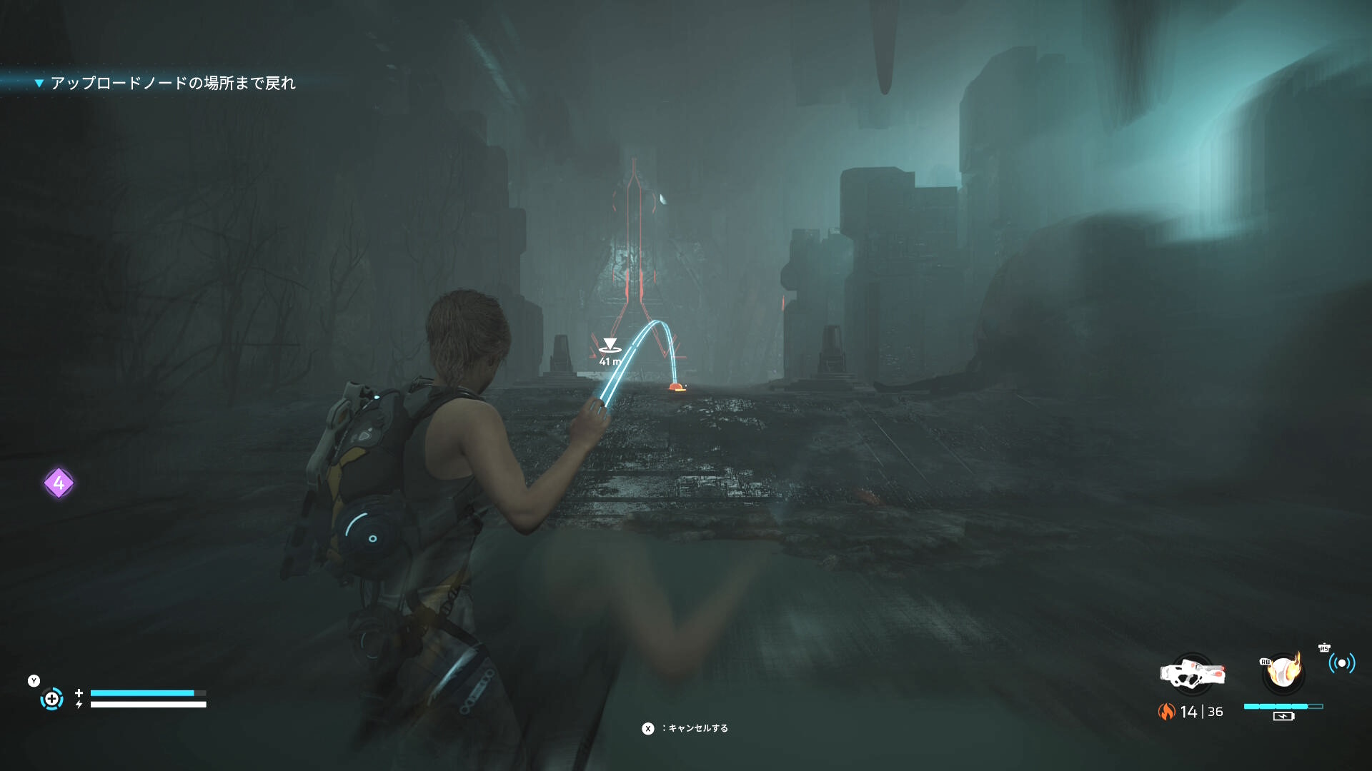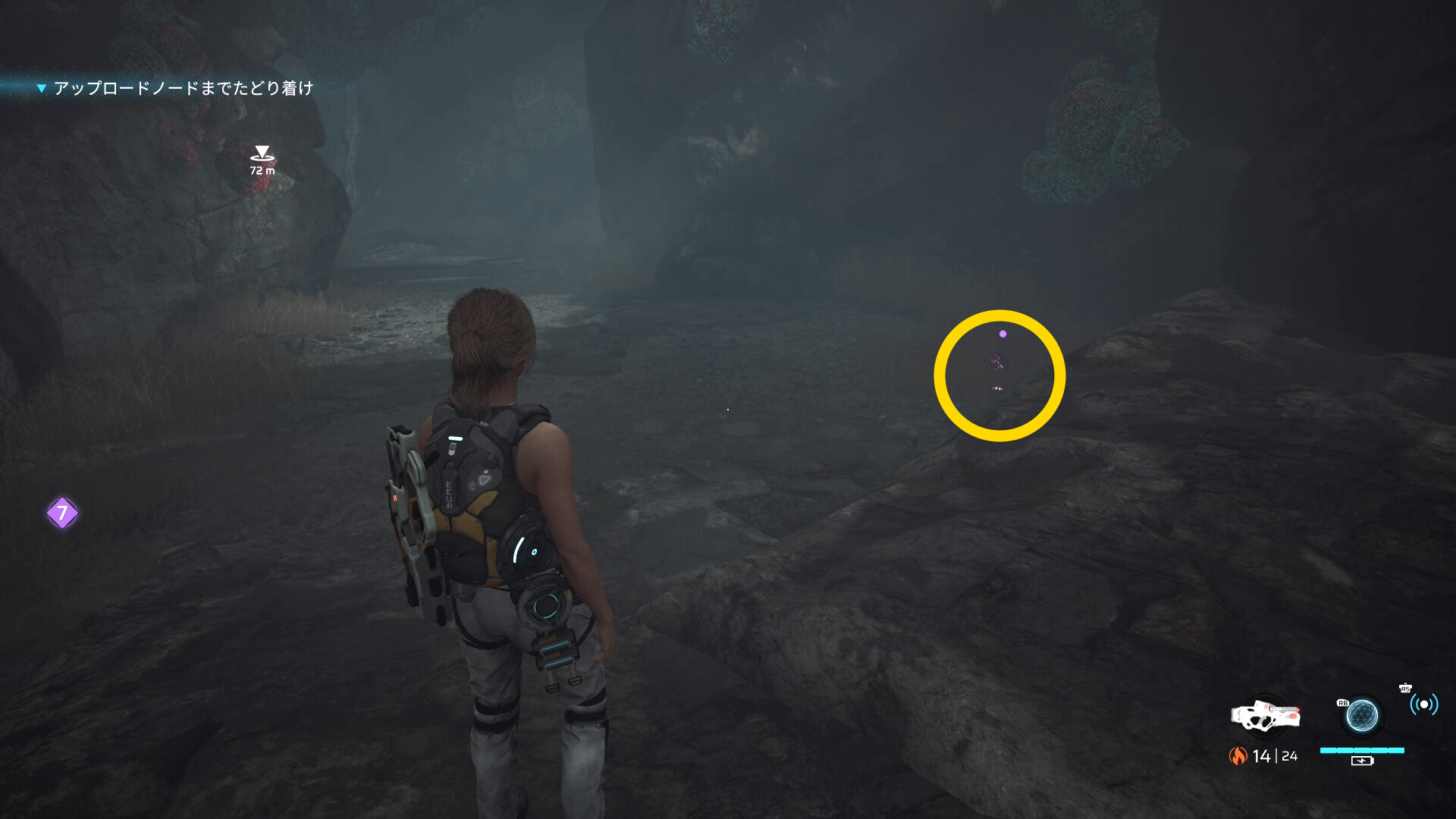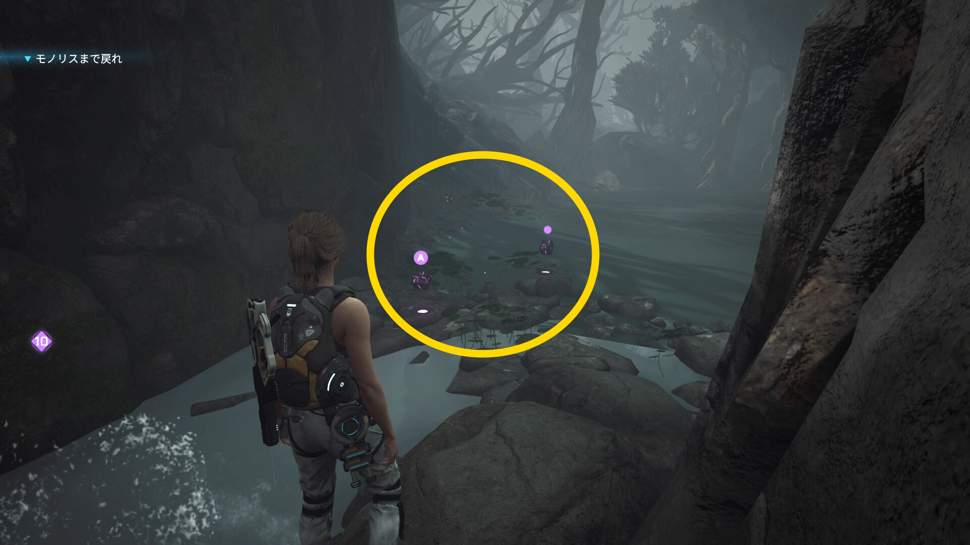 - すぐの段差を登ると エイリアンの柱(17/17) ⇒ 柱の起動忘れがなければ 実績「終わりなき世界」解除