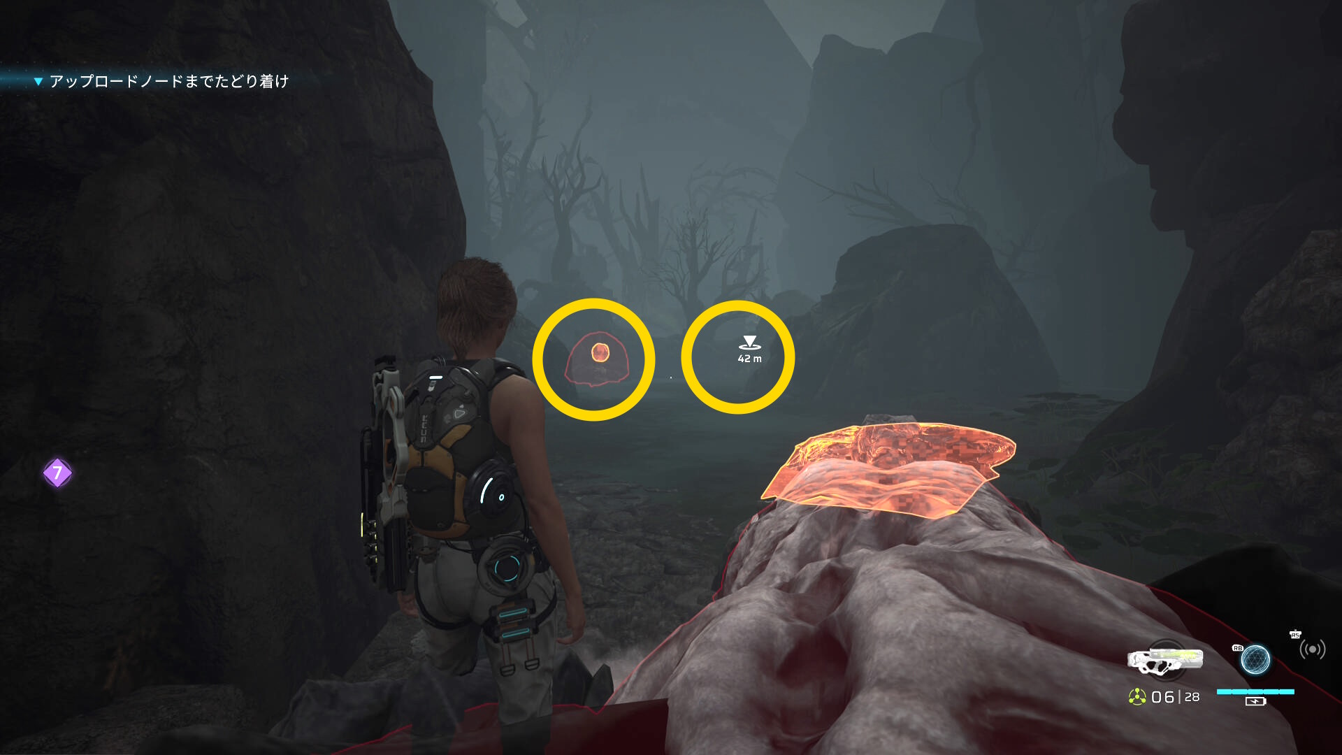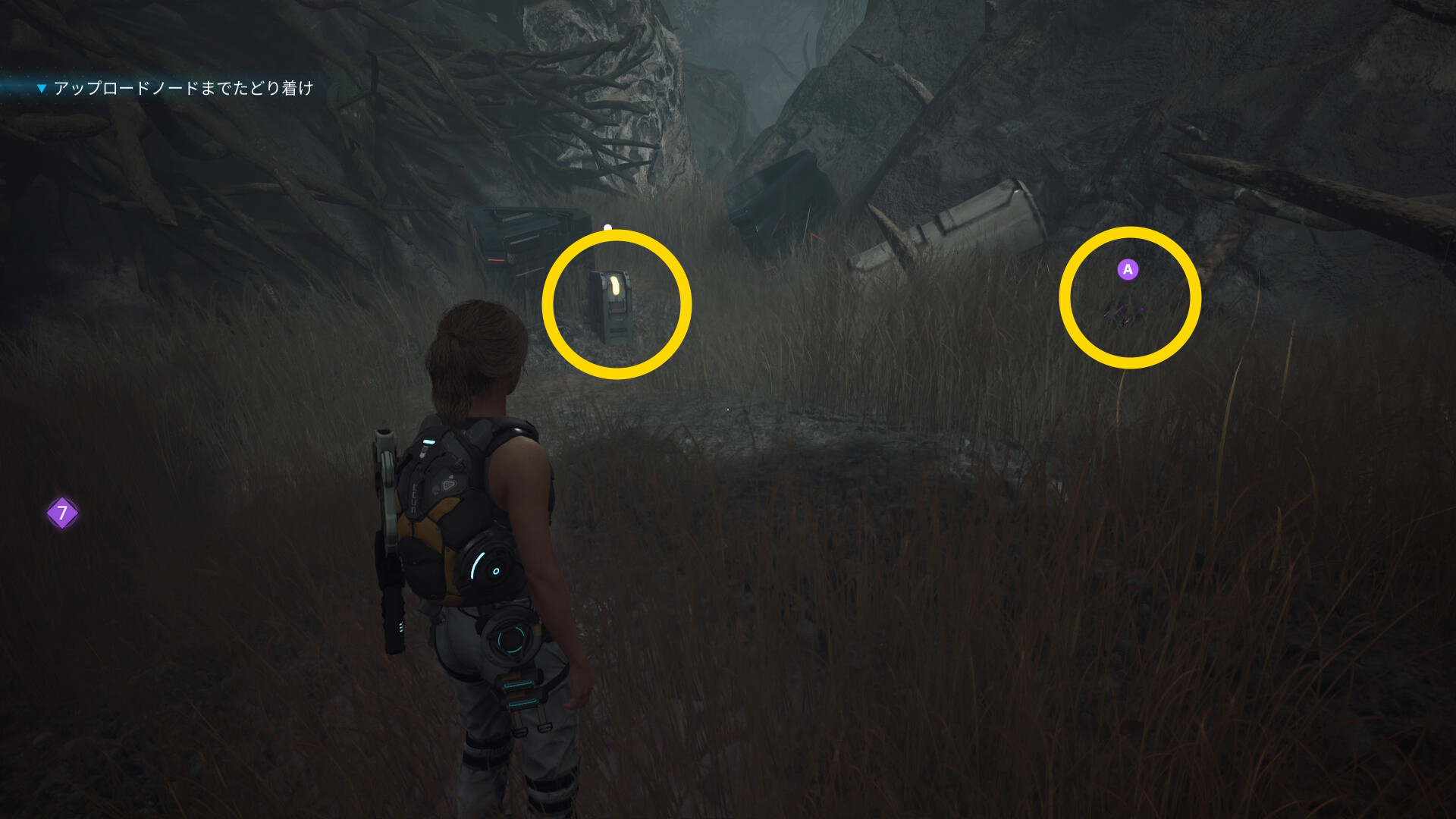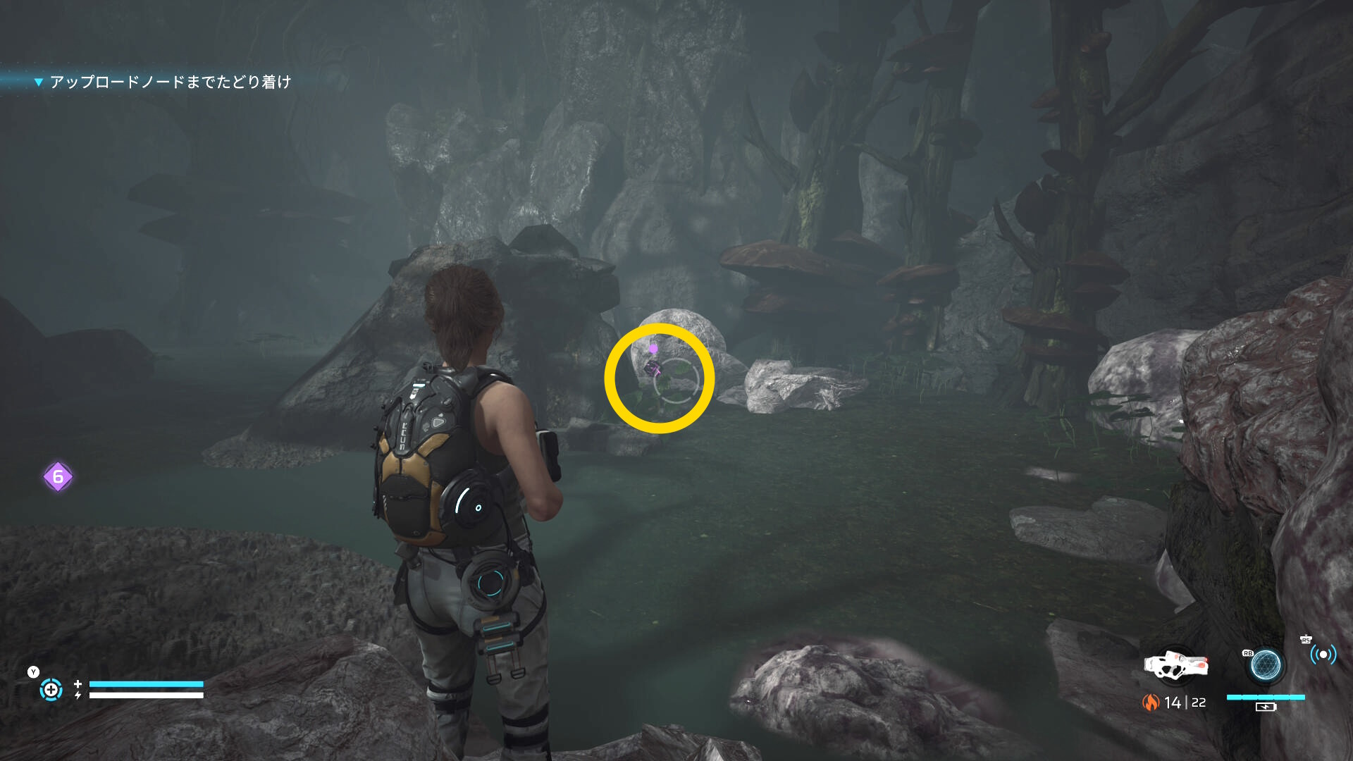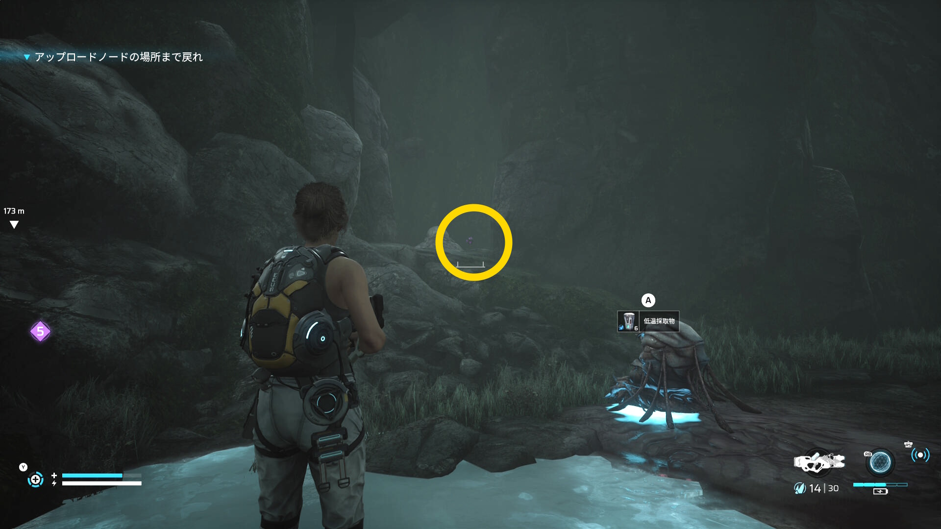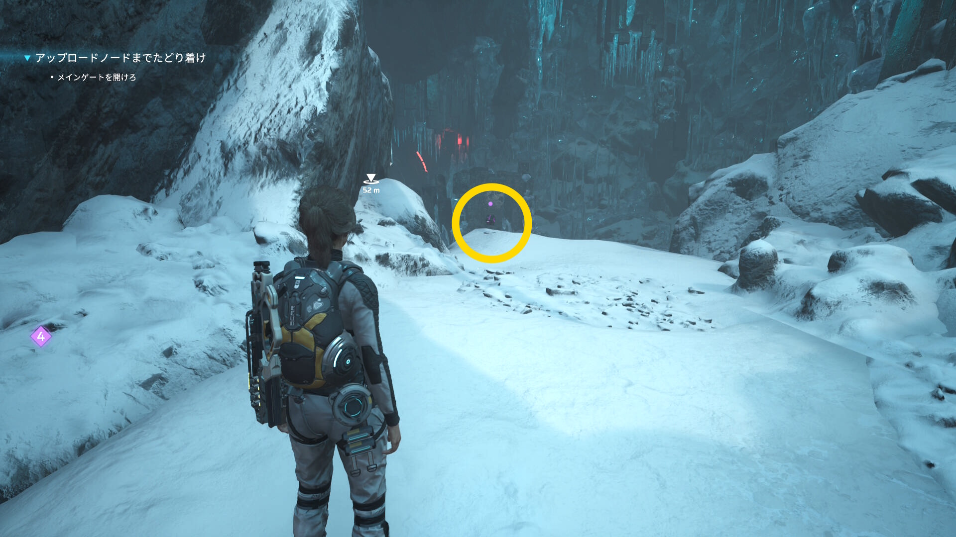 - すぐの段差を登ると エイリアンの柱(17/17) ⇒ 柱の起動忘れがなければ 実績「終わりなき世界」解除