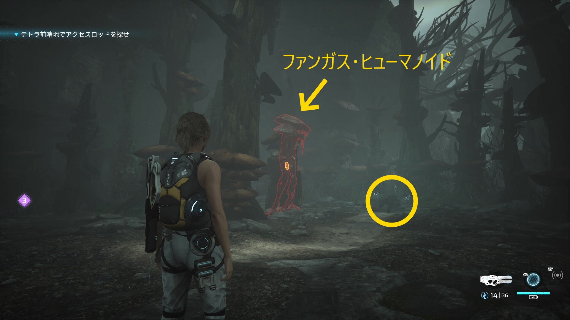 - キル後、ファンガス・ヒューマノイドをスキャン(敵生物のスキャン:21/21) ⇒ 敵生物のスキャン忘れがなければ 実績「科学的コレクション」解除