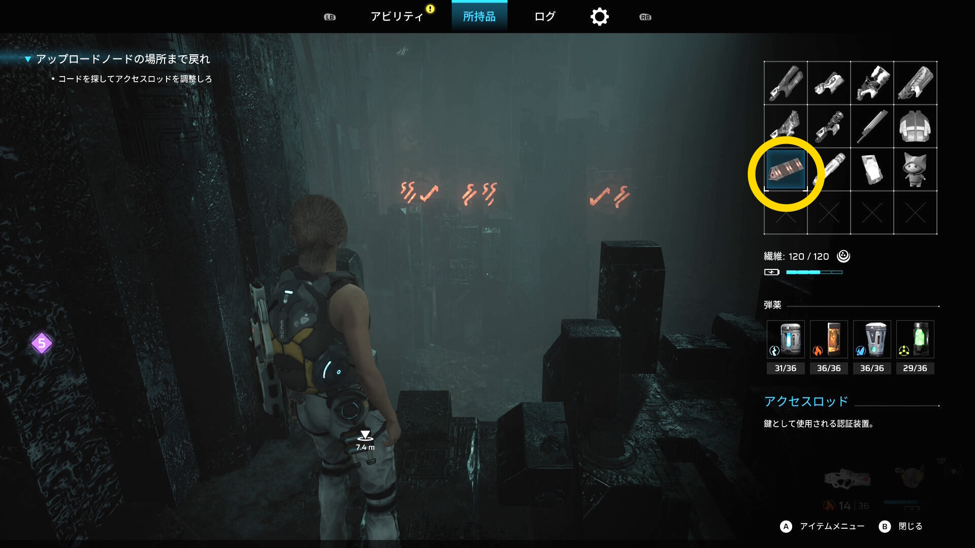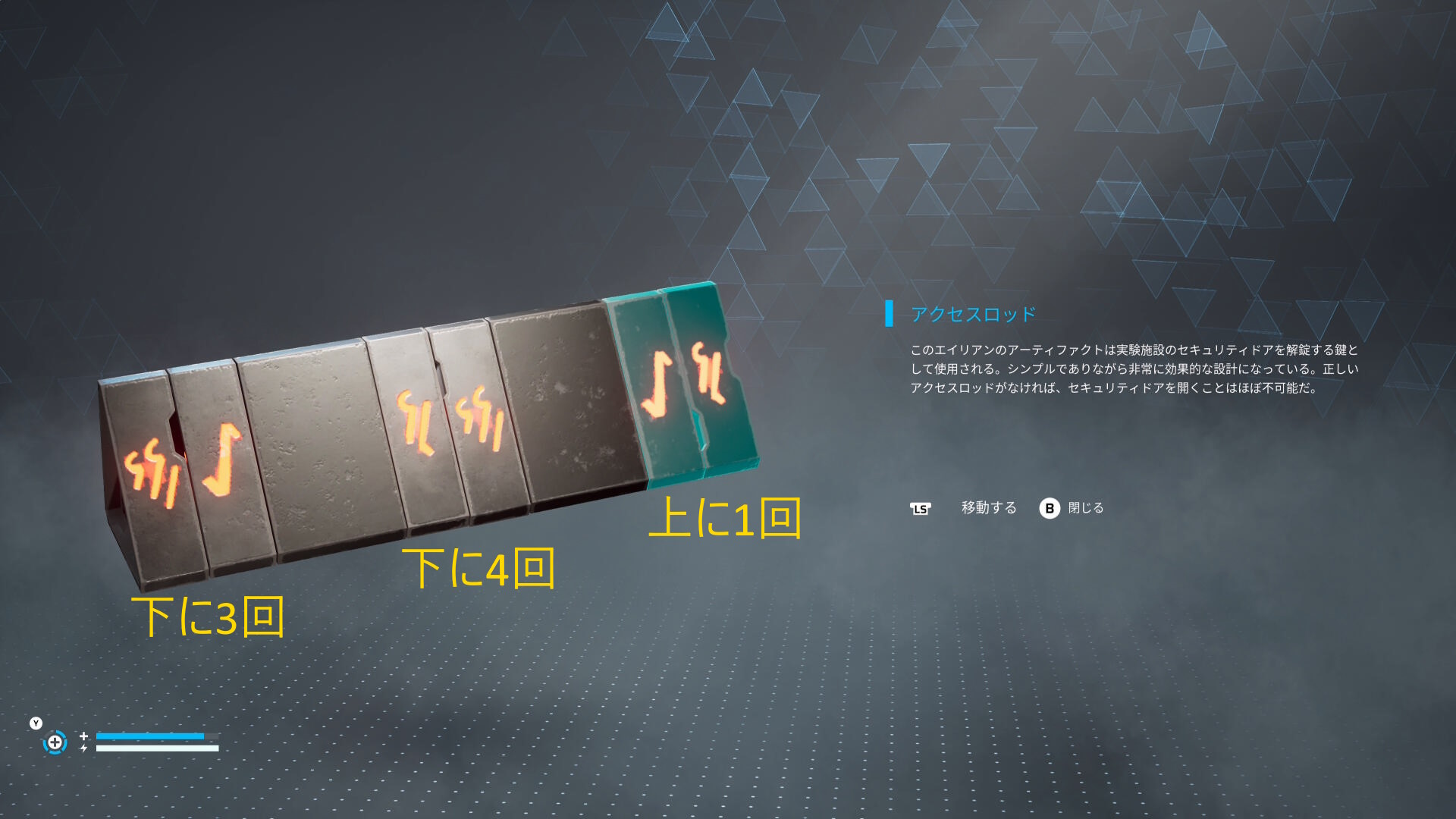 - なお、「アクセスロッド」が見つからなくても「知識キューブ」を回収したときと同じようにアビリティポイントが貯まるので無駄はない。ただし、「アクセスロッド」を発見後は死体を調べてもポイントは貯まらない