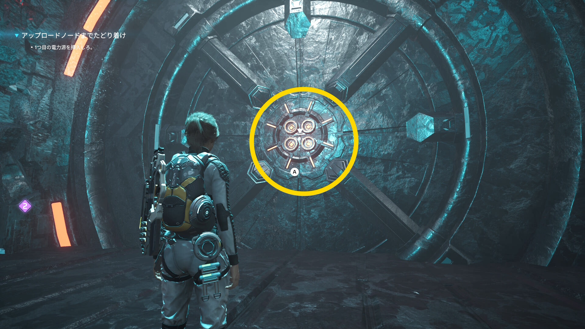 - アップロードノードの操作パネルを背にして、右前方のゲートへ(下画像①)