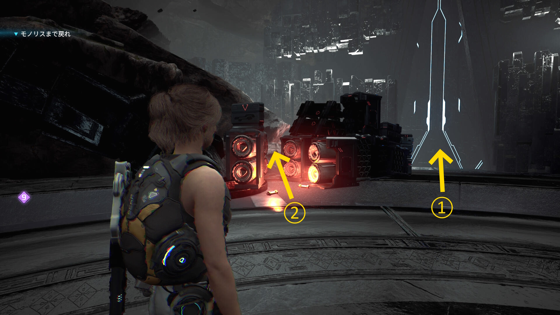 研究施設にたどり着くために付近のモノリスを使用しろ
