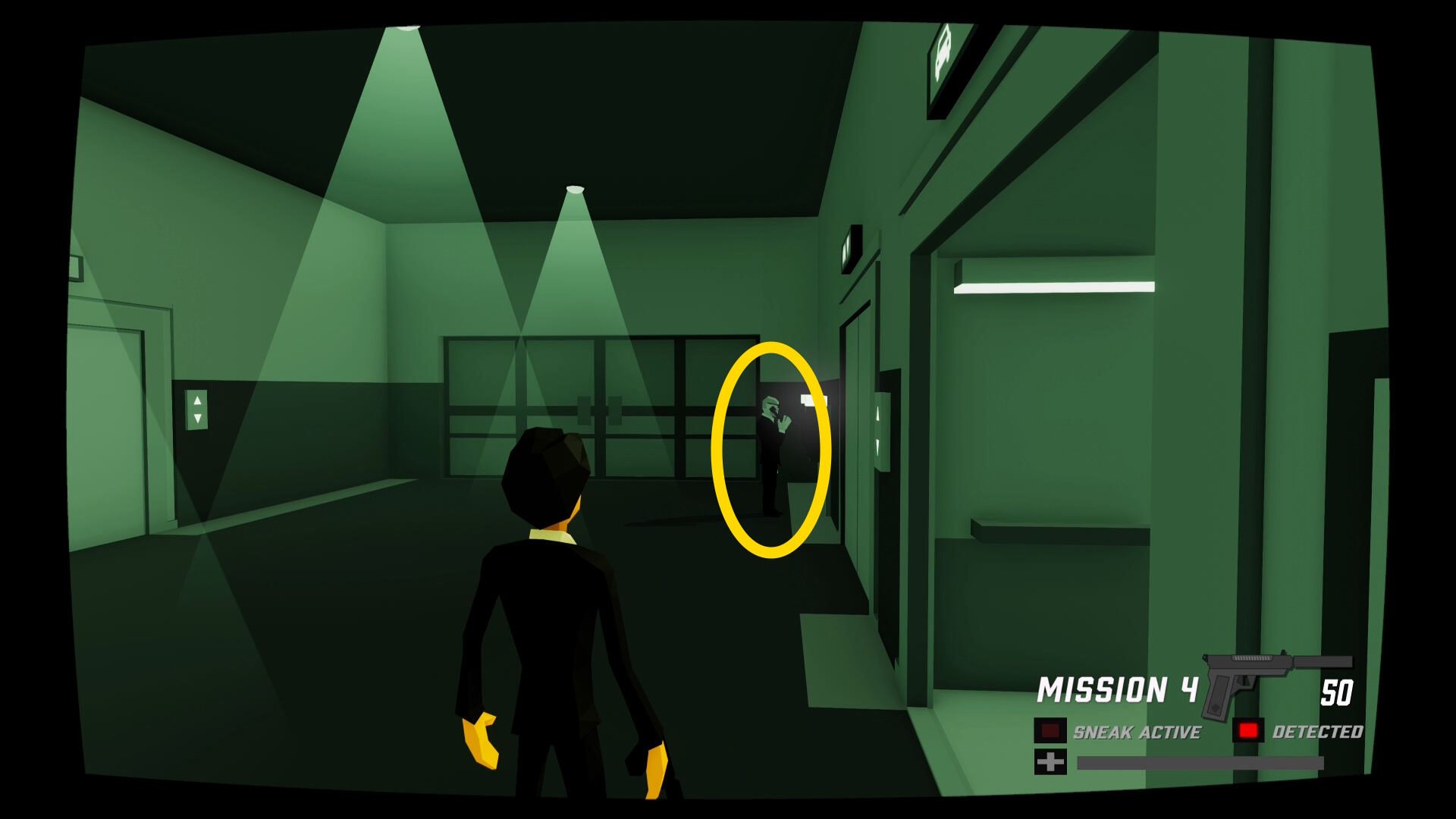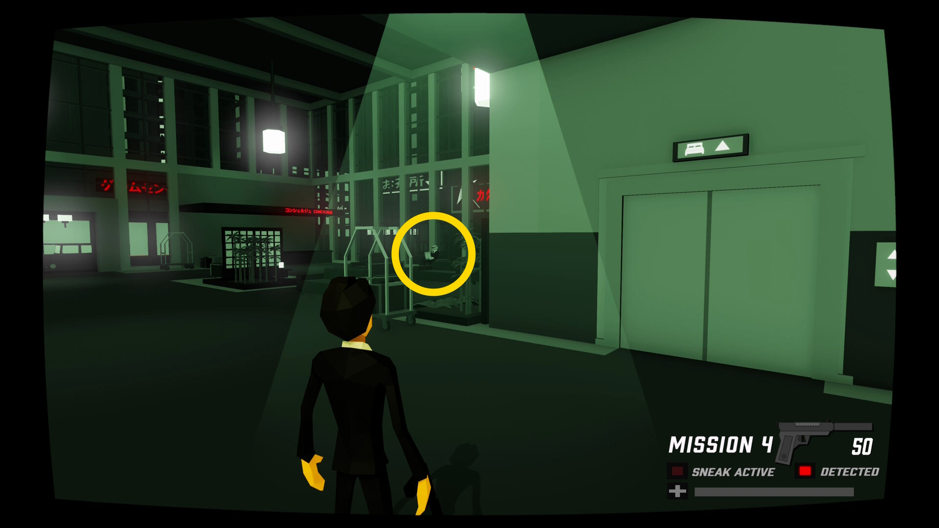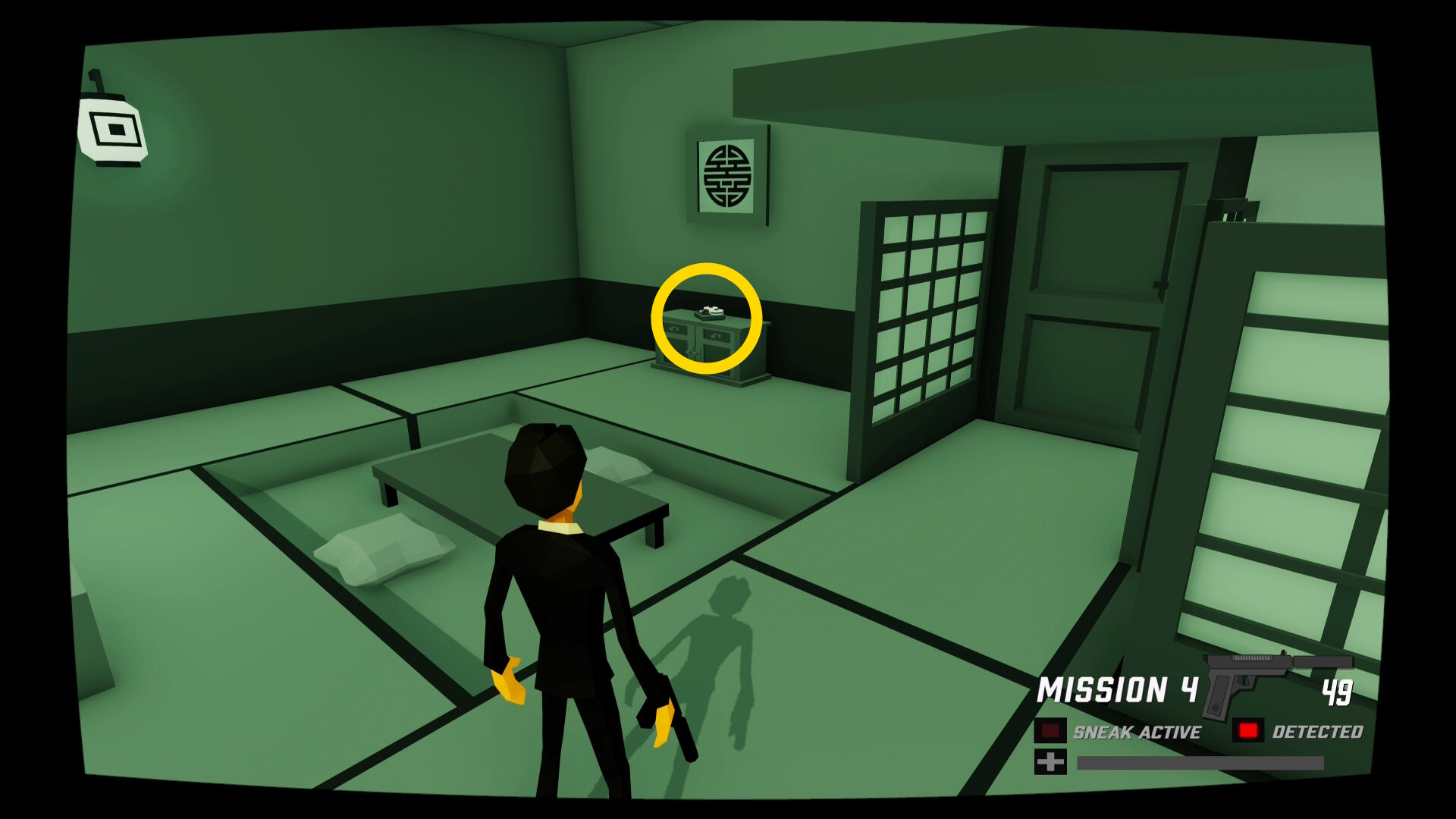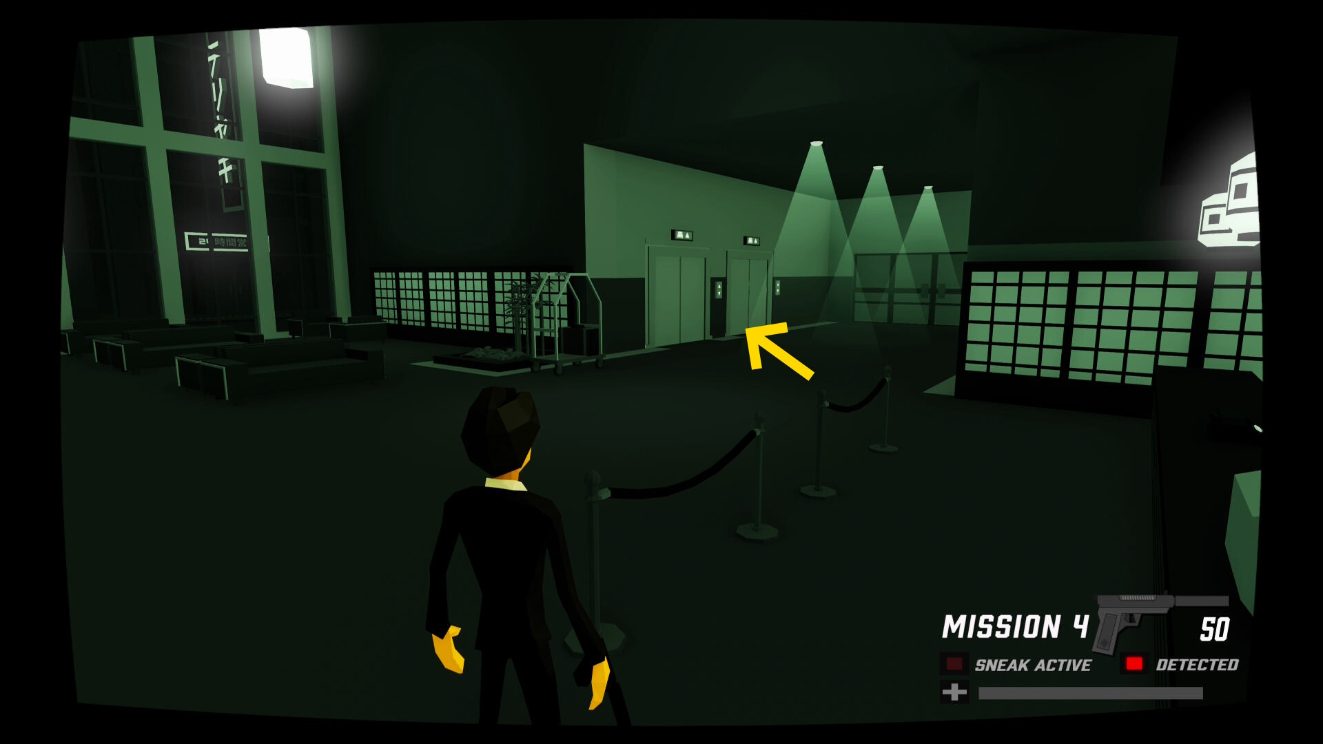 - 少し進むと窓ガラスを隔てた部屋に CIA のスパイがいる