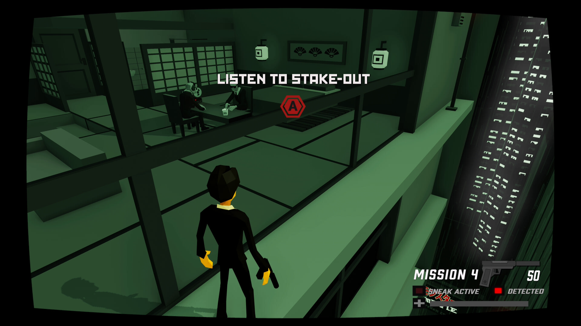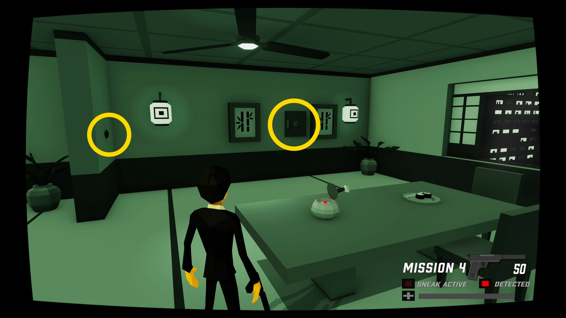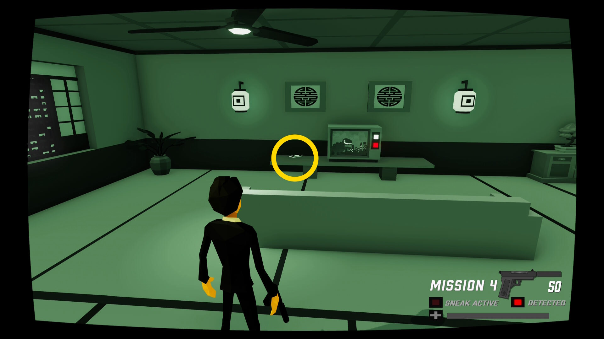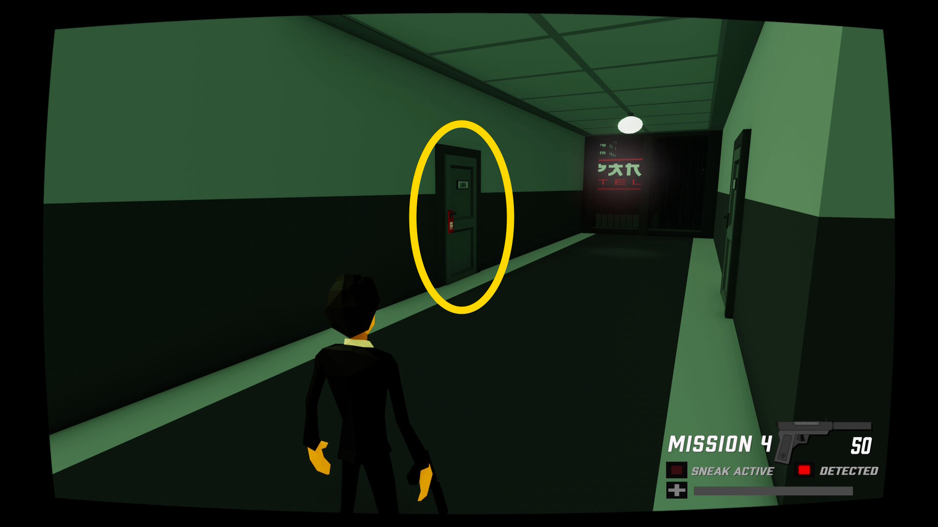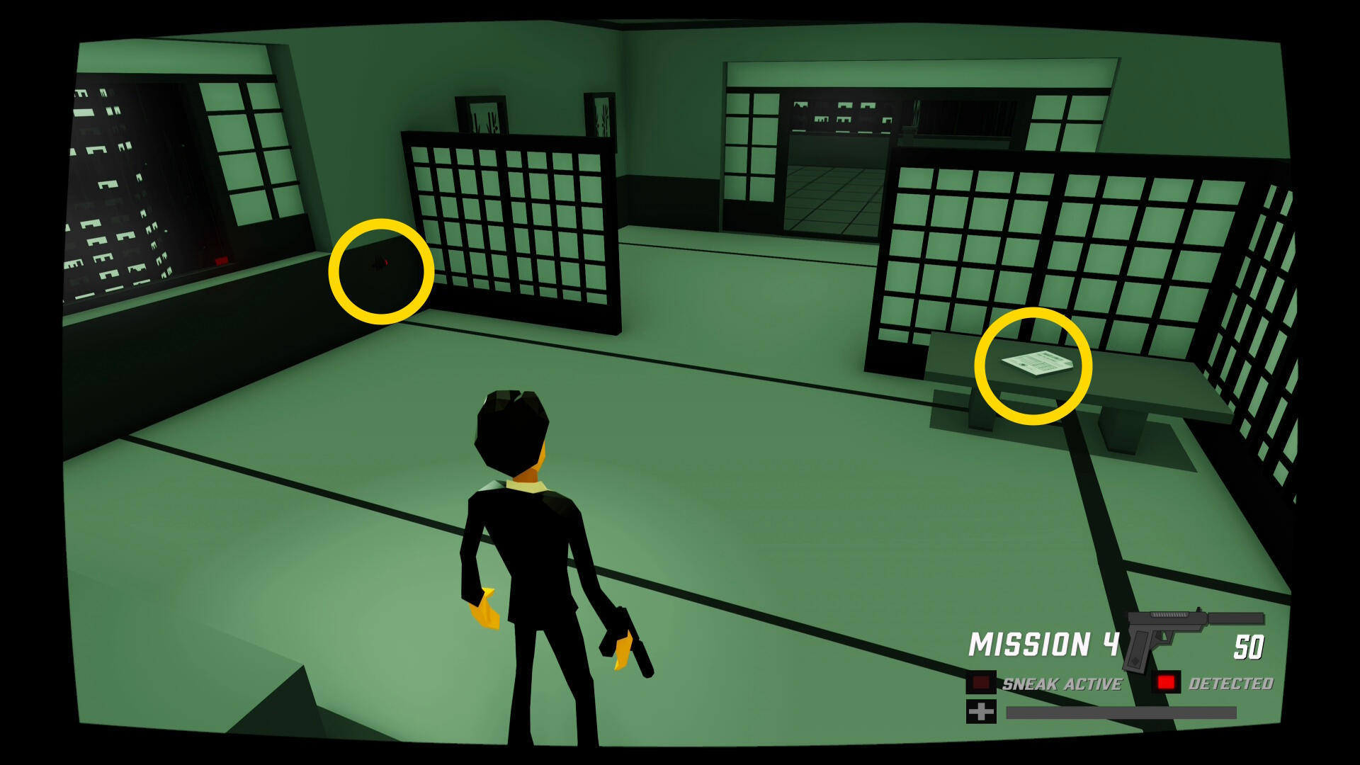 - 少し進むと窓ガラスを隔てた部屋に CIA のスパイがいる