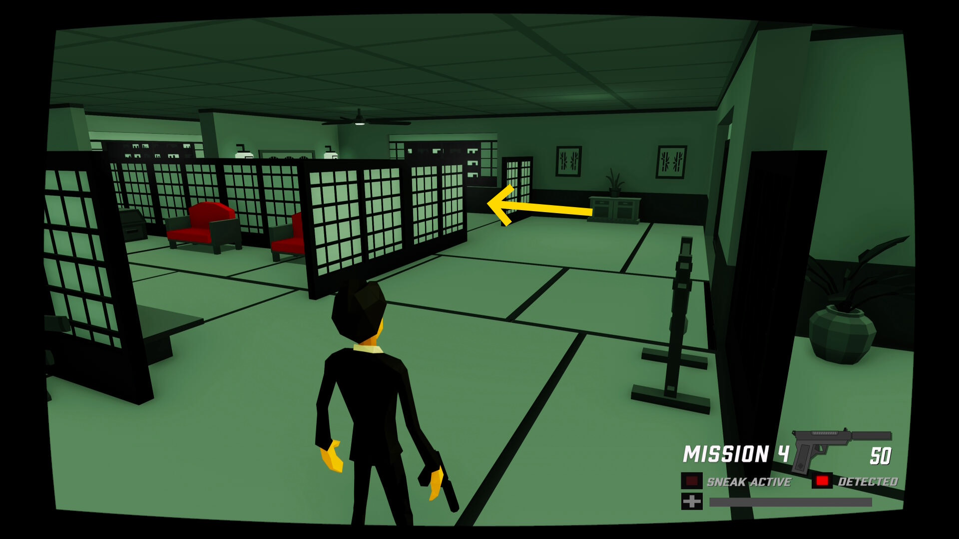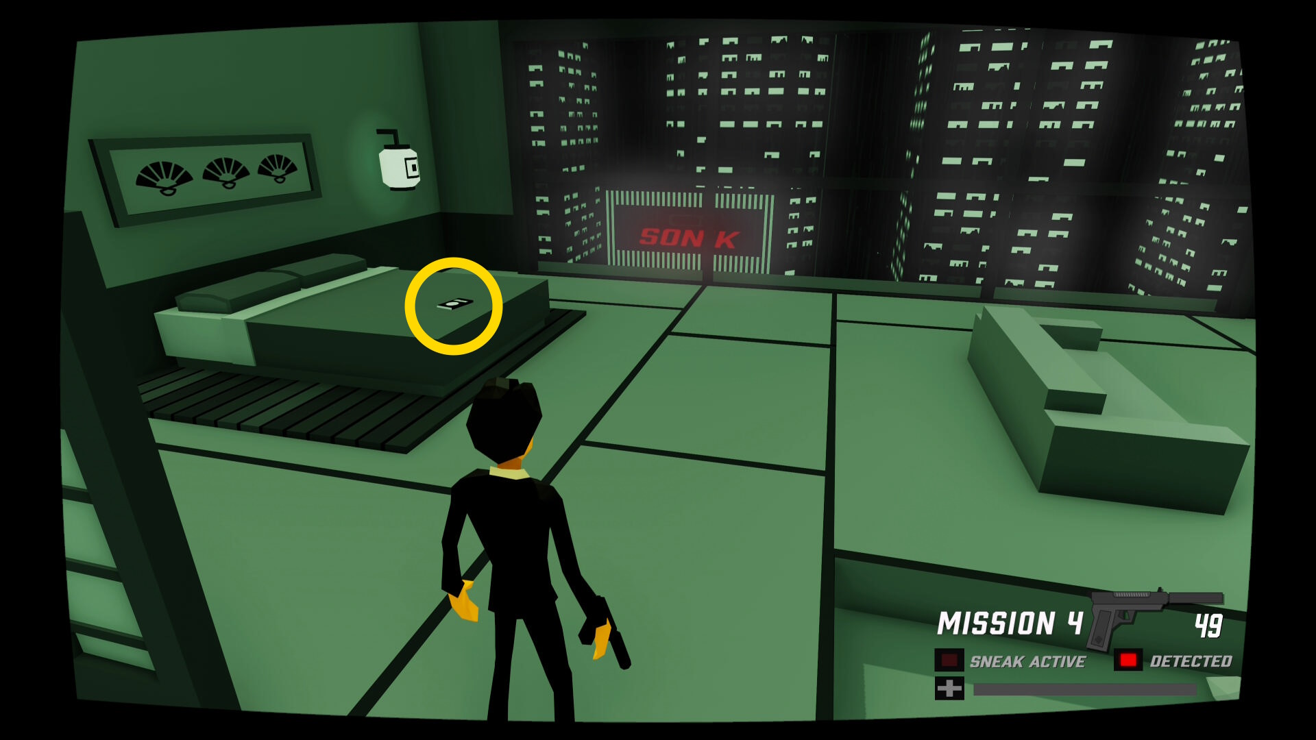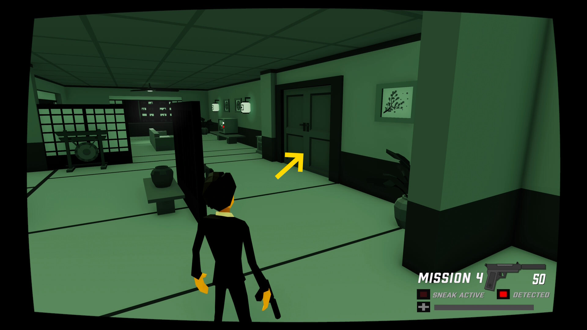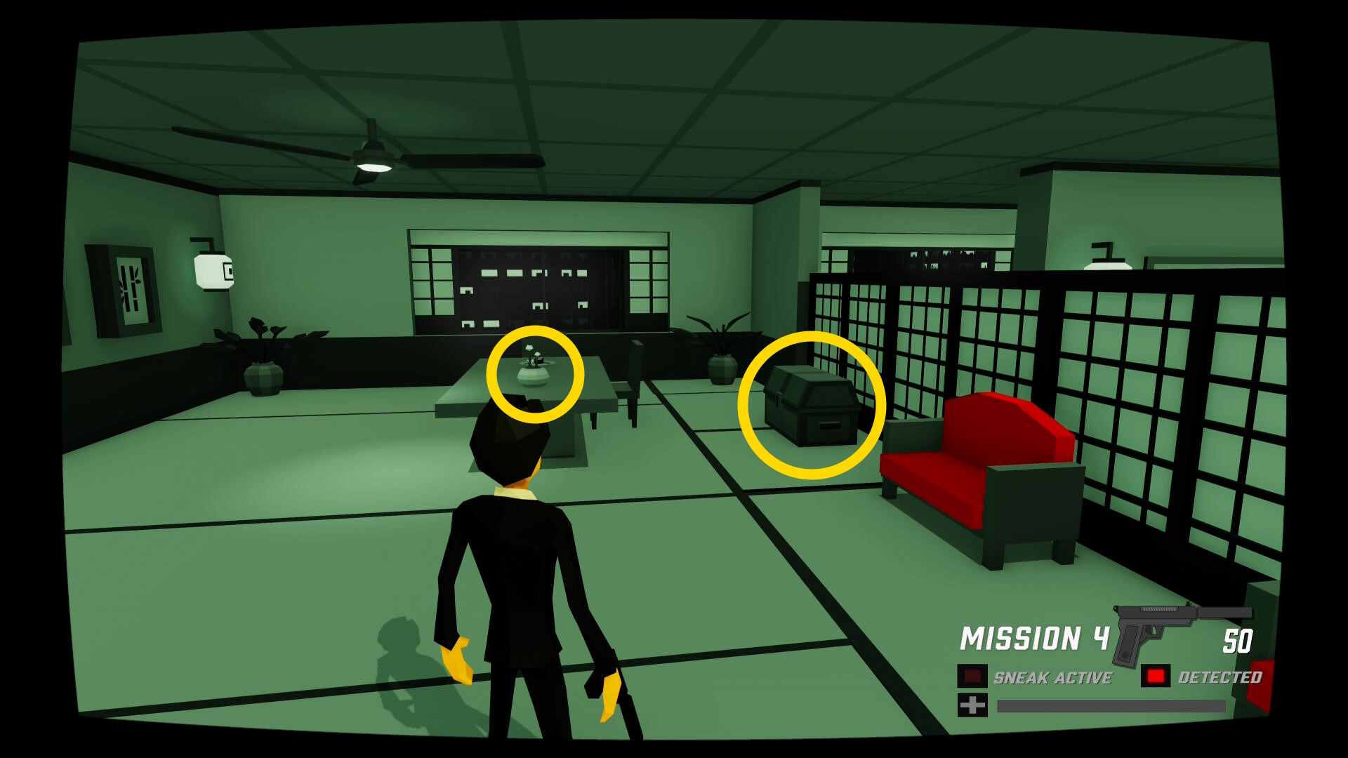 - 少し進むと窓ガラスを隔てた部屋に CIA のスパイがいる