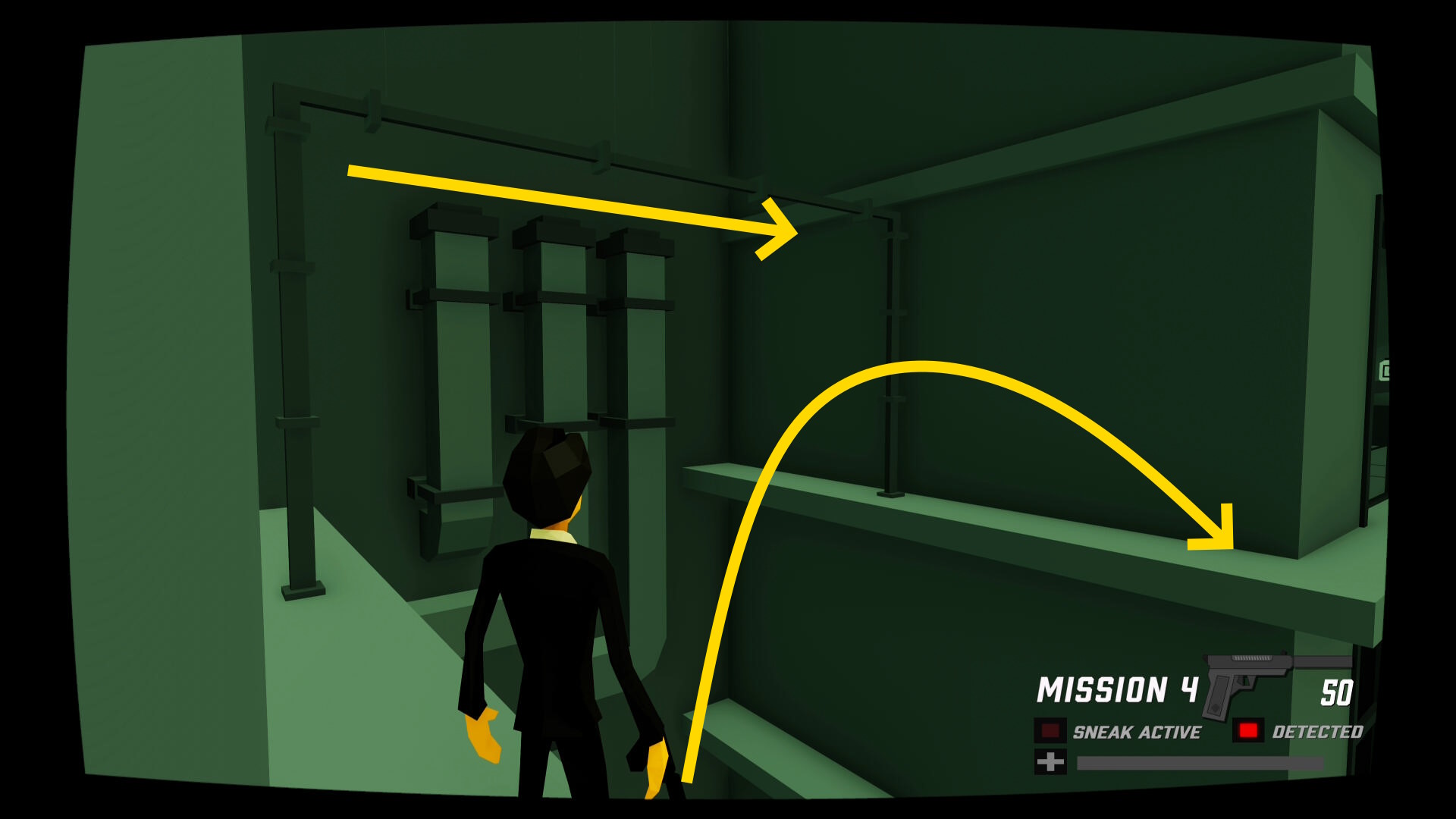- 盗聴後、奥にあるパイプを登ってプレジデンシャルスイートの階へ