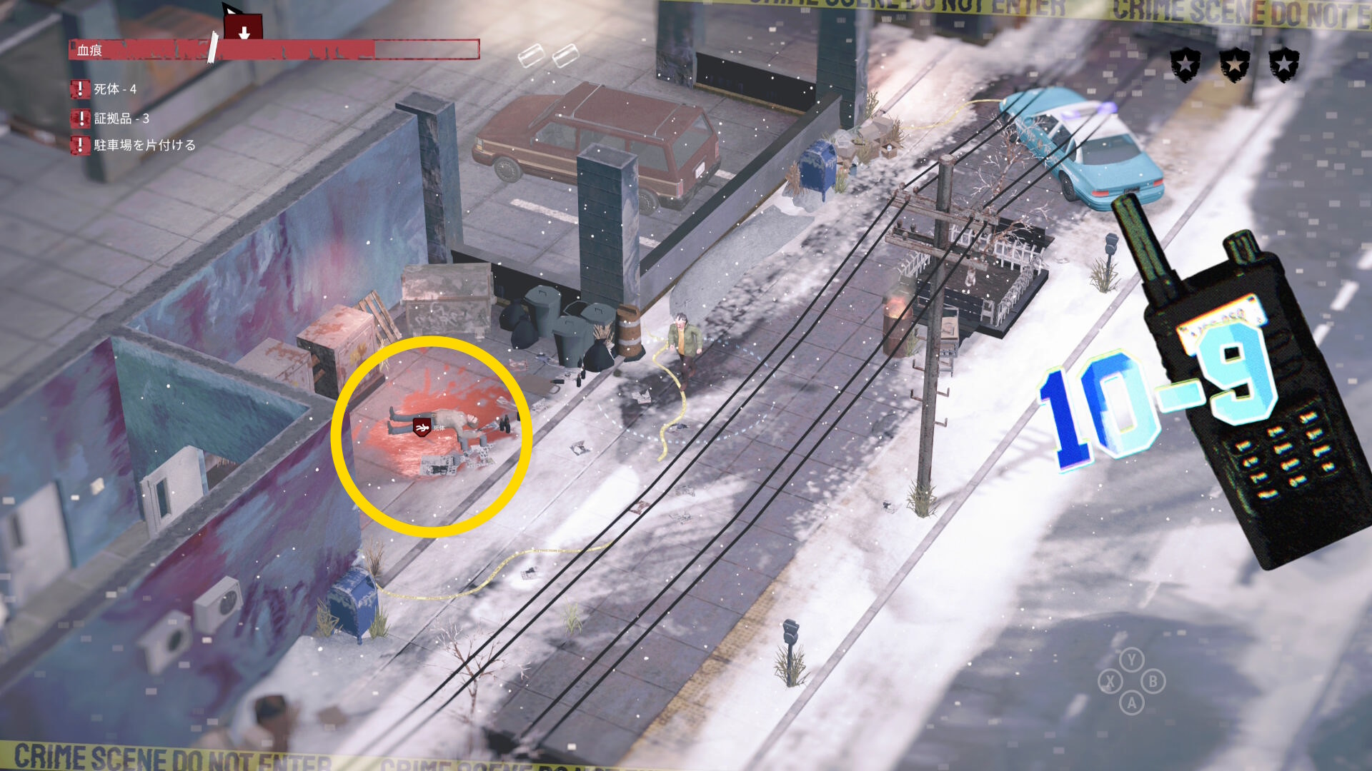- 開始した場所は犯行現場。巡回している警察官に見つかると逮捕されるので注意