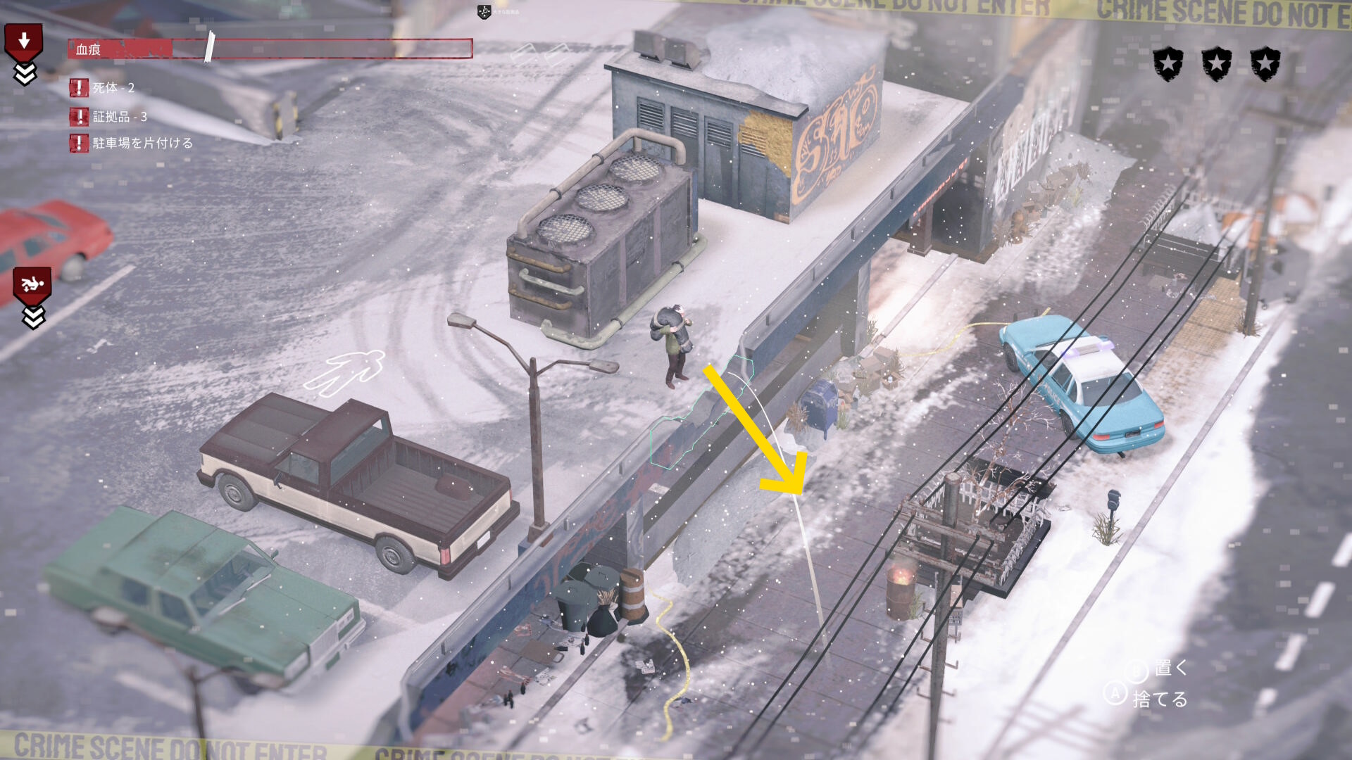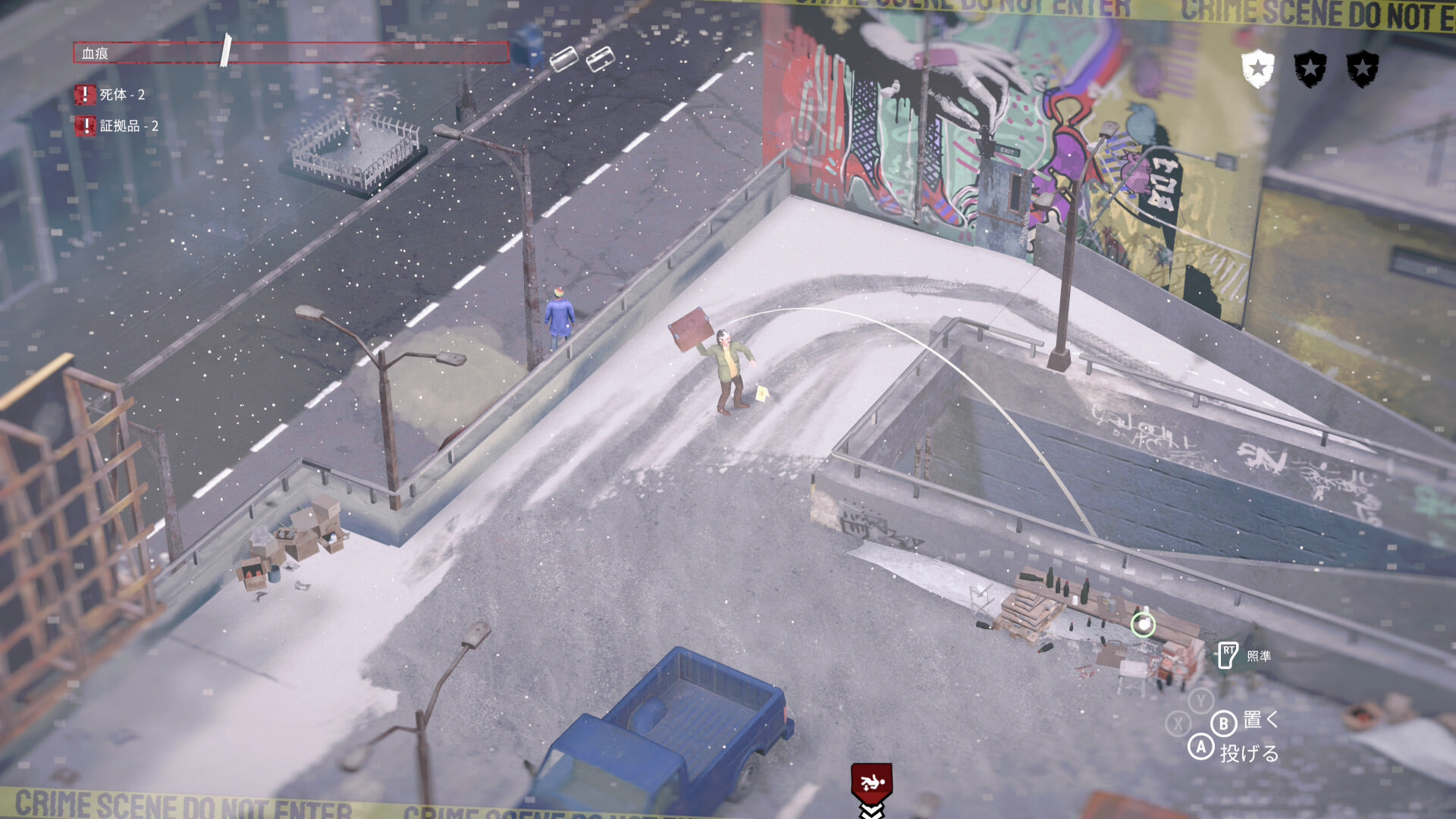 - 先ほどスロープに投げた大きな証拠品も運び、トランクに入れる ⇒ 証拠品(18/20)