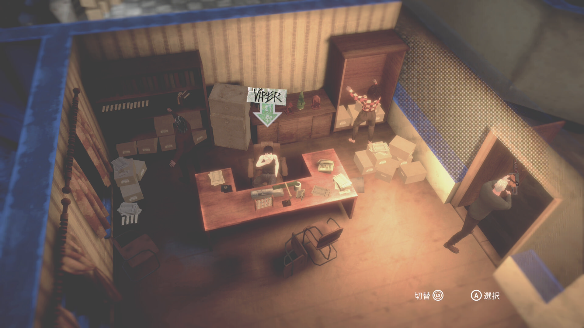 - 死体の下にあるドアから中に入り、キャビネの上の 証拠品(15/20)を回収