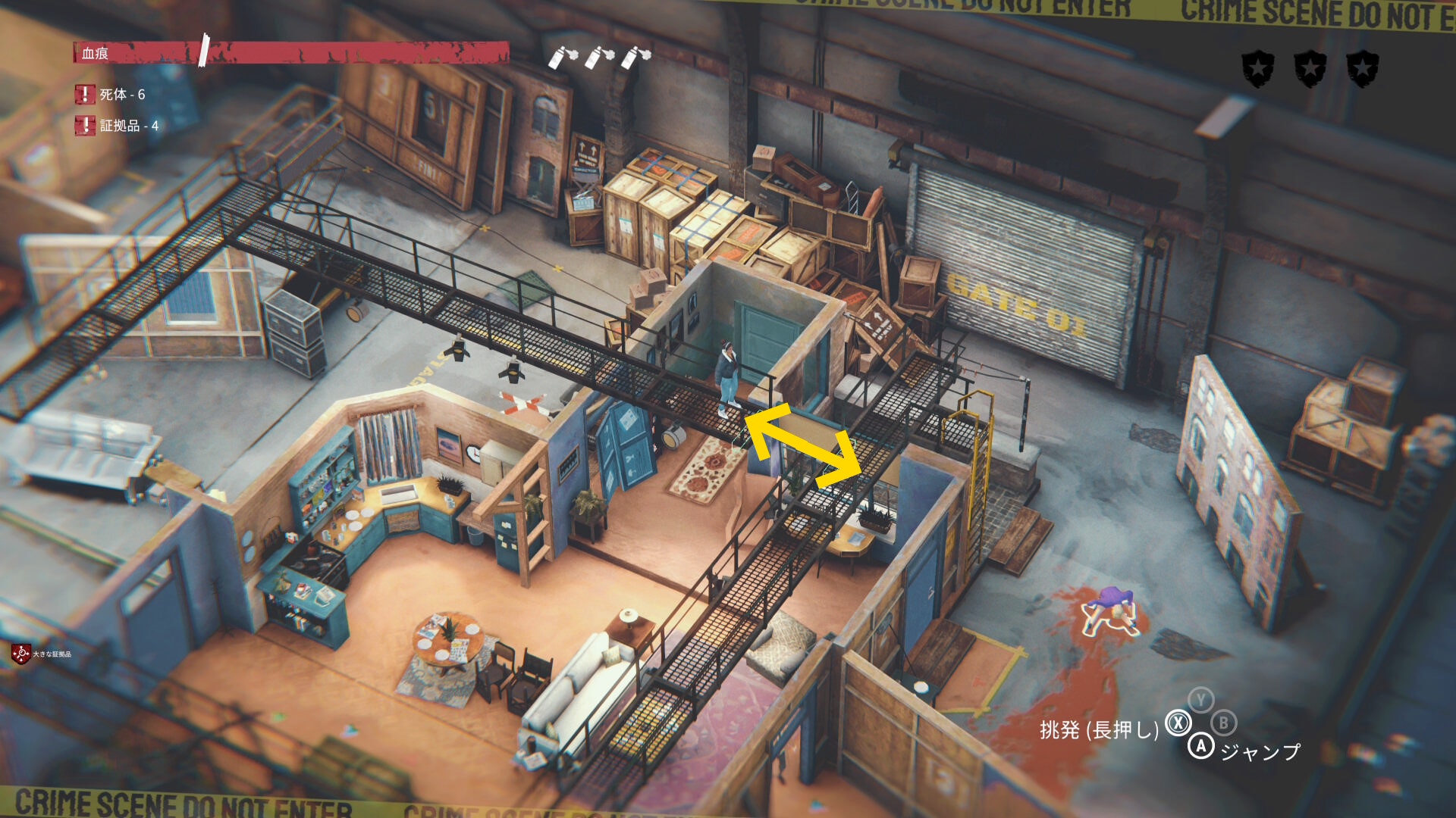• 気絶させた警察官を担ぎ、下のセットに入る