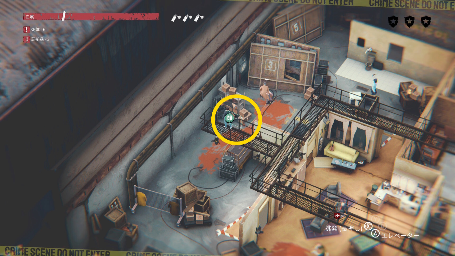 • 死体を床の穴に入れたら、近くのエレベーターでキャットウォークへ