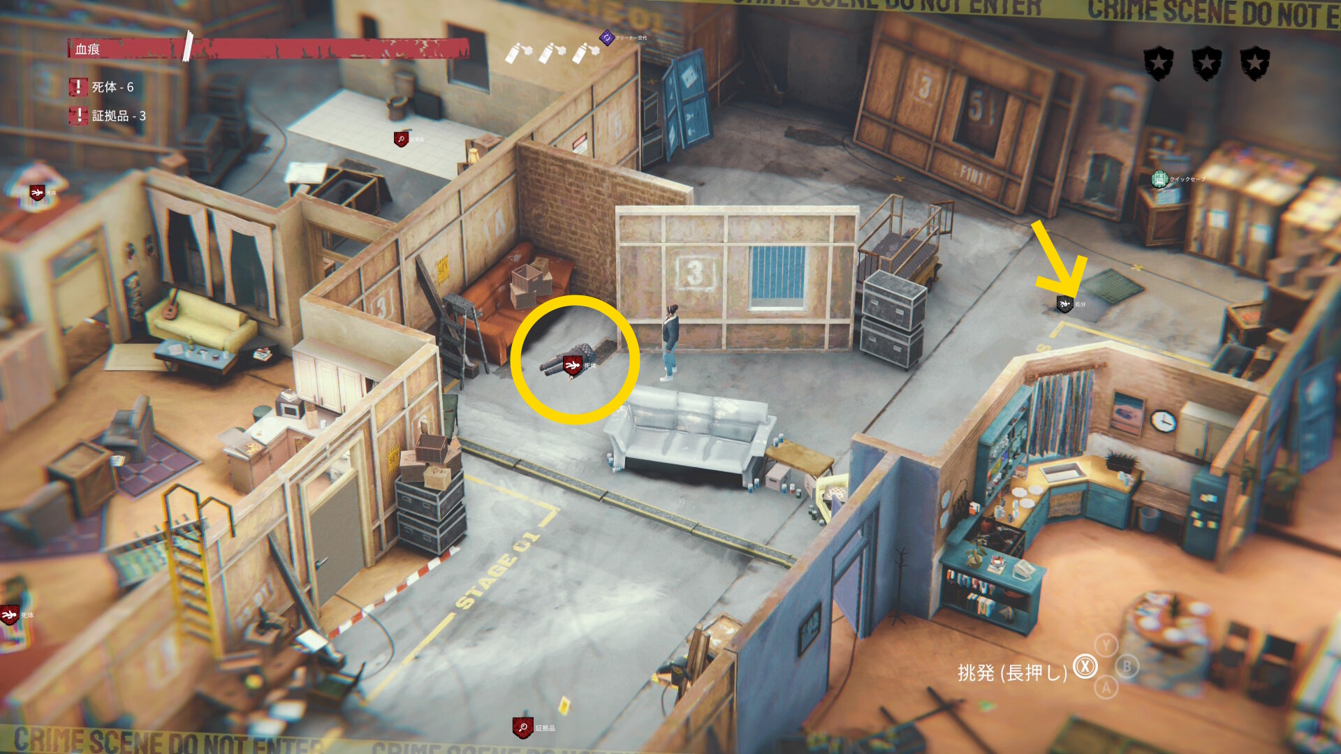 • 左のセット内において画面右上のバッジマークが点灯したあとに警察官がスタックするバグを確認している(2箇所)