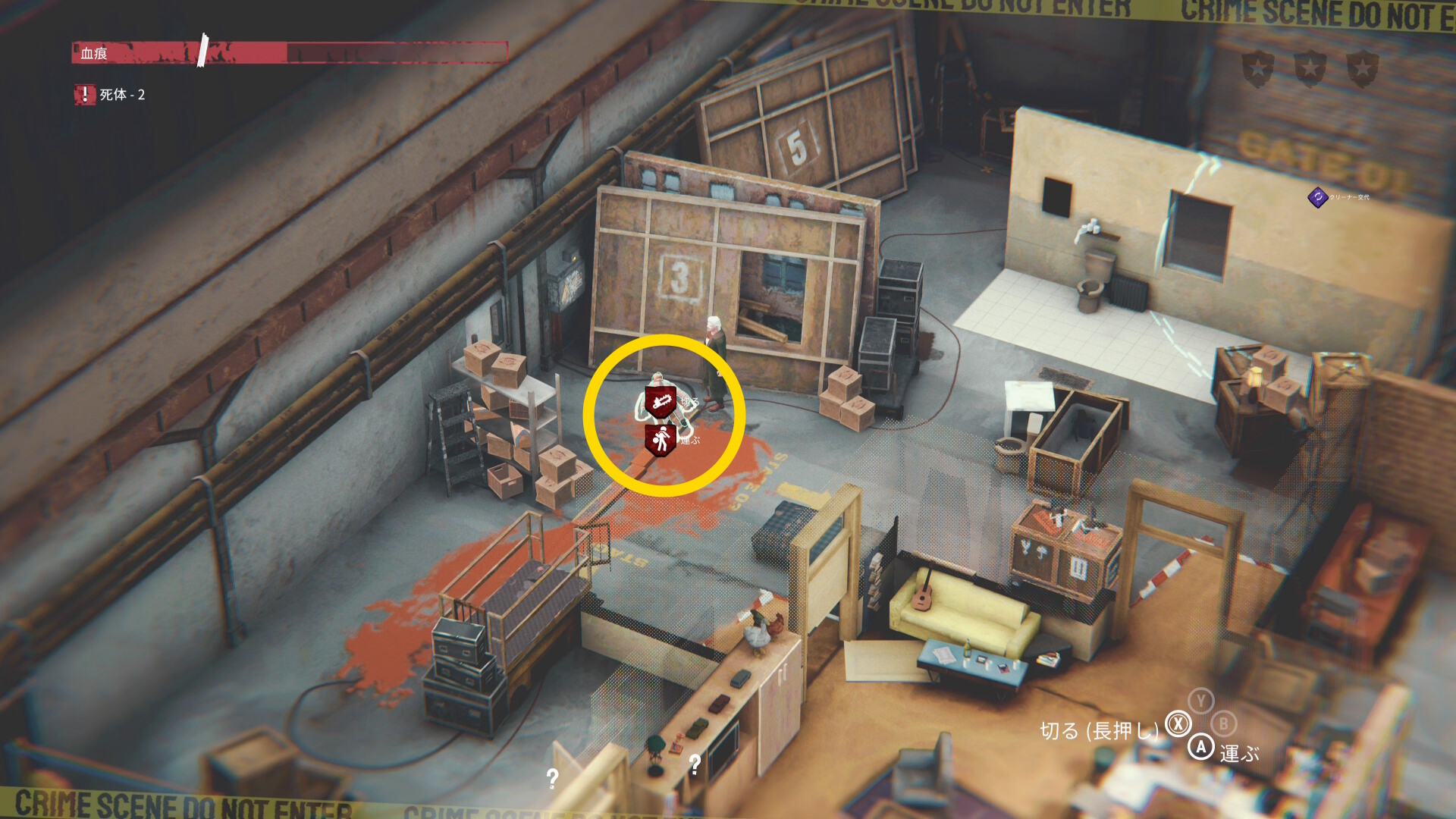 • 2個所目は左セット内の死体のところ。死体を確認したままスタックしてしまう