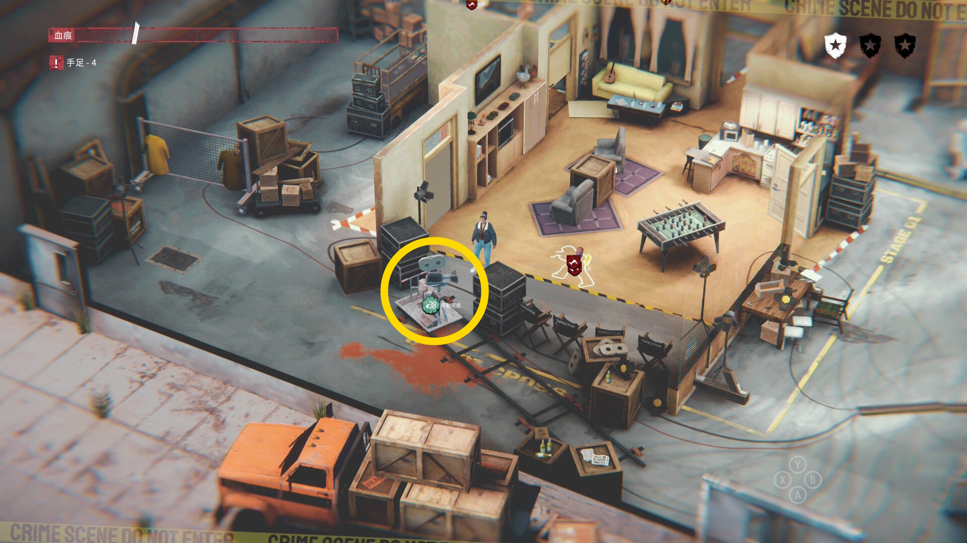 • 開始地点近くのエレベーターで下におり、ラティらが侵入してきた床の穴に大きな証拠品を入れる
