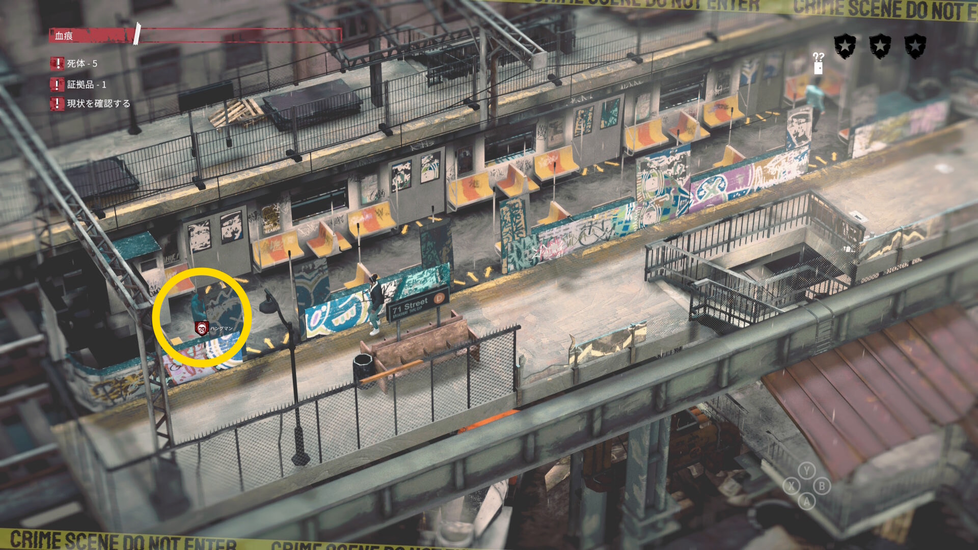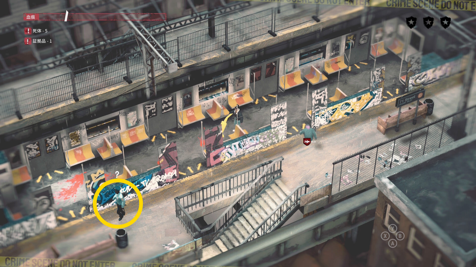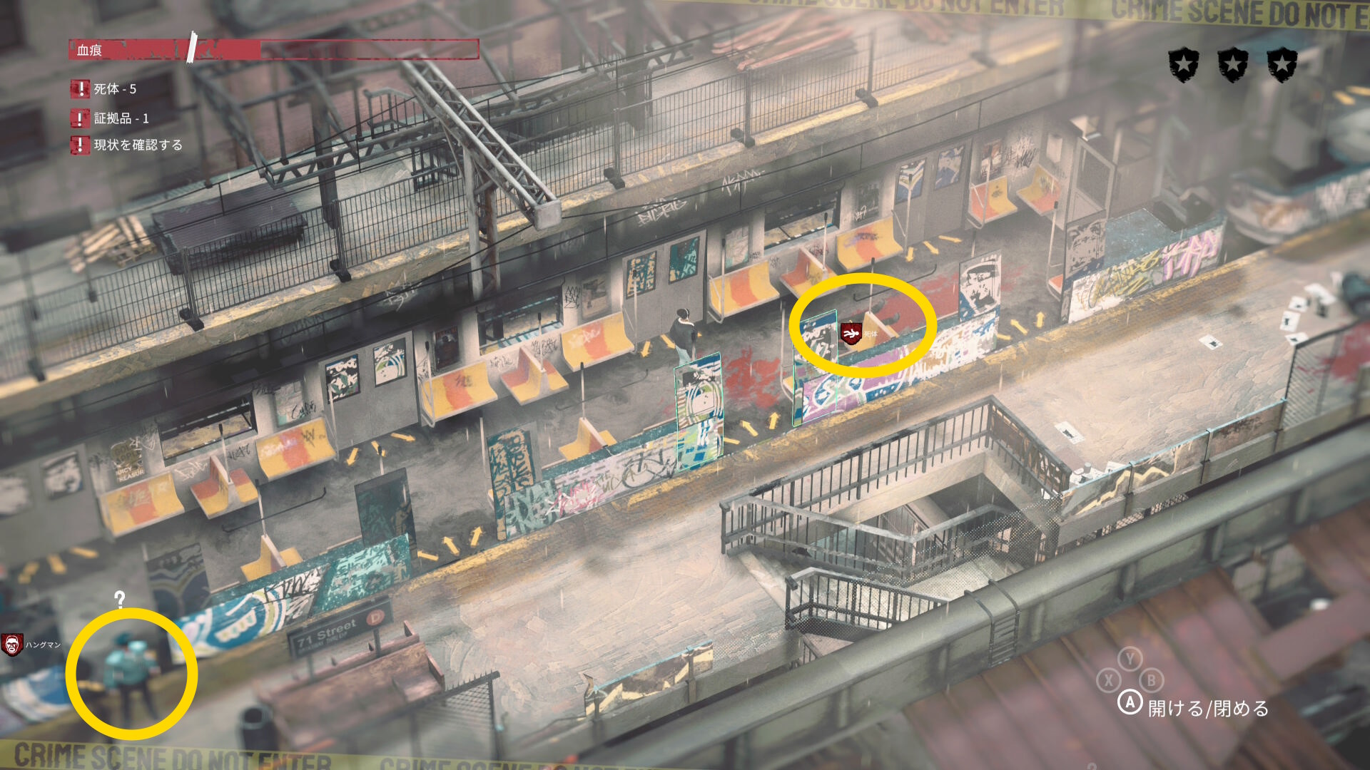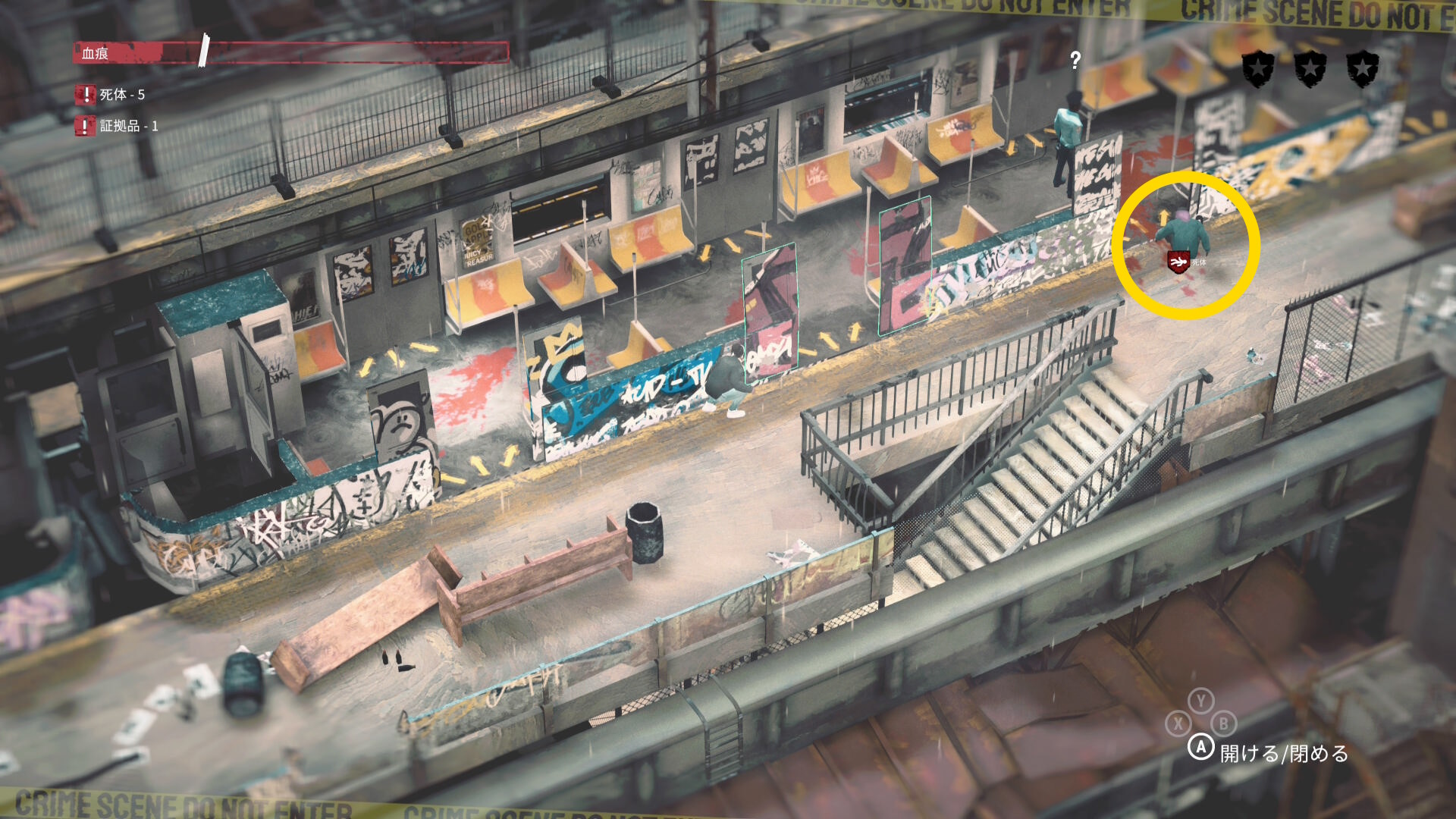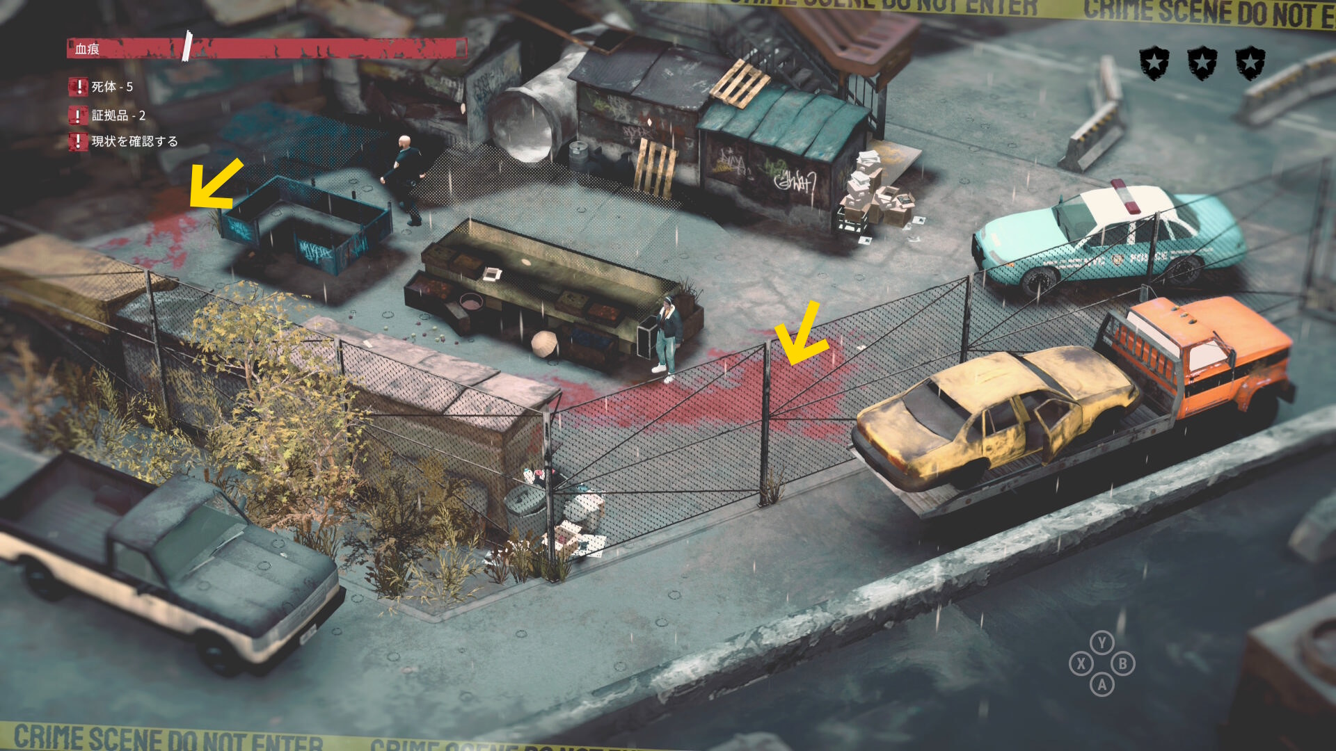 - 警察官が時計回りに巡回するので、その動きに合わせて血痕を片付けていく(バリケードにしゃがんで視認させないようにすることも必要)