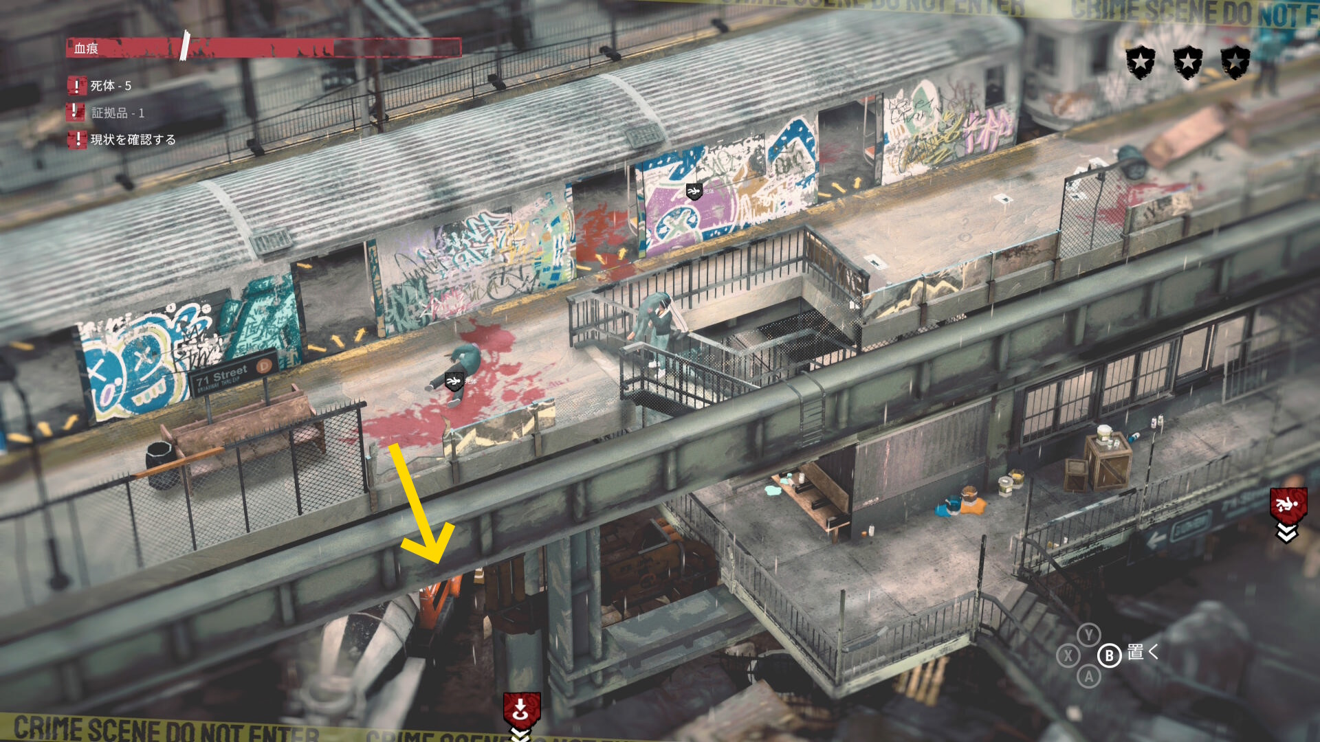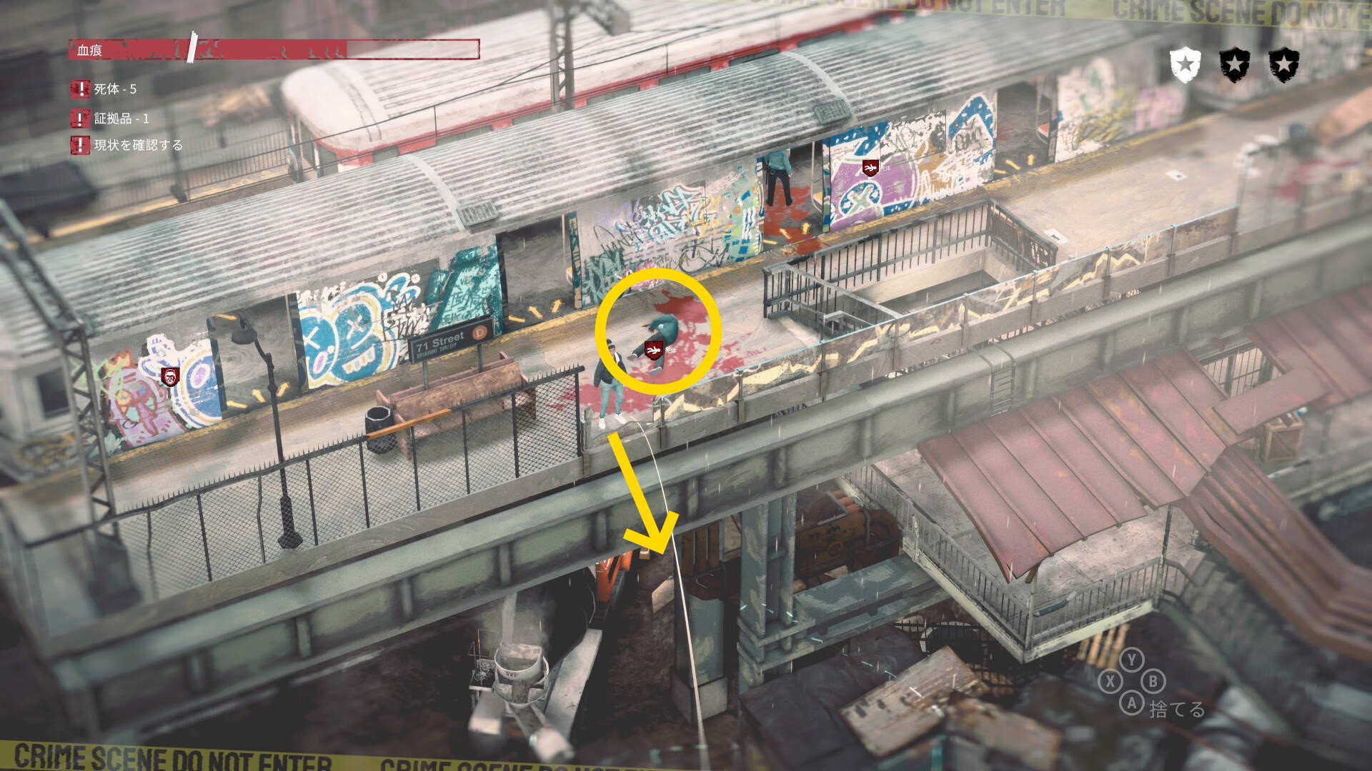 - ホームに出たら、これまでと同様に死体を下に投げる