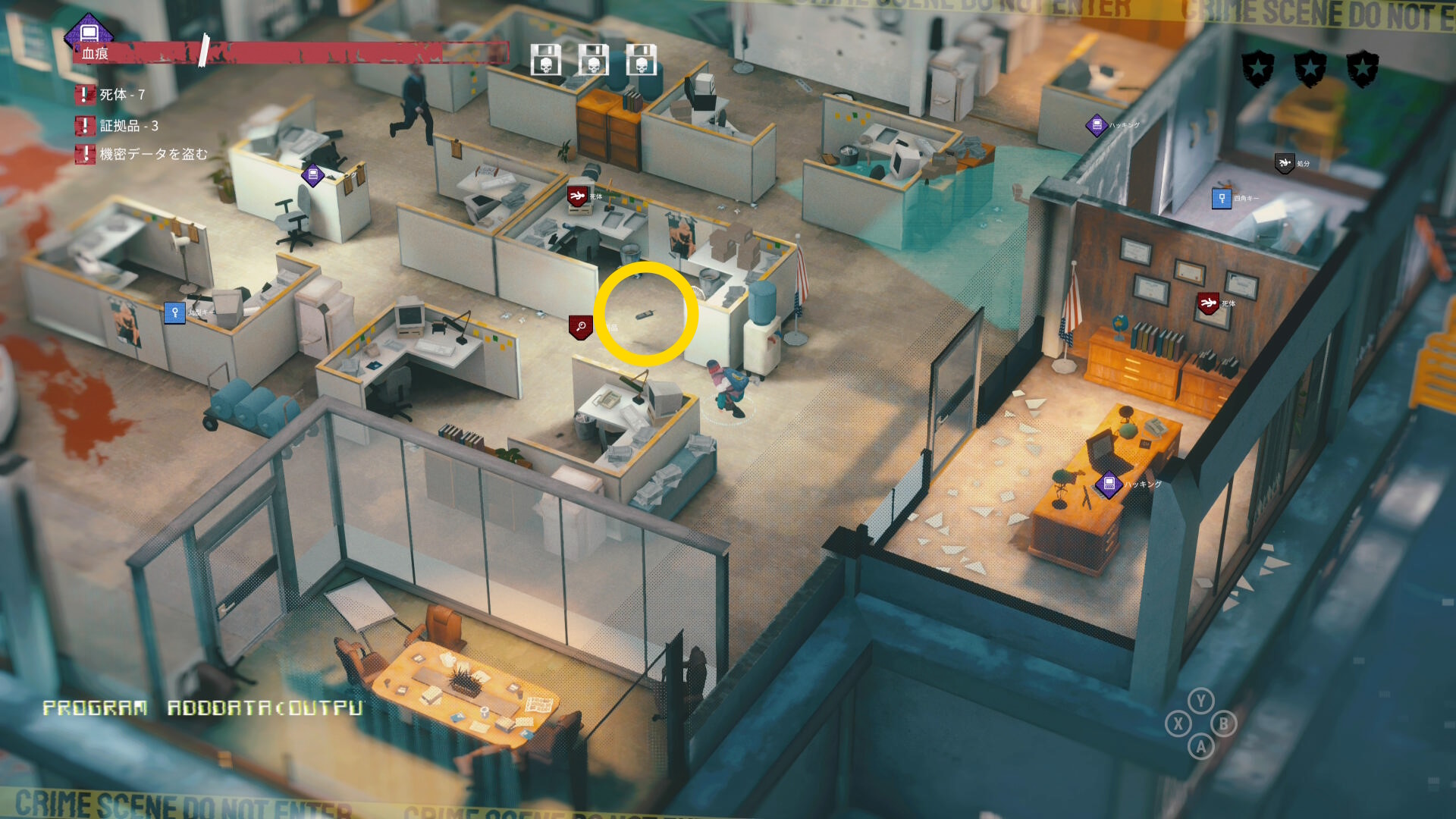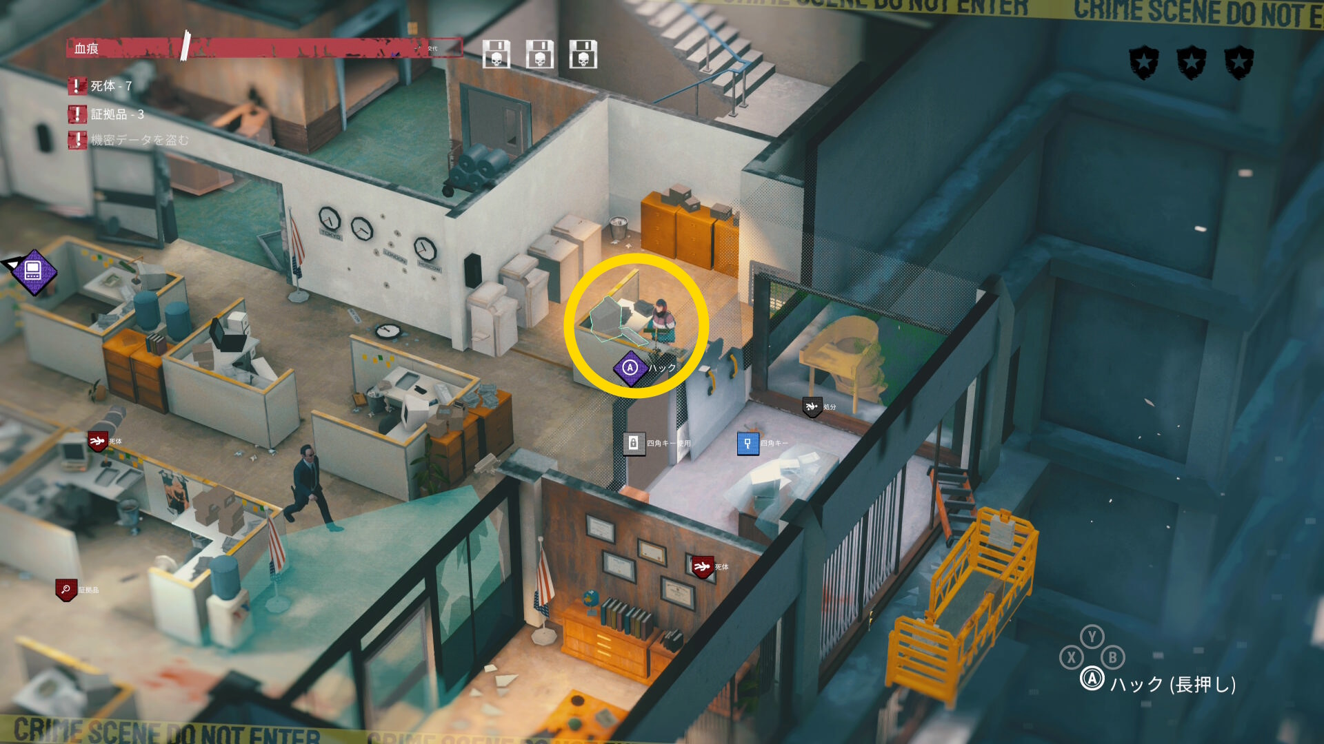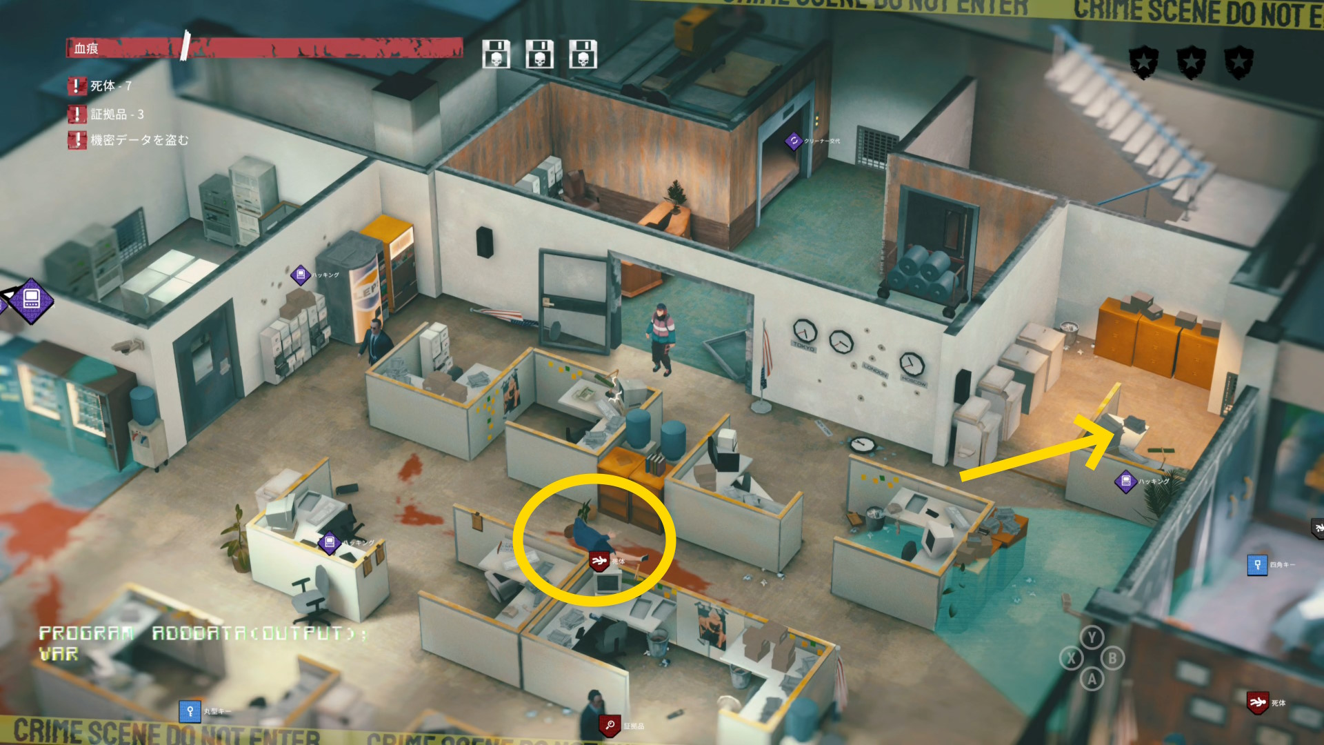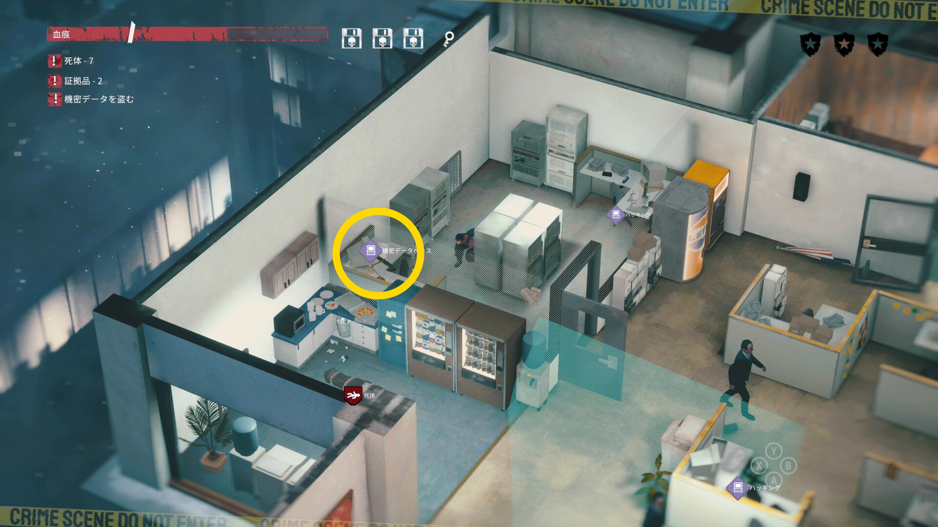 - 左隅のパソコンを調べて「機密データを盗む」クリア