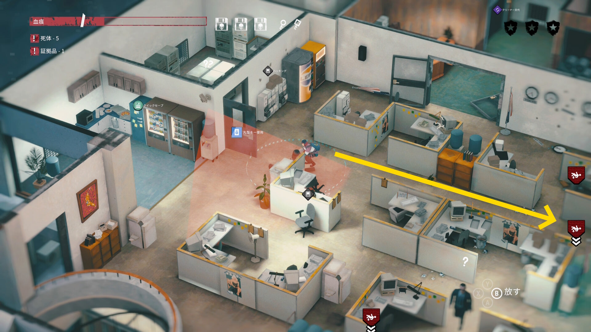 - また、ドア前に立っていると上の捜査員(開始地点近く)にも見つかるので机の後ろでしゃがんでいるといいでしょう