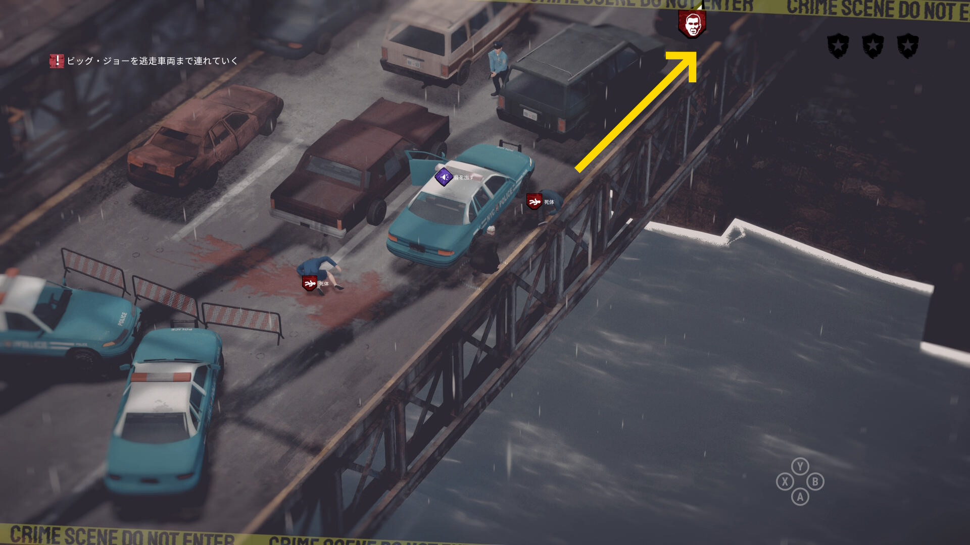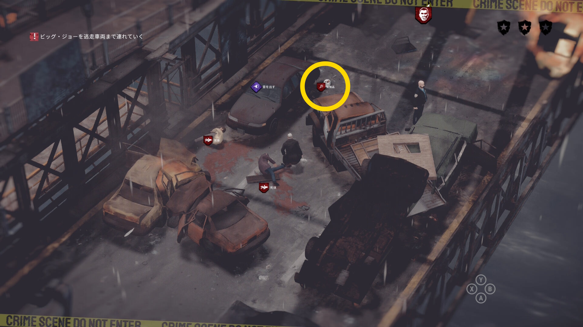 • ギャングの死体は ”赤い顔のマーカー” で表示されている