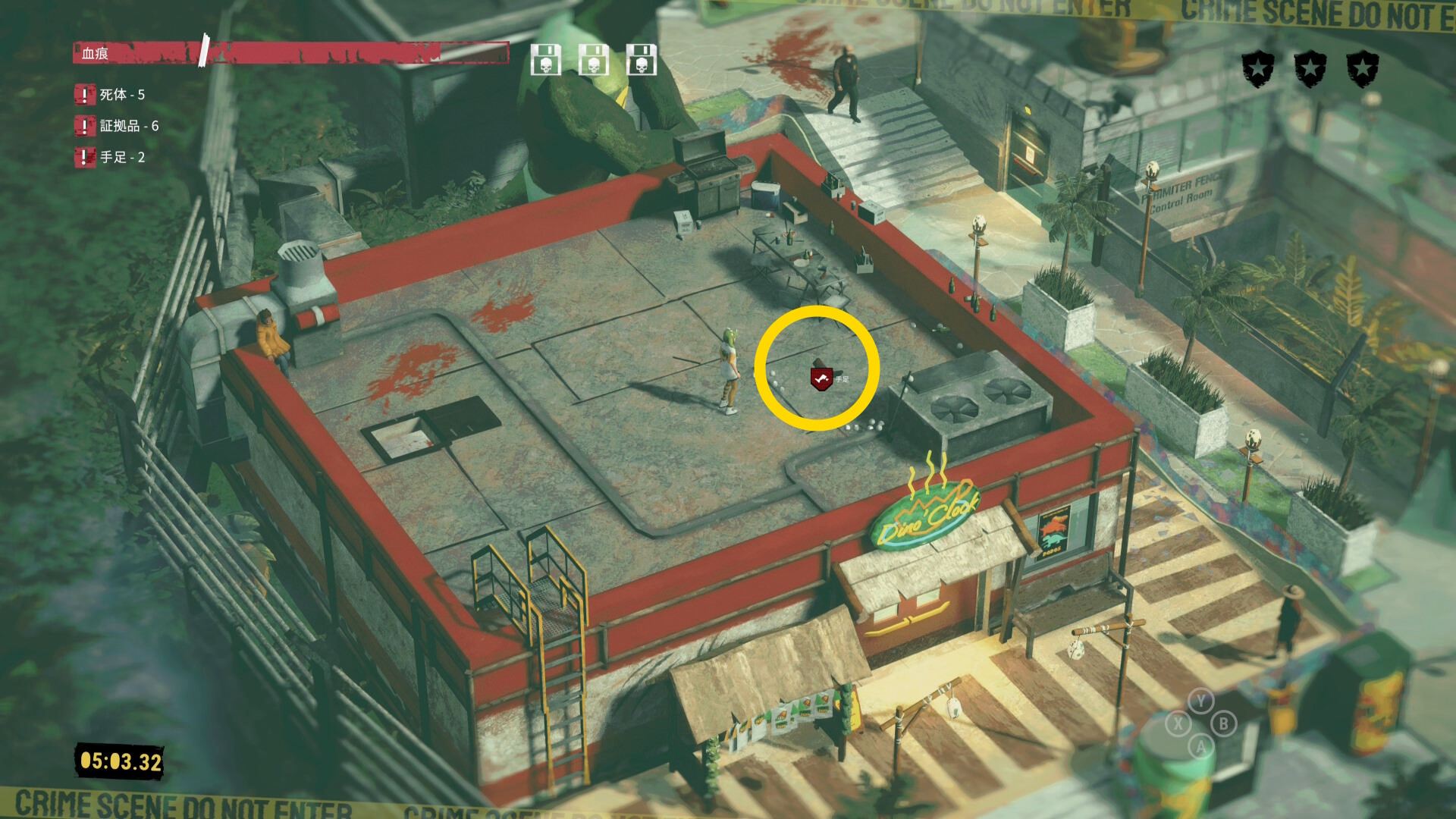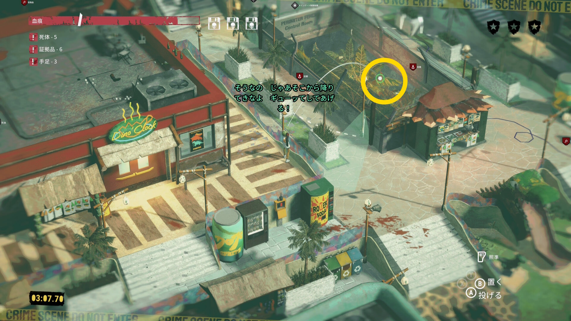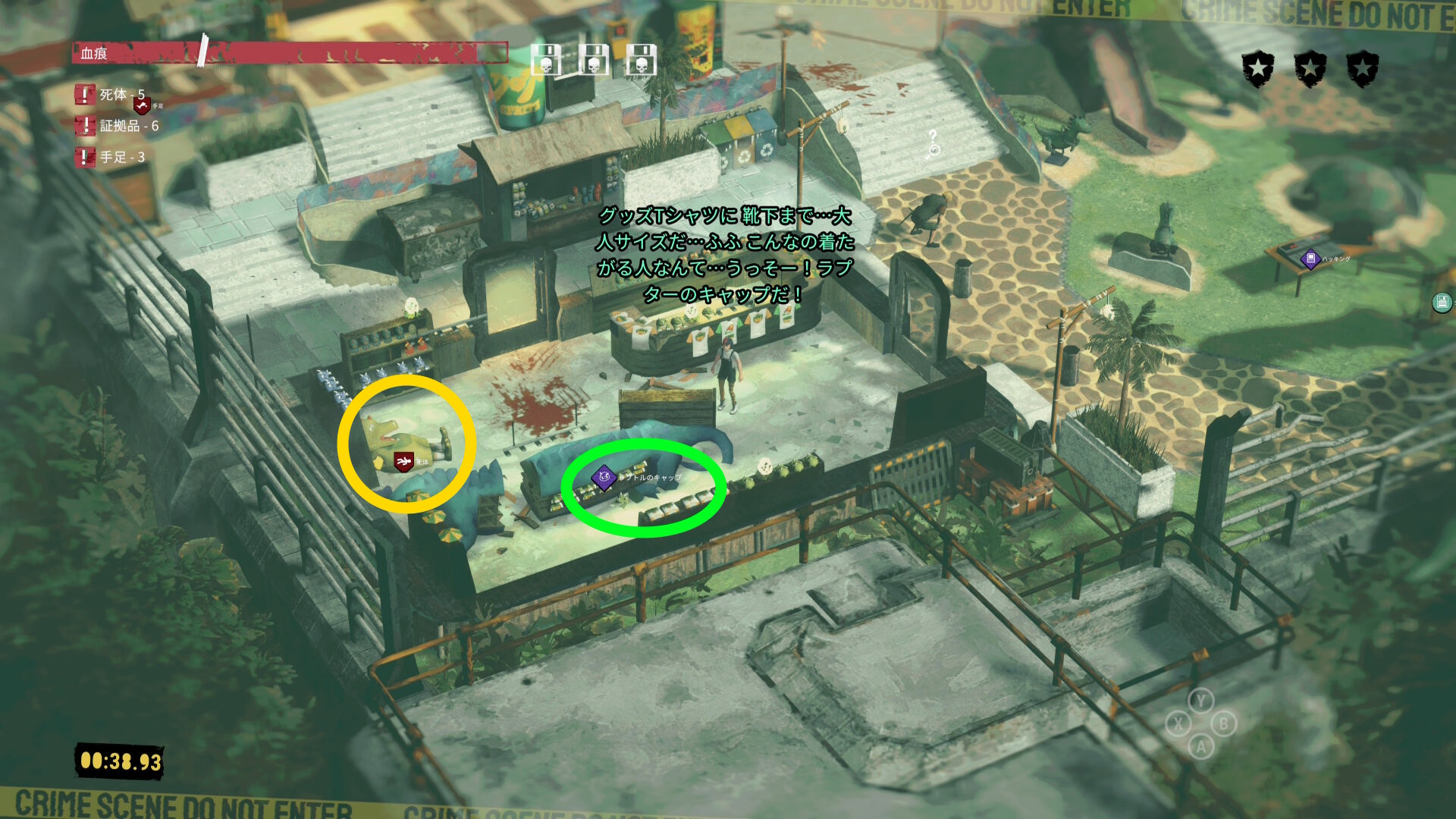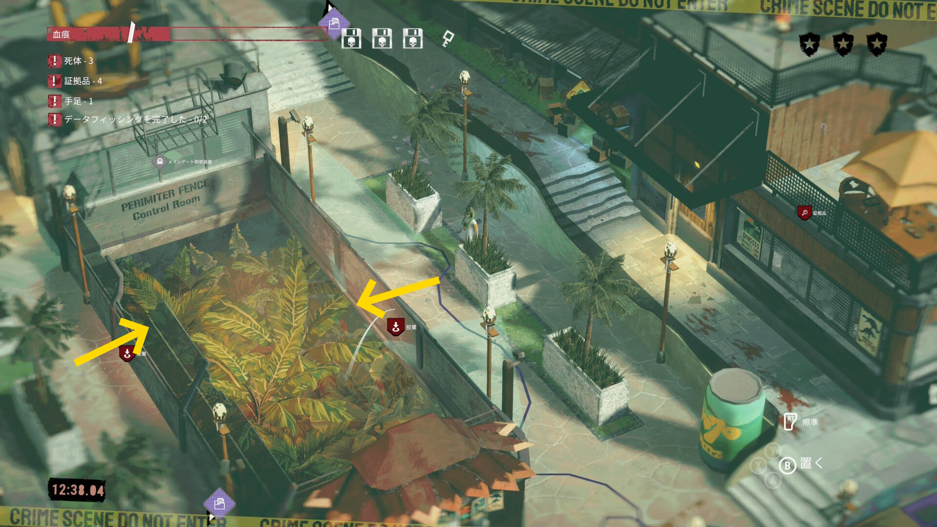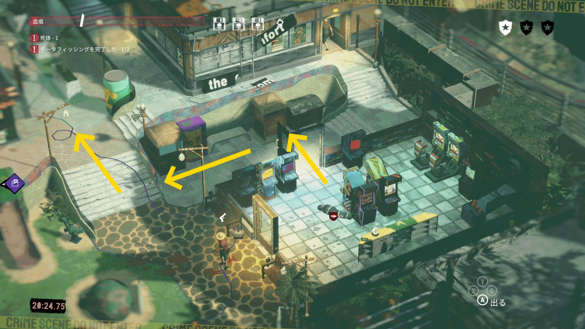 - 死体を投棄場まで運ぶが、バーとゲーセンの間くらいのところにある証拠品の回収を忘れずに