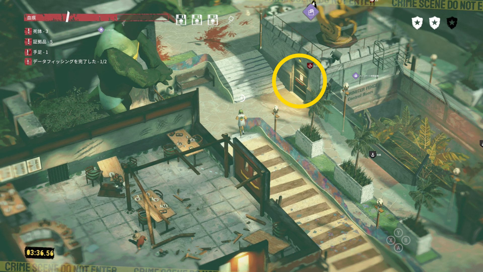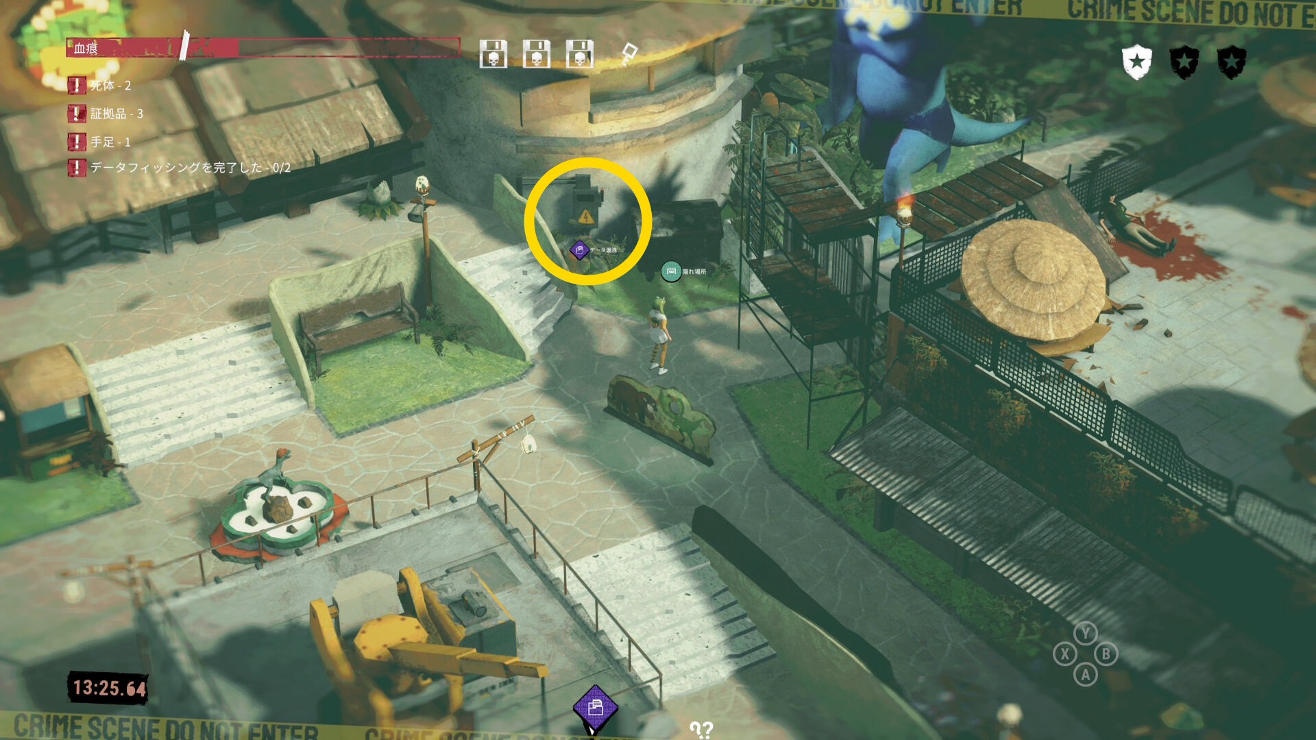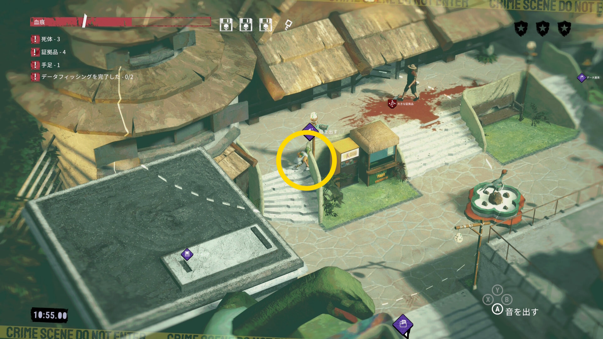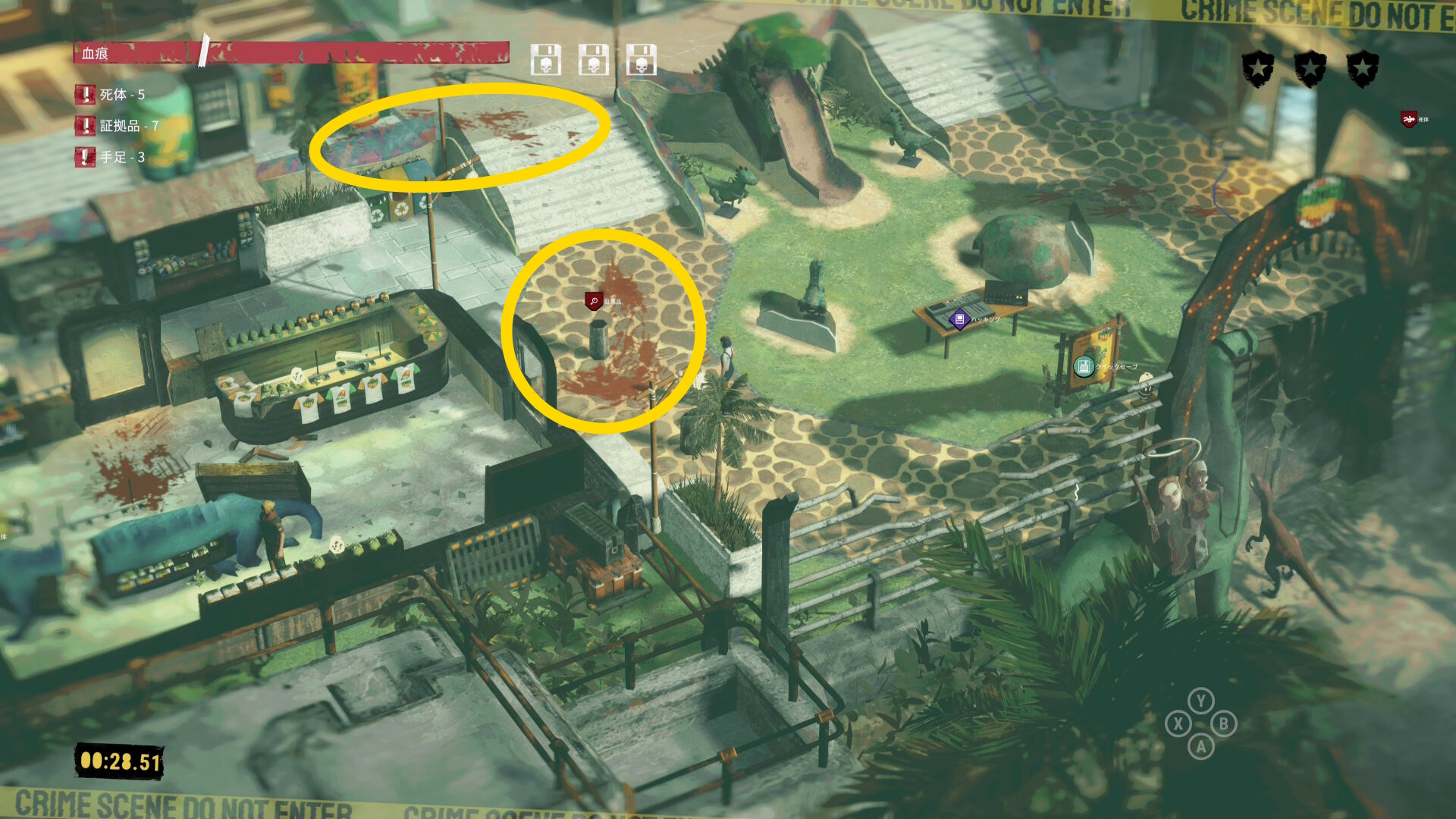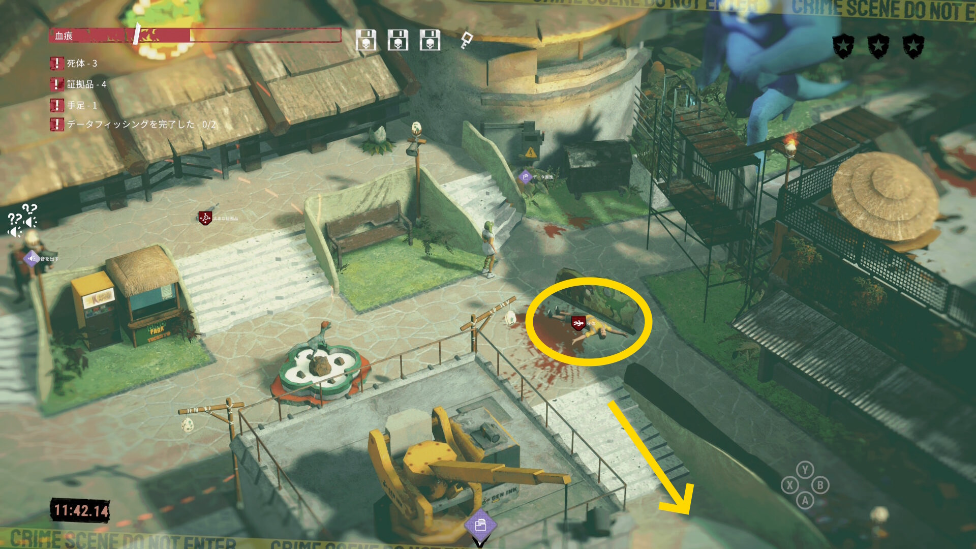 - 死体を投棄場まで運ぶが、バーとゲーセンの間くらいのところにある証拠品の回収を忘れずに