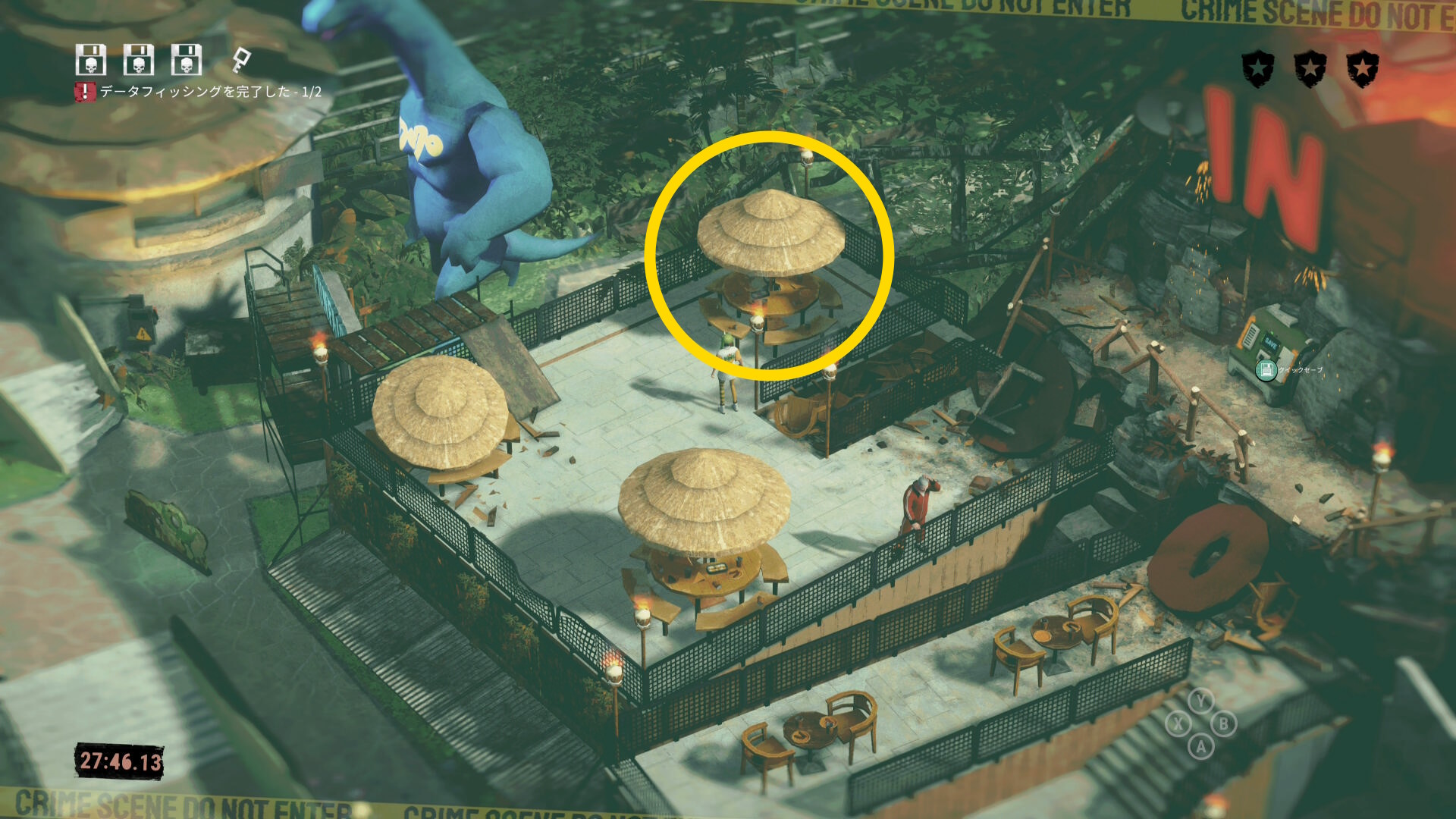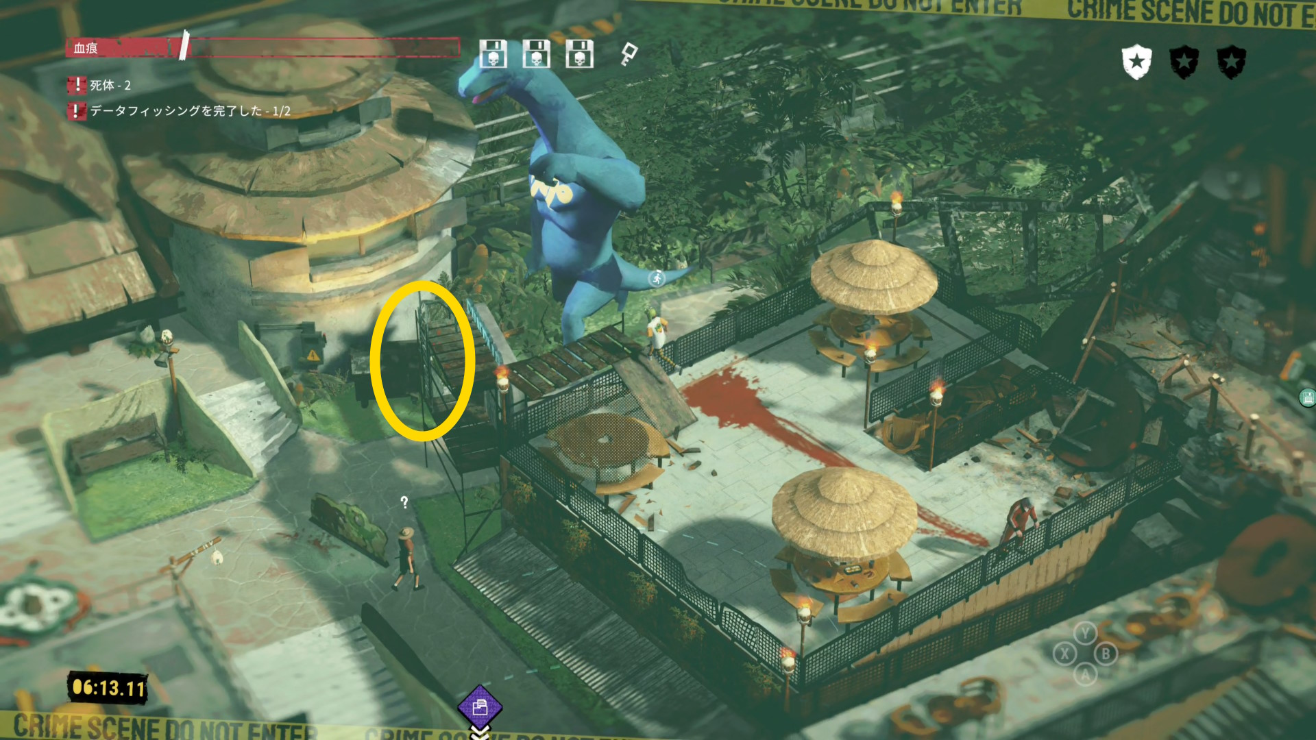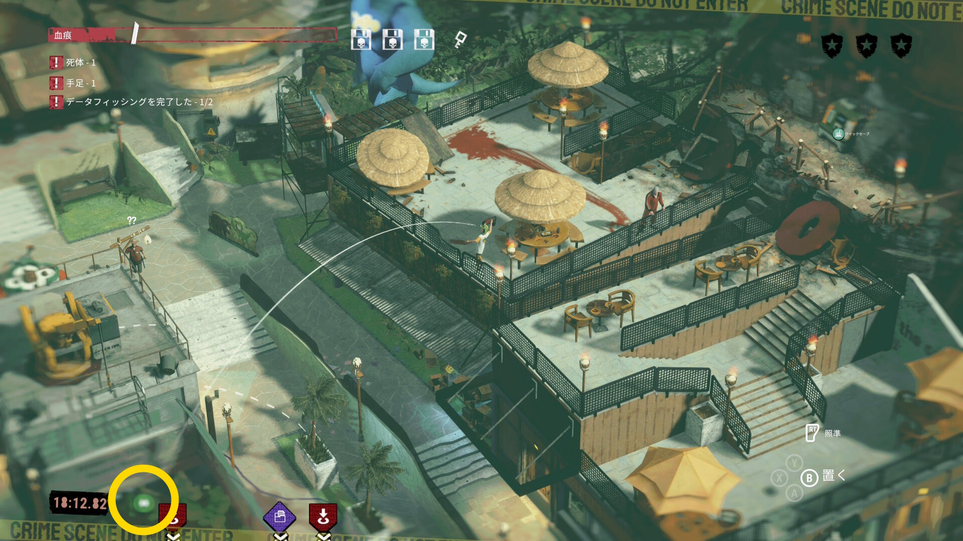 - バーの2階奥にある死体を引きずると血痕が増え、白い線を戻ってしまうことがあるので注意(つまり、また白い線を越えるまで血痕を片づける必要があるということ)