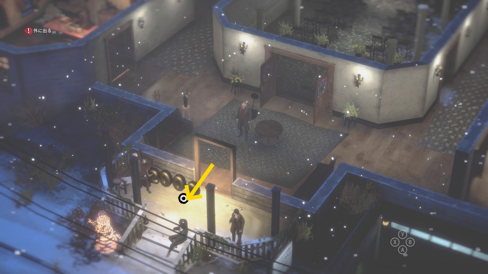 - 今いる部屋を出て下に進み、玄関を出たところにいるメンバーの元に行けばクリアとなる