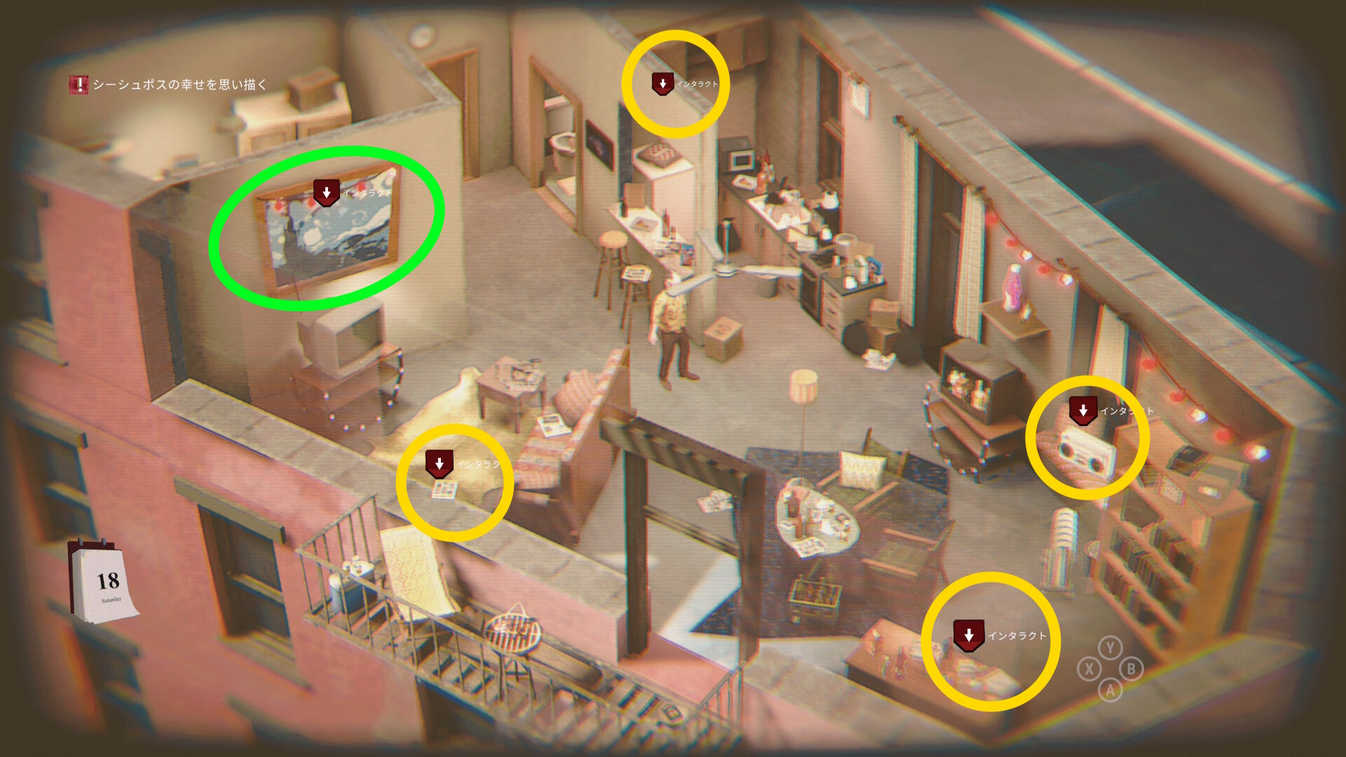 - この内、”緑◯の絵画” を調べると選択肢が出現するが、どっちを選んでもオーケー