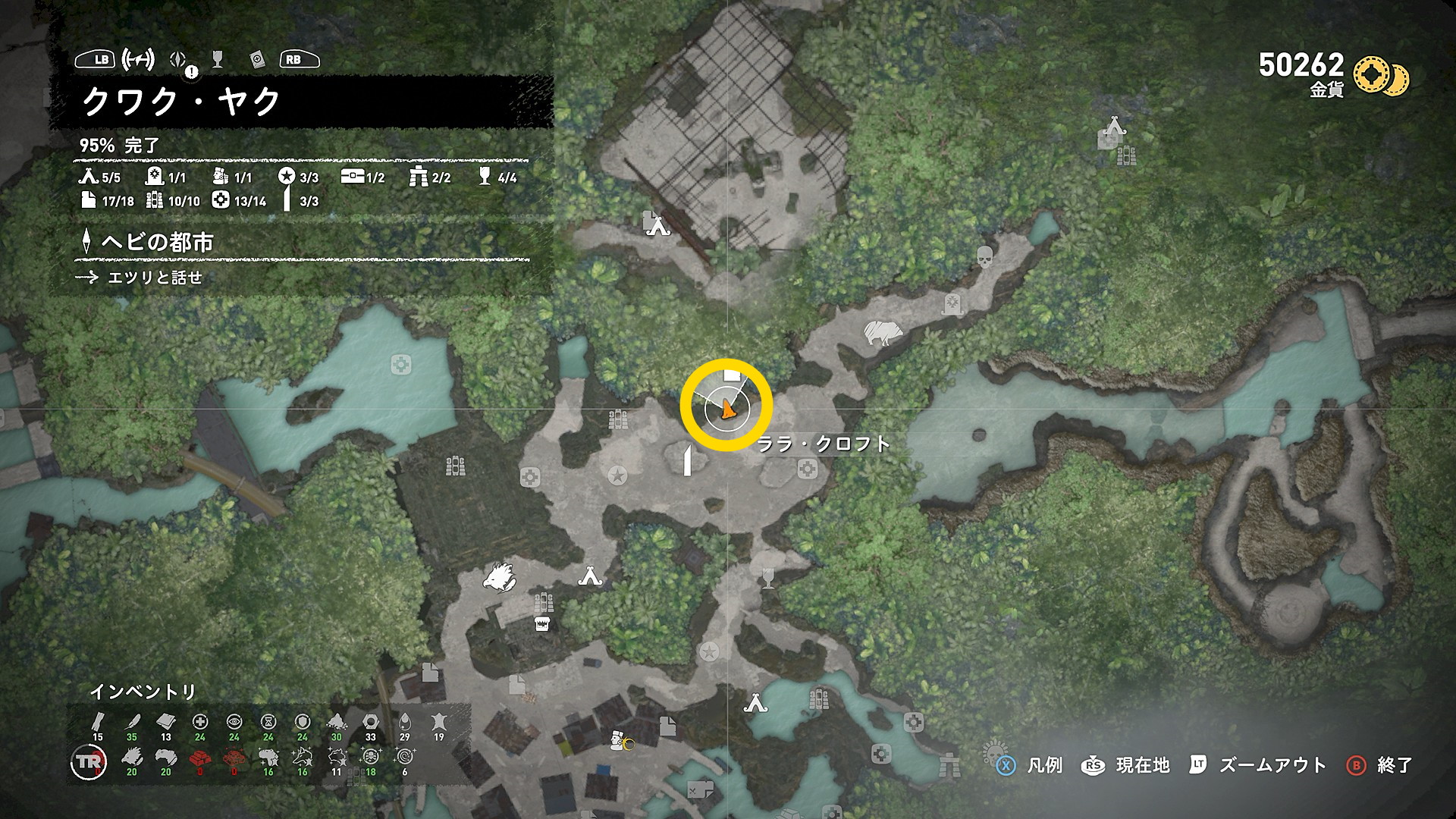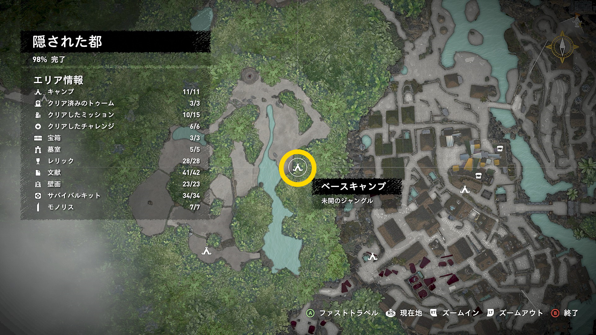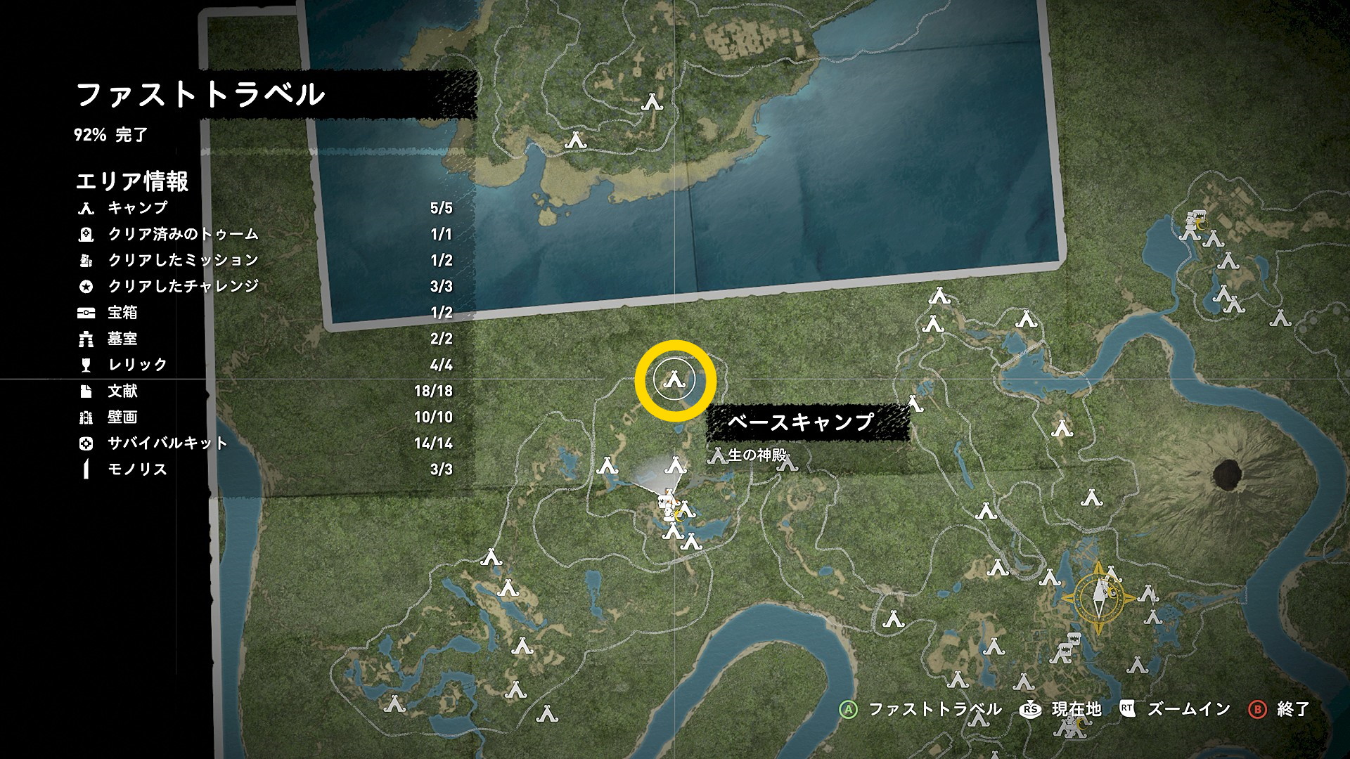 - 当サイトのコンテンツを閲覧しながらプレイしていれば各地のすべての収集物/サイドミッション/チャレンジトゥーム/墓室/チャレンジ/ベースキャンプを網羅しており、100% クリアを達成しているはず