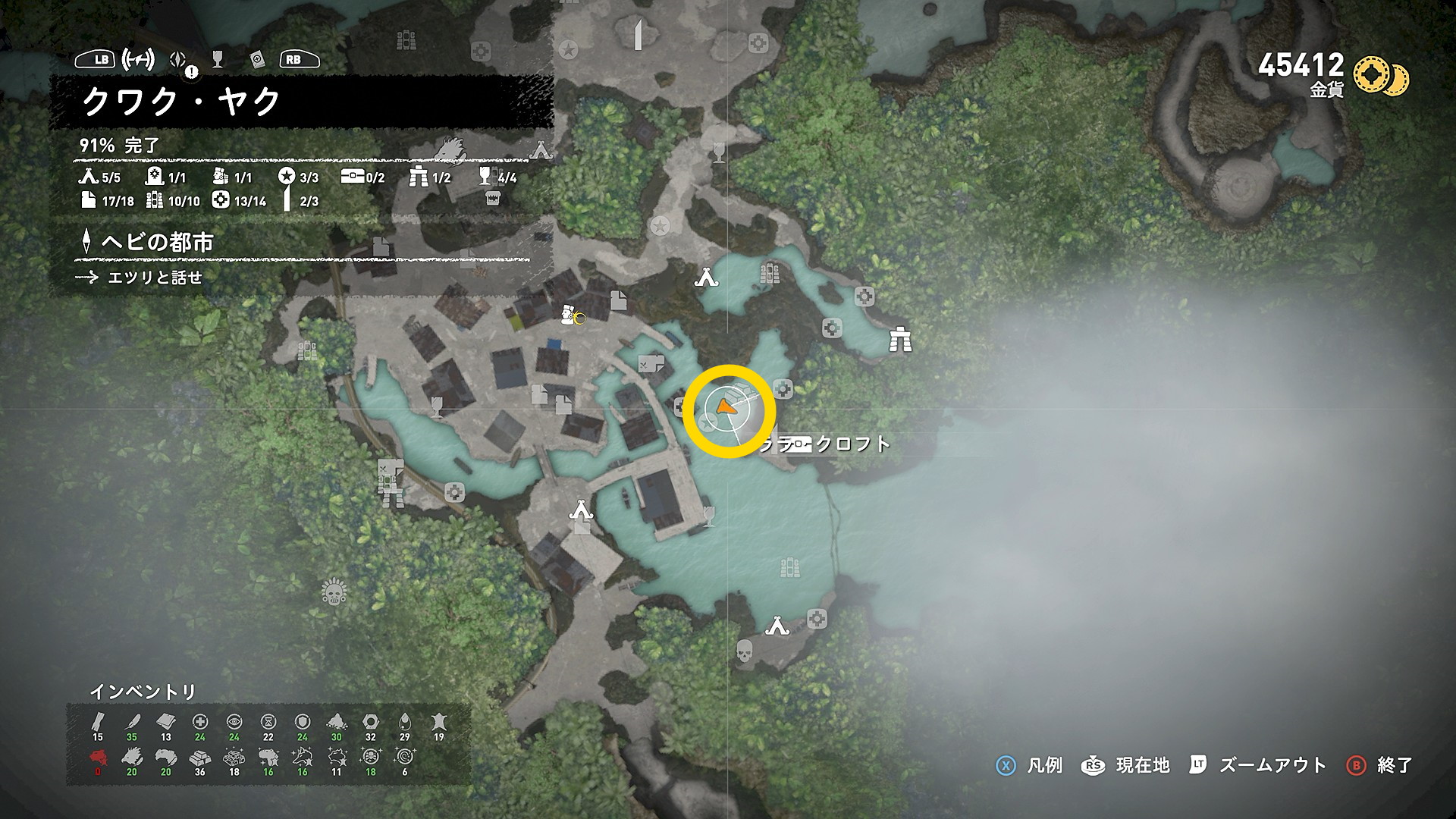- ドクロの洞窟の焚き火から、クワク・ヤクの「ジャングルの崖」にファストトラベル