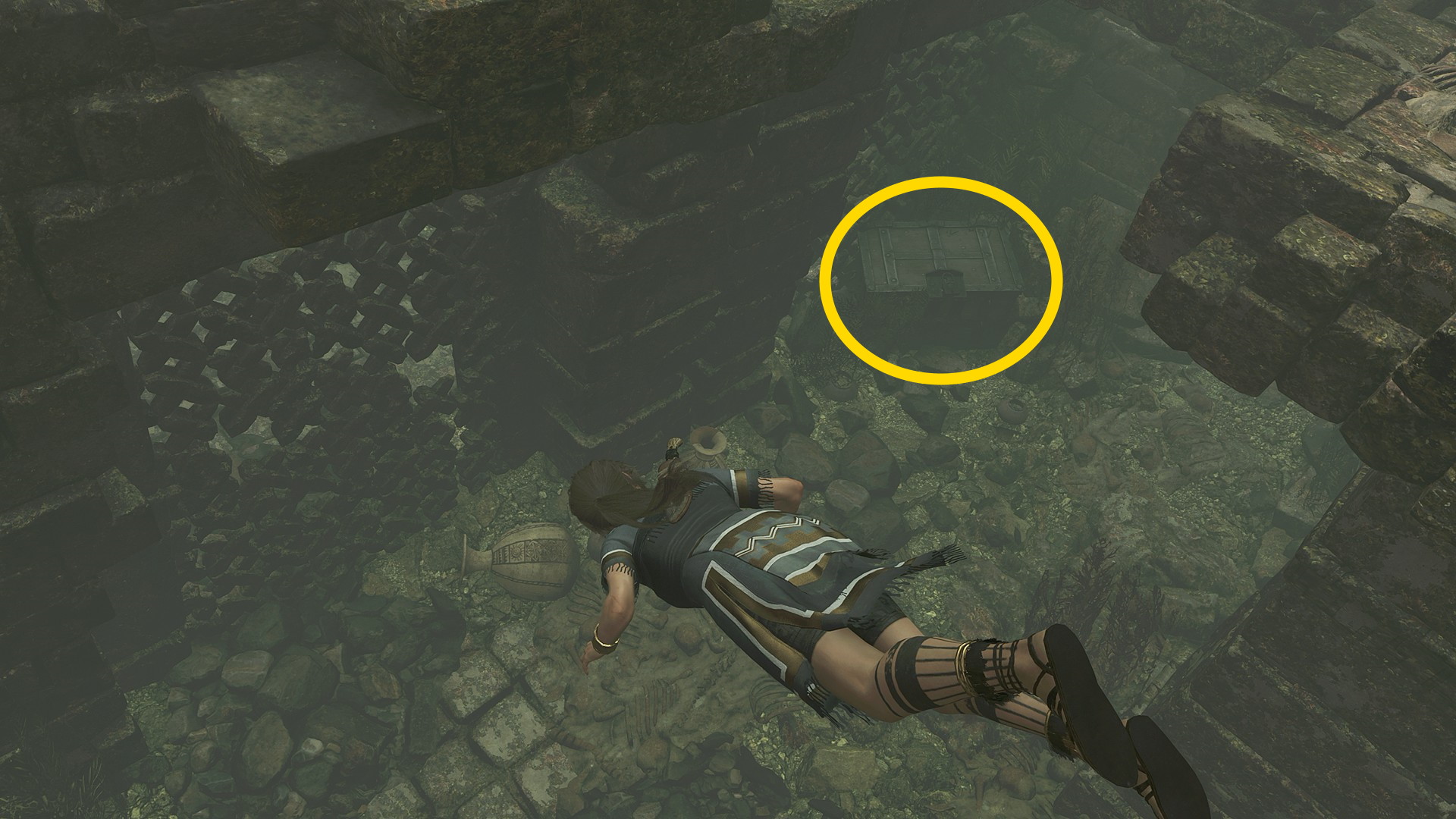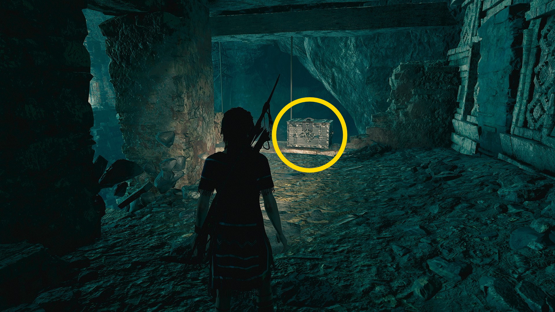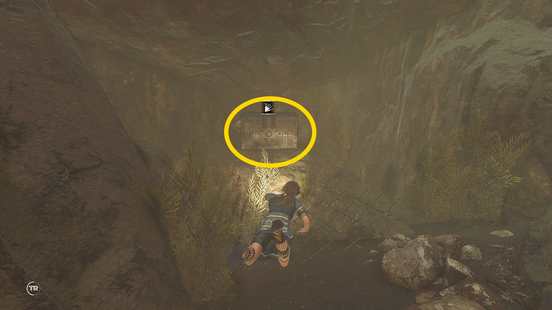 - グリップポイントを左に進み、背の低い半トンネルを進んでいくと 知られざる探検:フォーセットの最後の手紙 と パイティティの日常:銀の鏡 ⇒ コンキスタドールの宝箱(7/8)