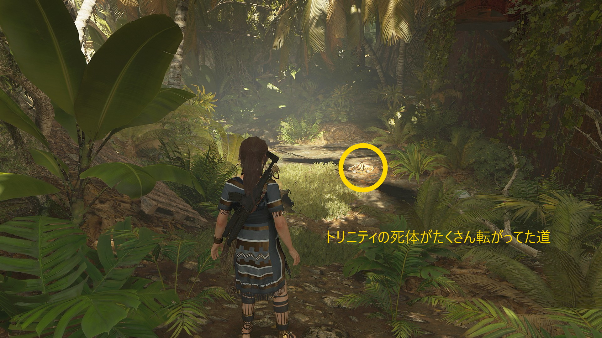 - ジャングルでも同じルートを移動するが、トリニティの増援部隊がヤークシルに殲滅されていた道に新たに ベースキャンプ:飛行場の土の滑走路 が設置されている