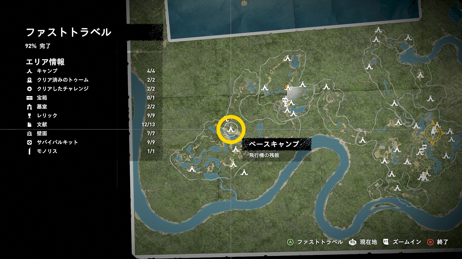 - 焚き火から「ベースキャンプ:未開のジャングル」にファストトラベル