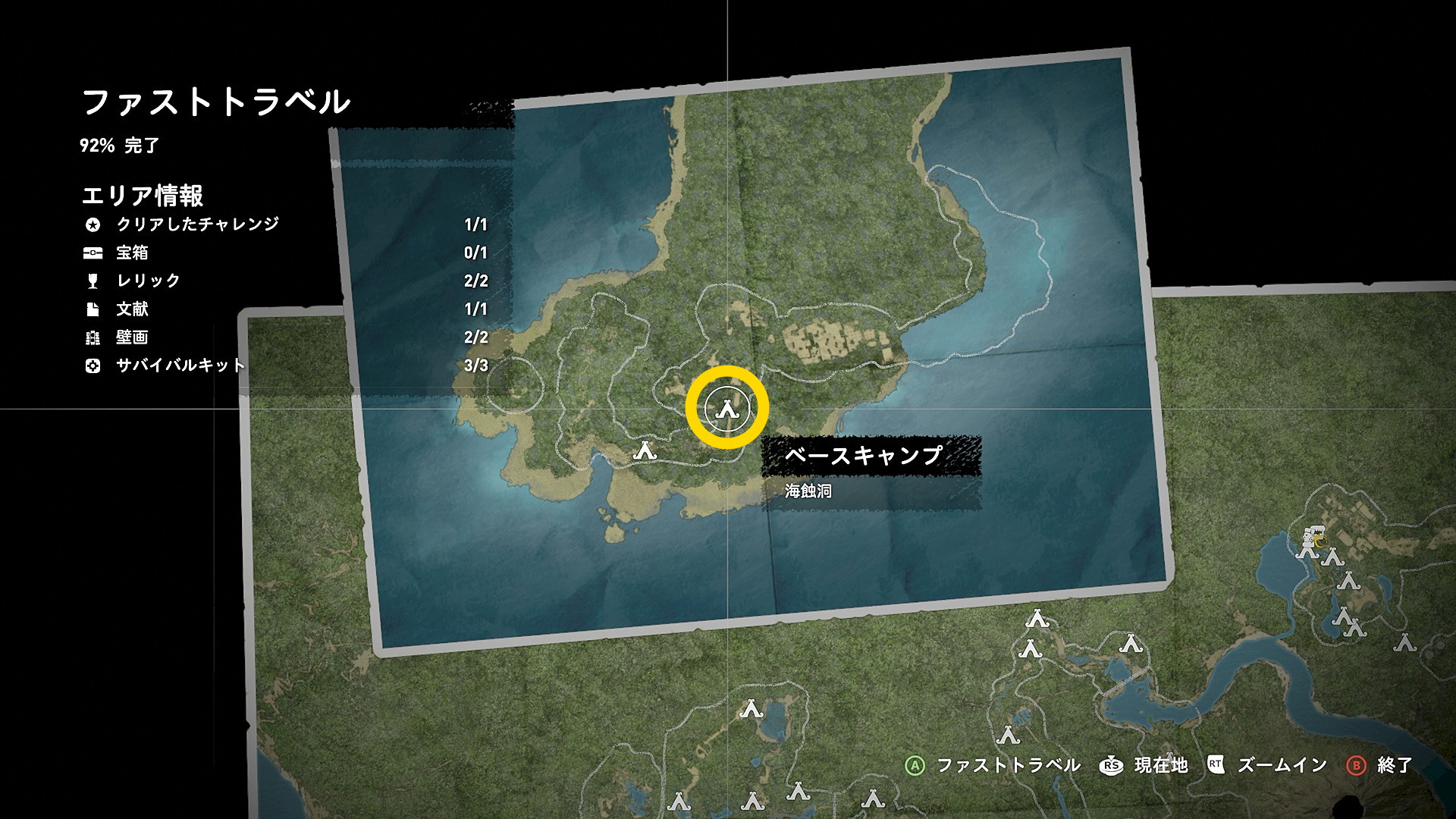 - 「ベースキャンプ:未開のジャングル」に戻り、「ベースキャンプ:ドクロの洞窟」にファストトラベル