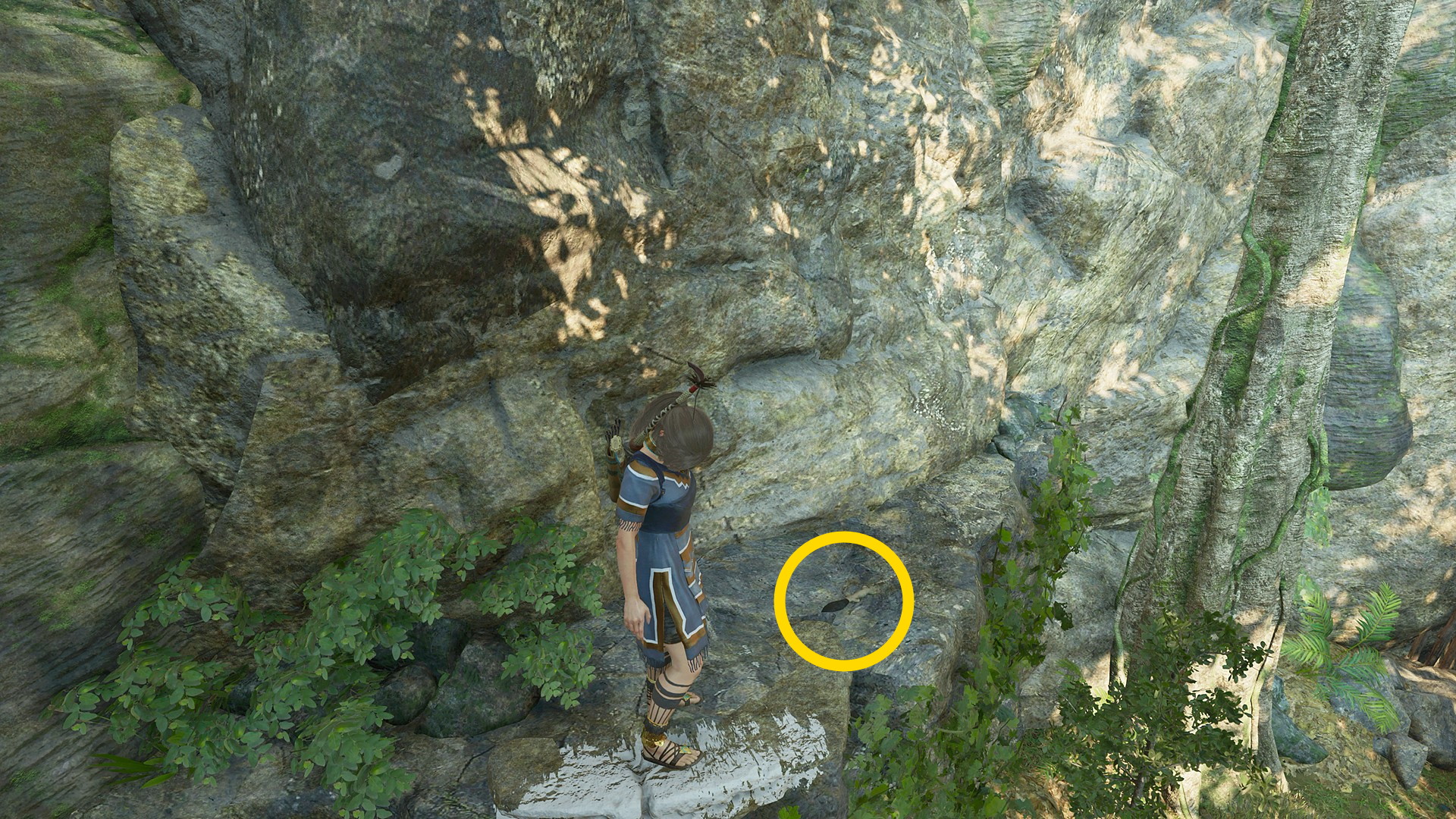 - 徒歩でもいいし、ファストトラベルでもいいので移動したら、傷の付いた木に登る