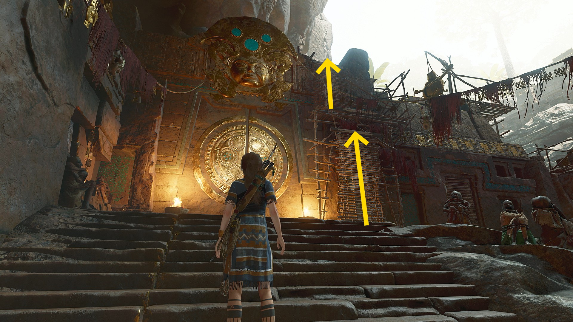 - ベースキャンプでセーブしたら、右側の壁を登って神殿に入り、奥の隙間を抜ける