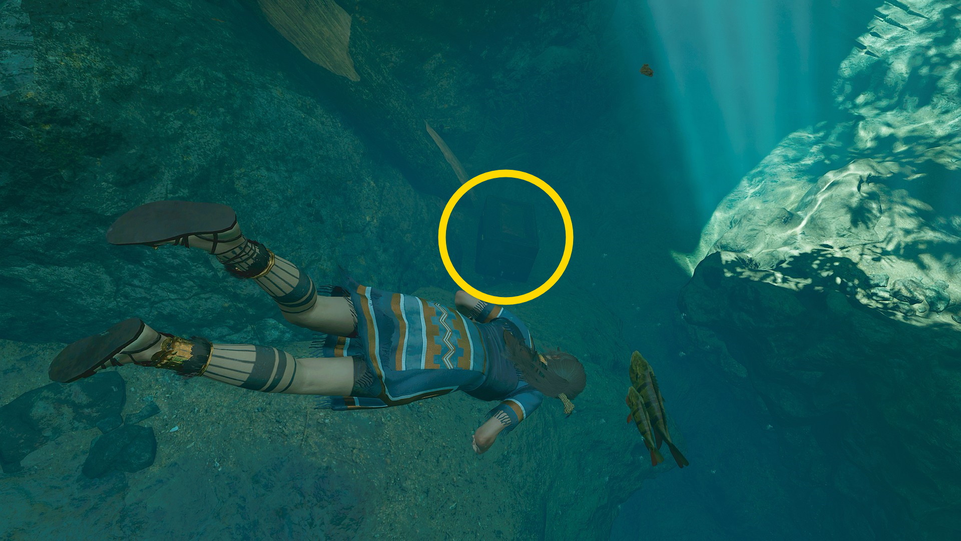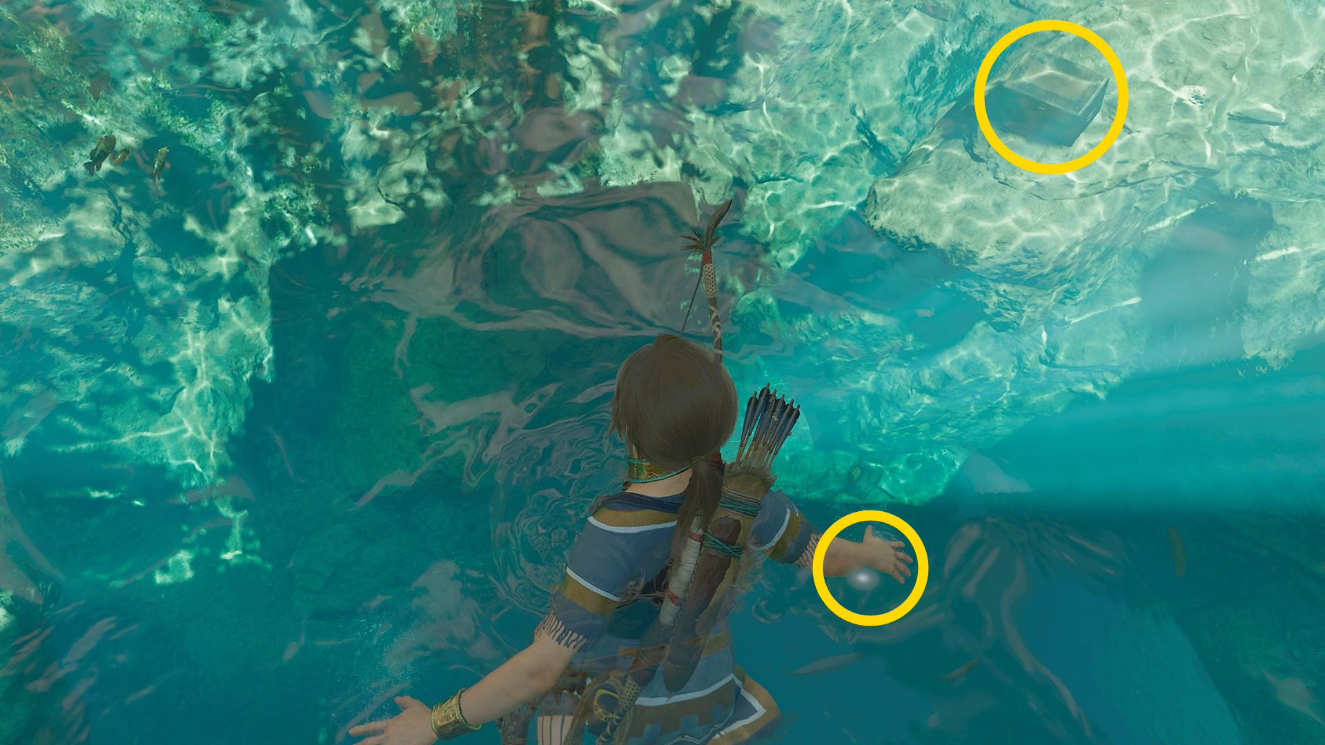 - 水中洞窟を移動して部屋に入る