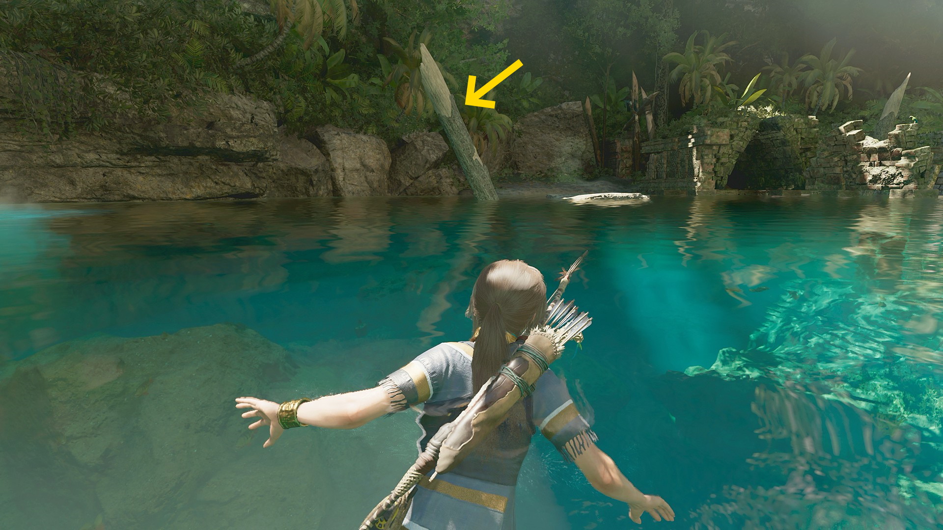 - 沈んだボートを左折し、あとは直進していけば陸に上がれる