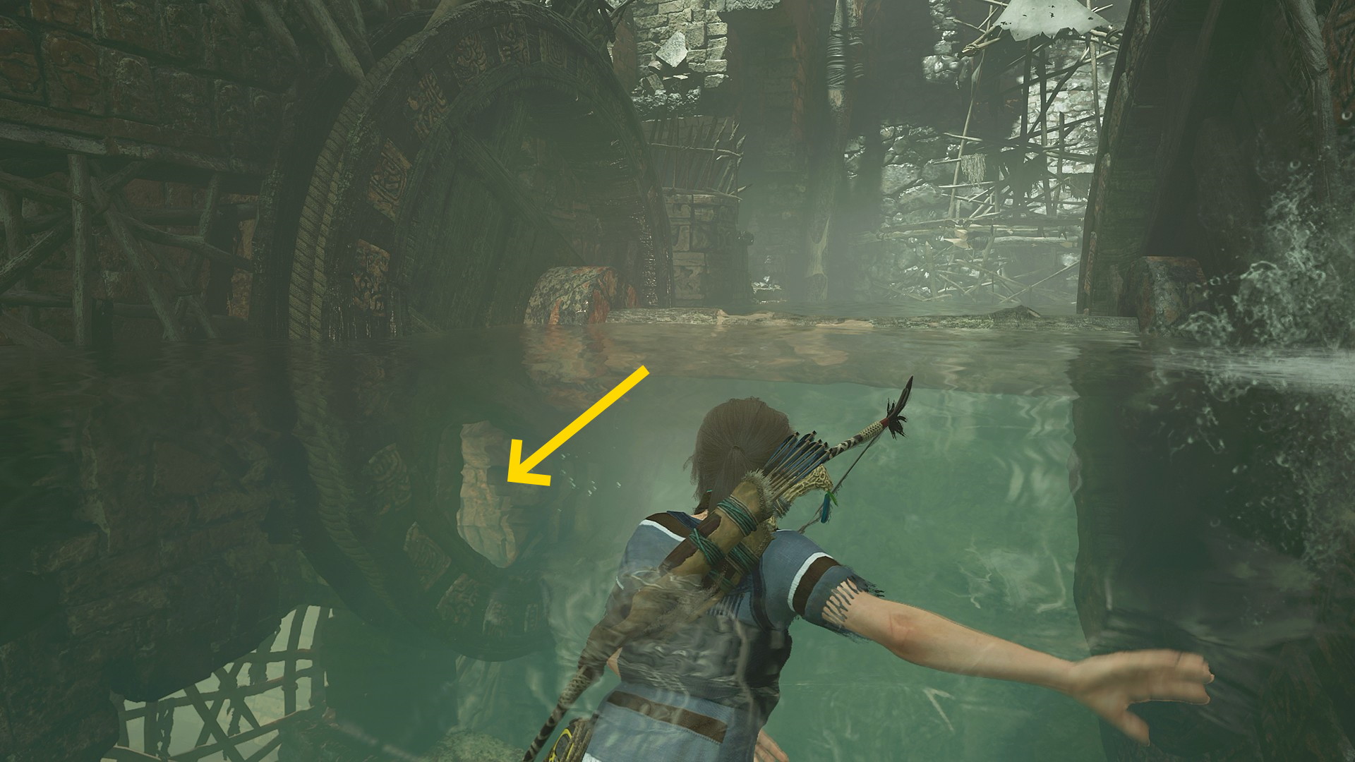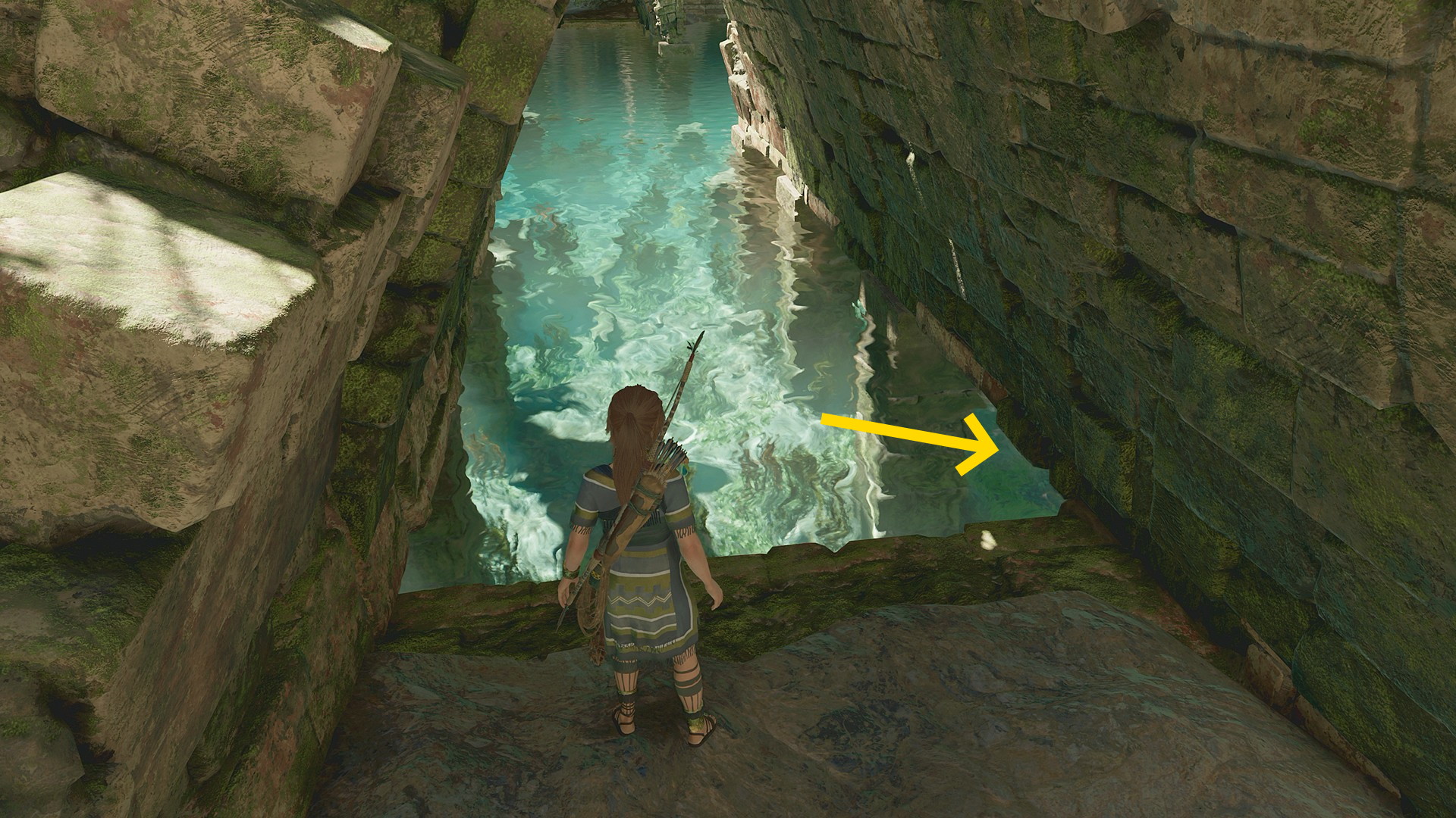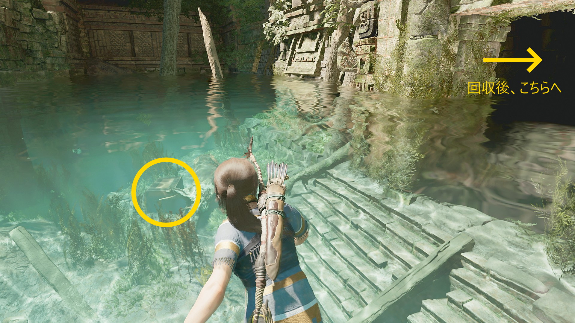 - このレバーはあとで動かすので、まずはレバーの左に進み、眼下の水を確認