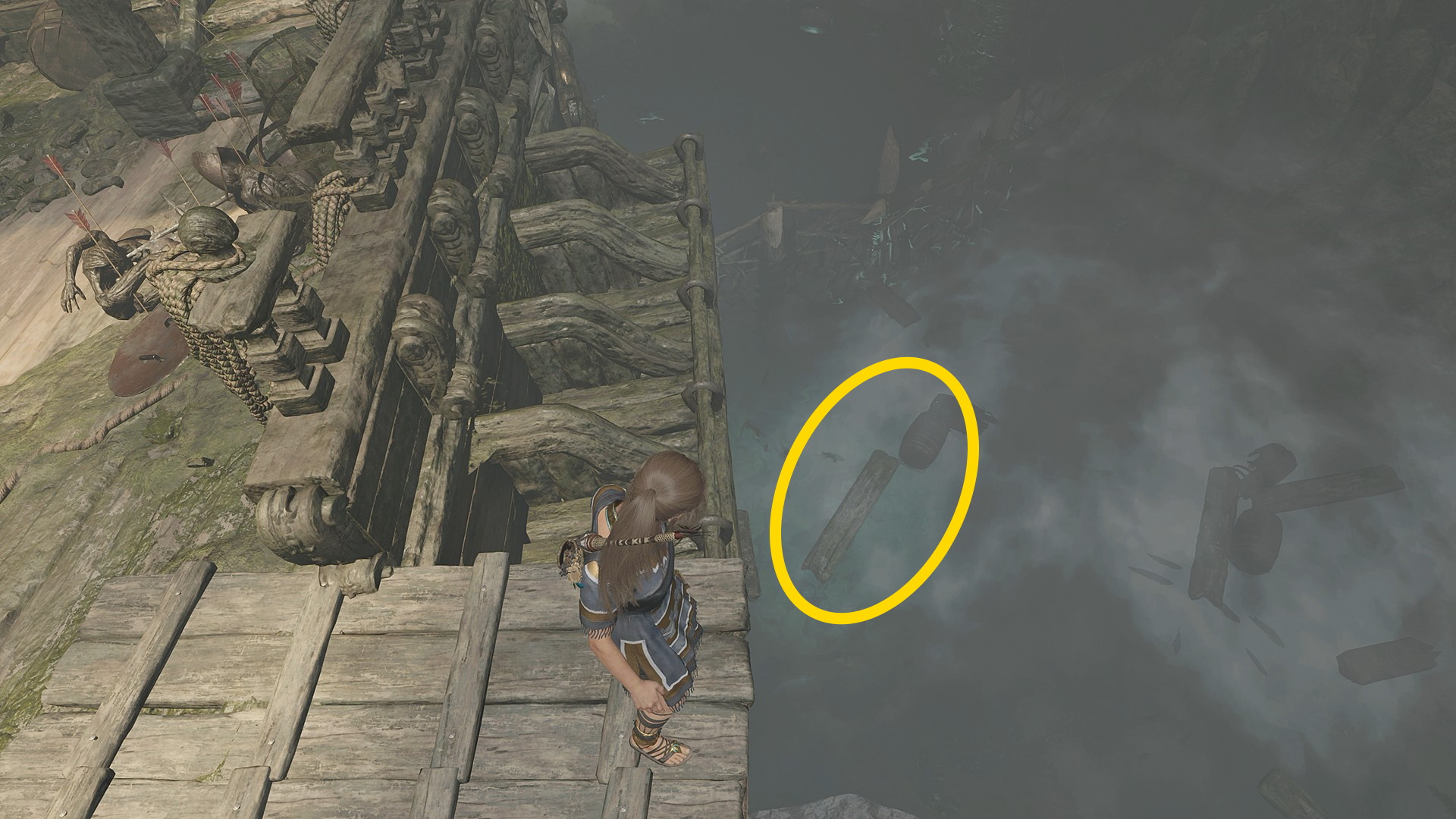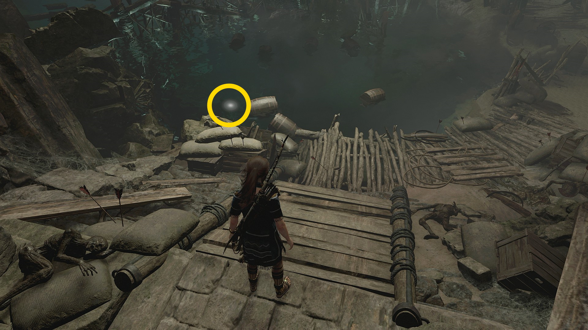 - 左側のバリケードをローププルで破壊し、船尾に出て水に飛び込む