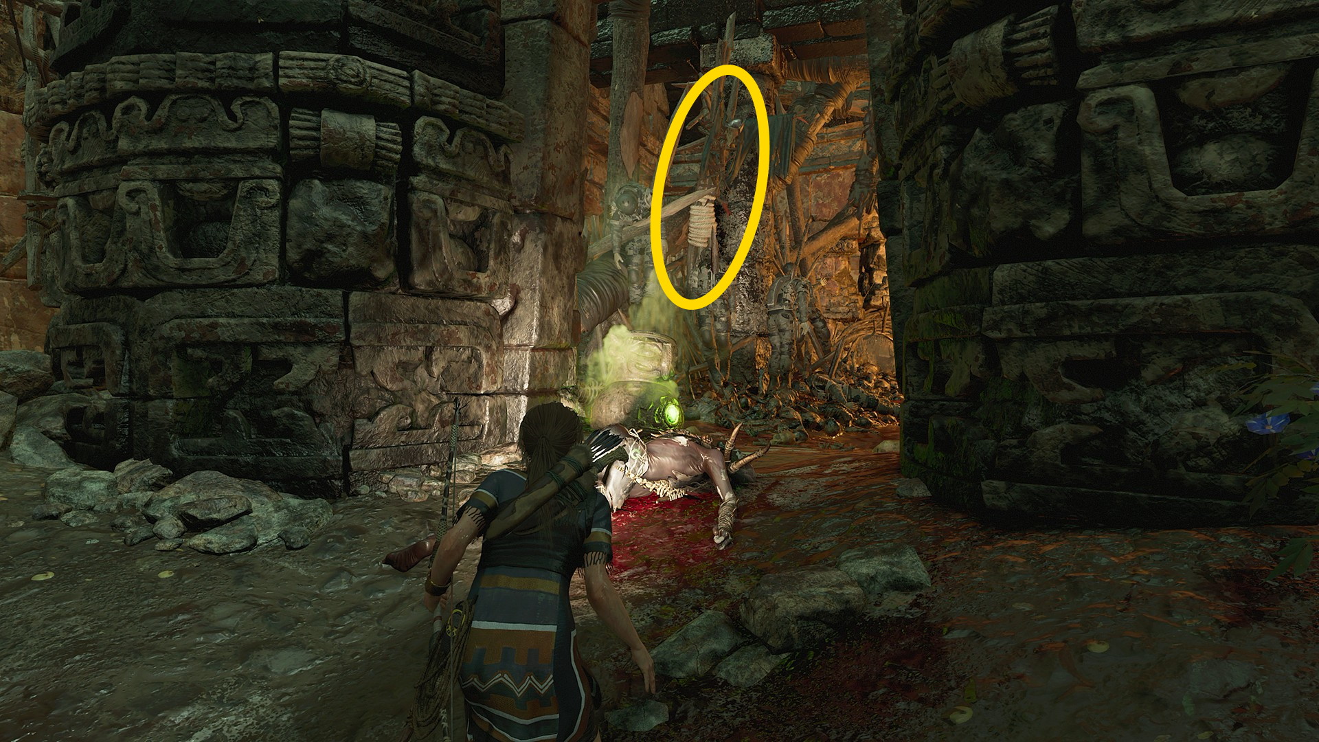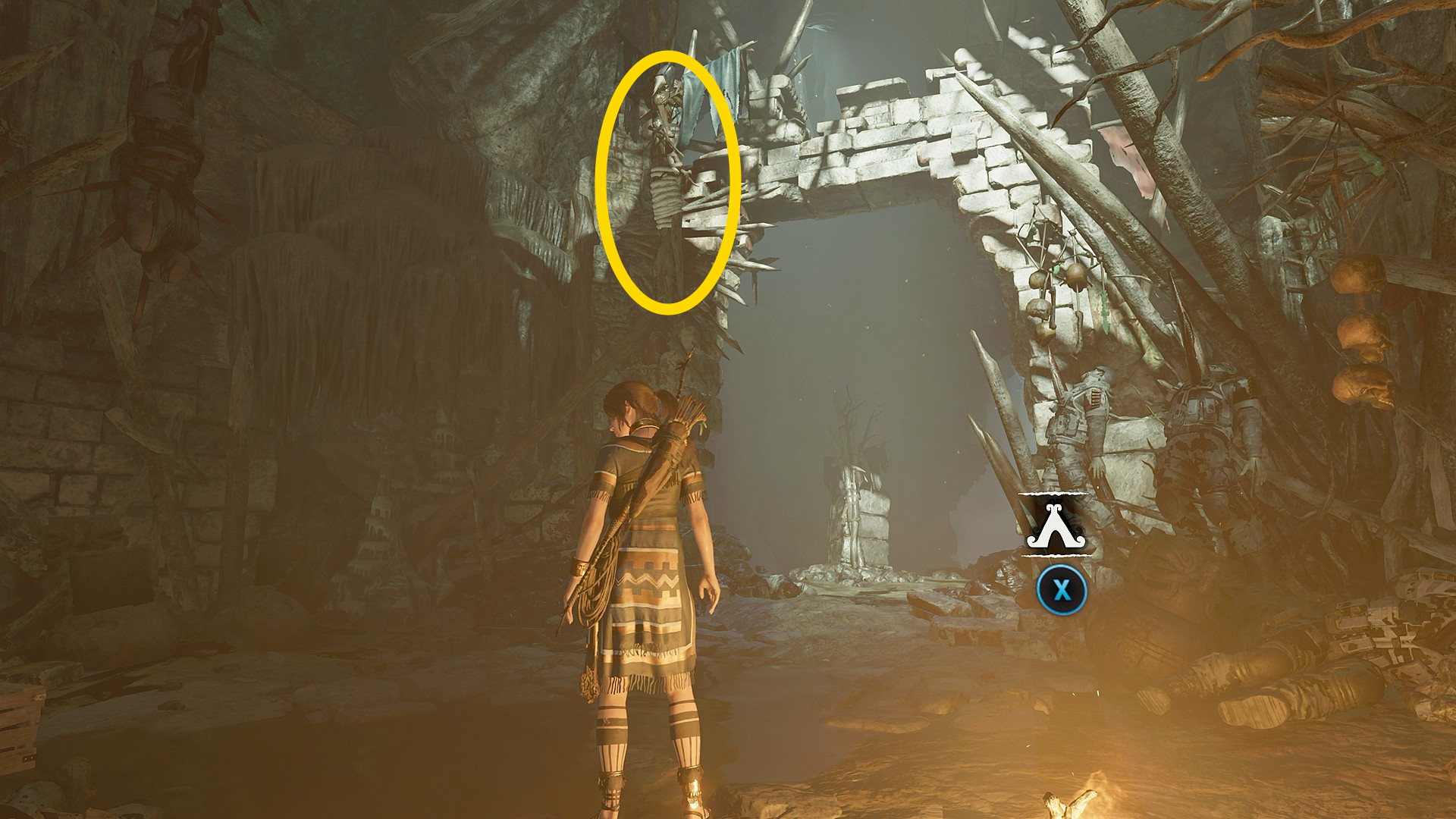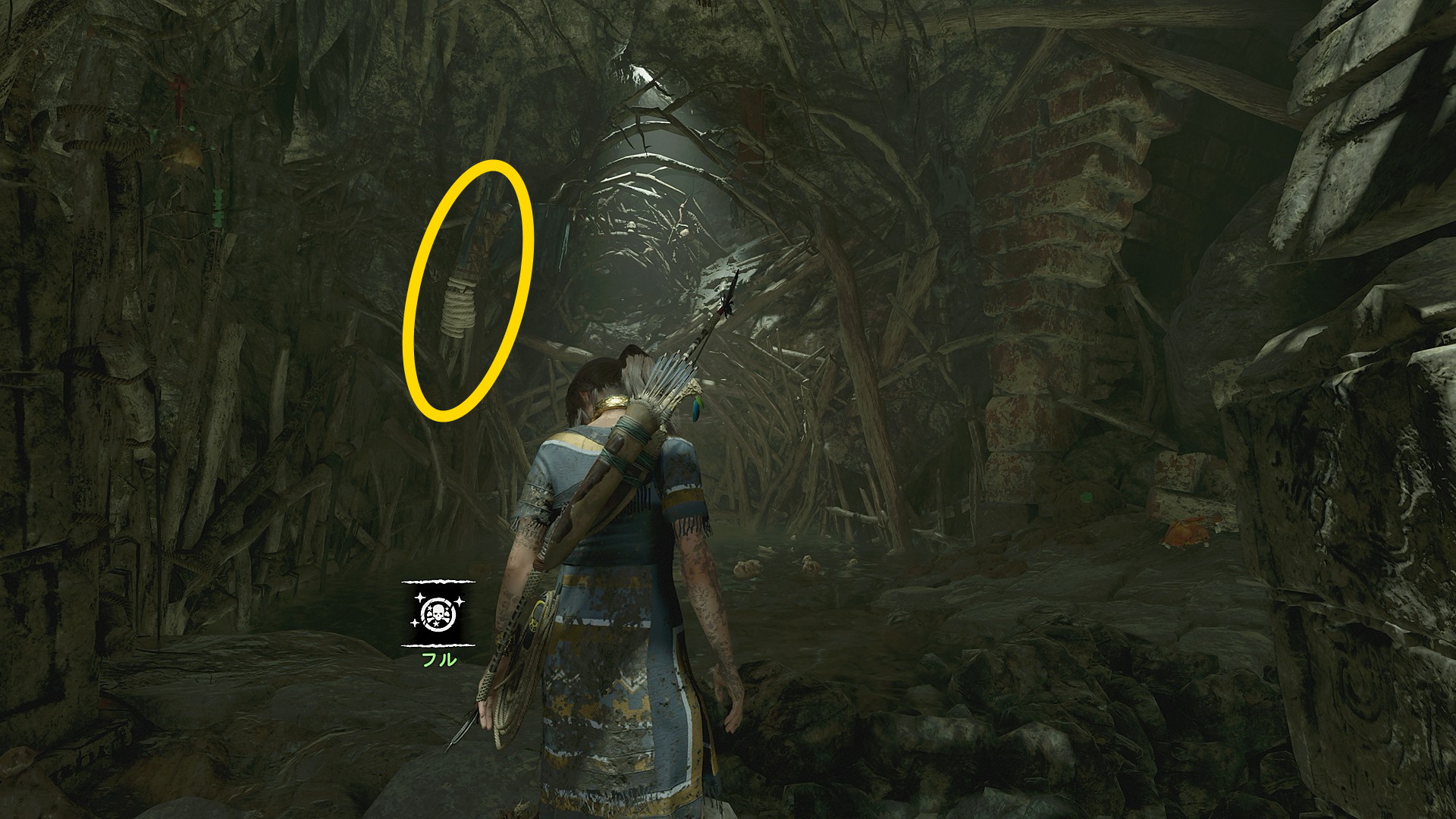 - 作動済みのトラップをくぐり、穴を飛び越えたら、右側に パイティティ征服:教団の支配