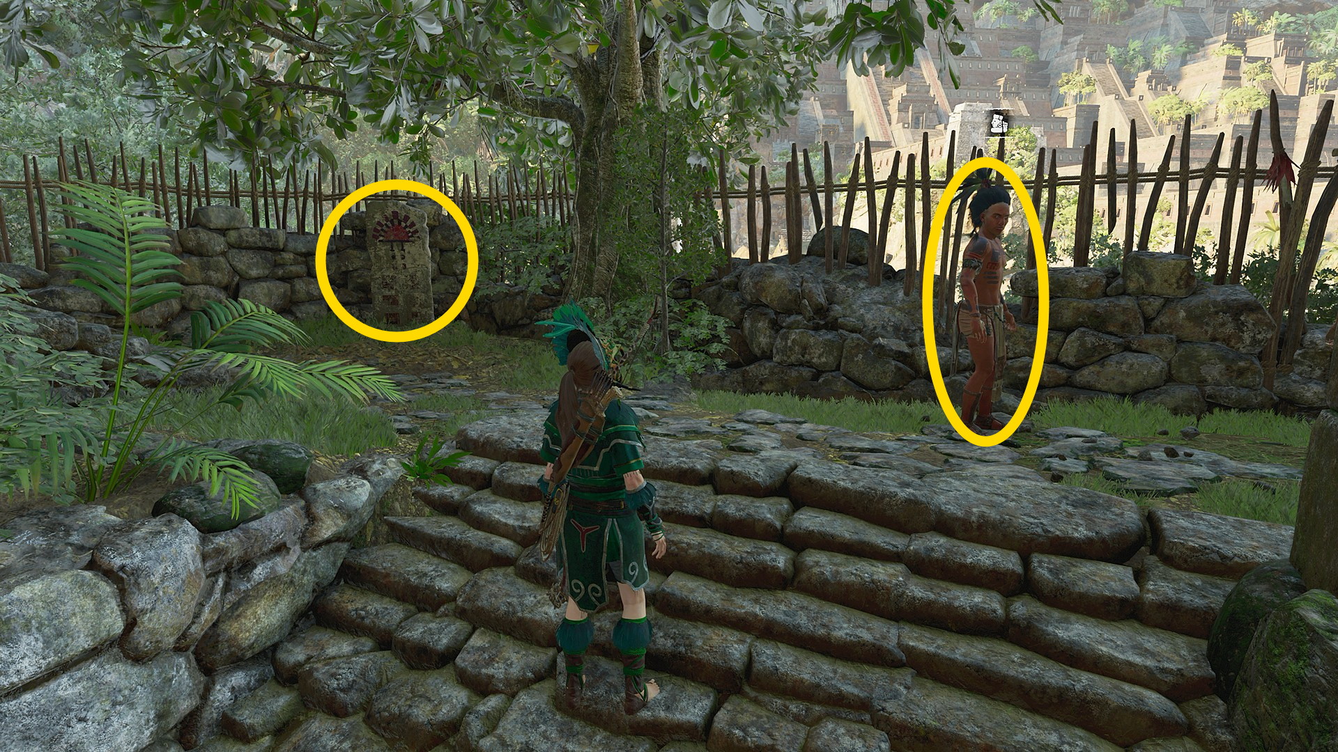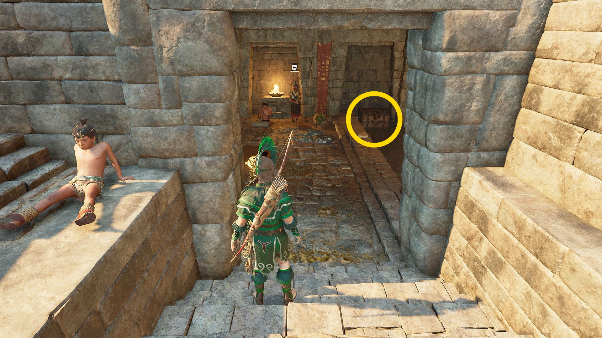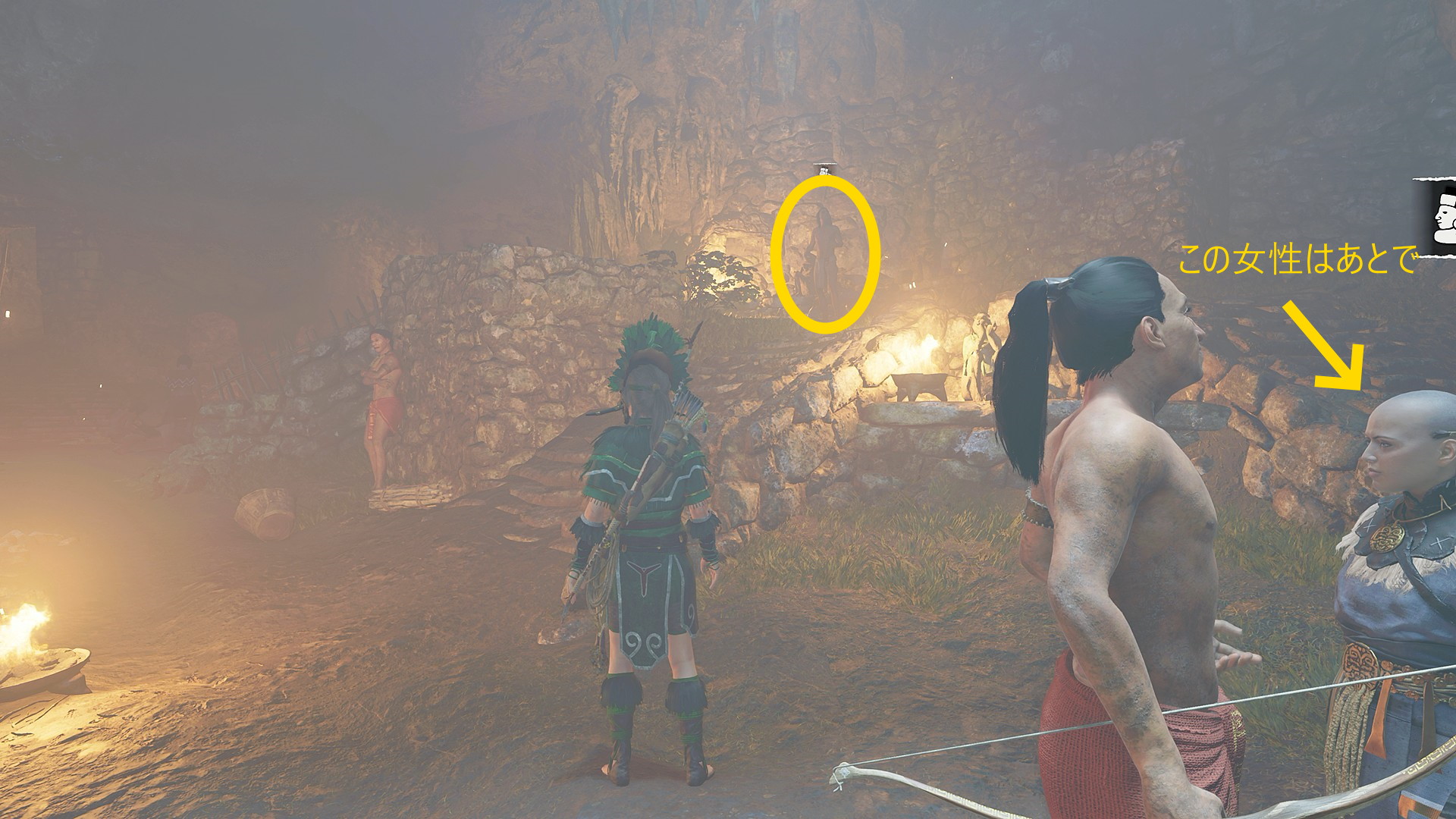 - カットシーンが終わった場所、左を向くと ククルカン教団:太陽の神官