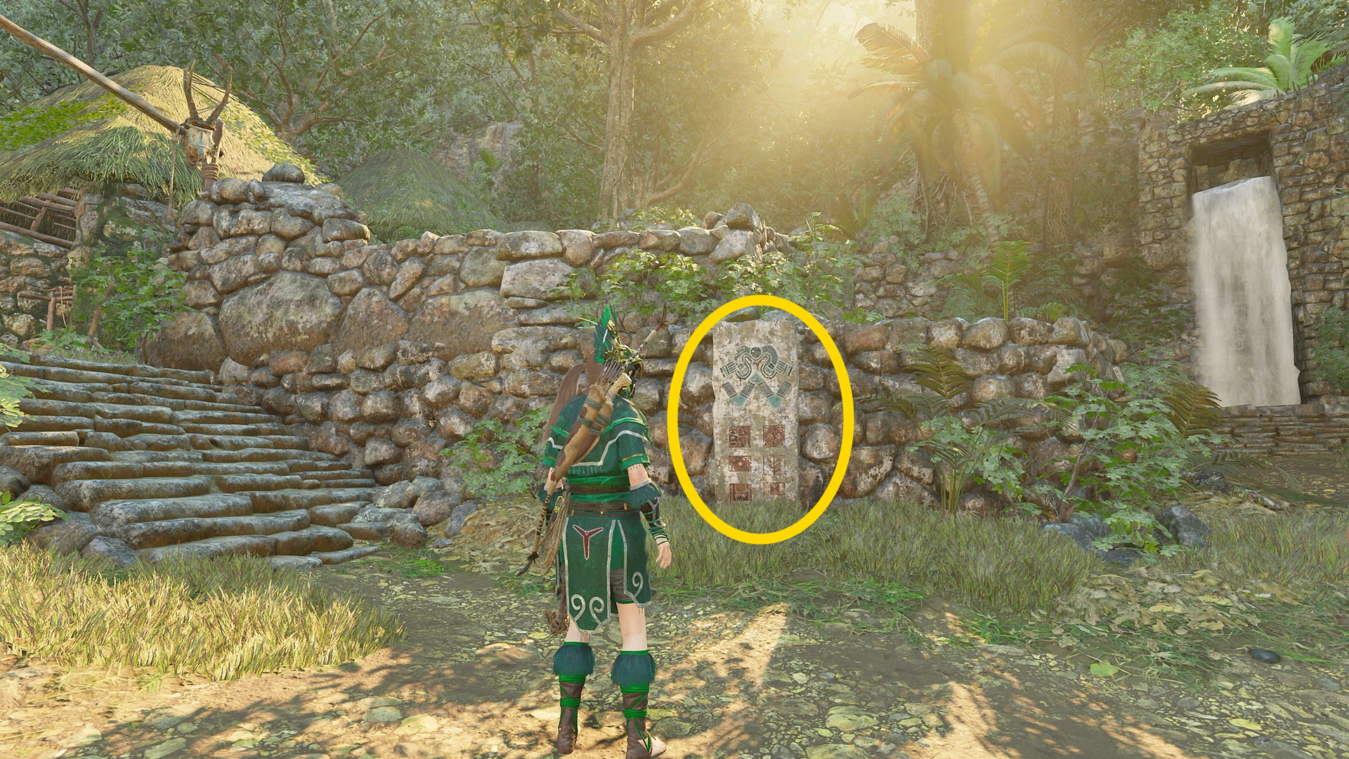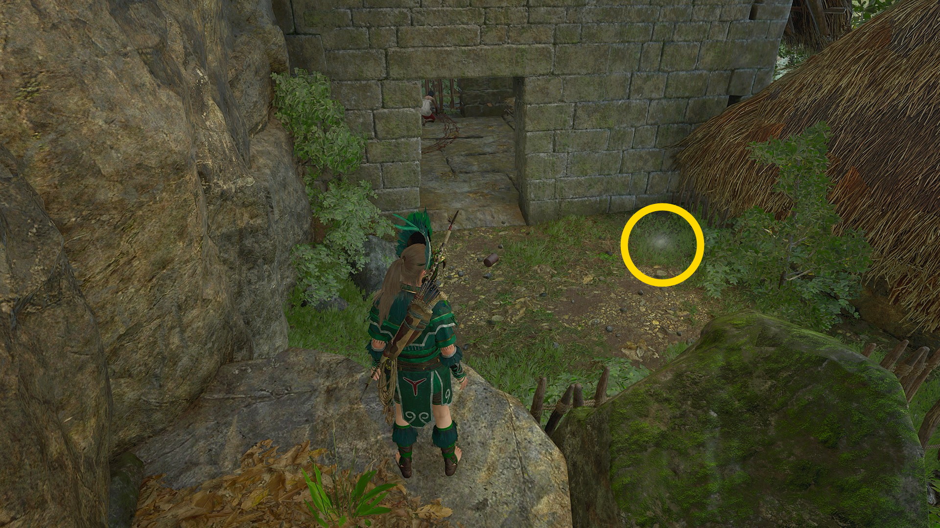 - 階段の左脇に 抵抗組織:抗え!、階段を下りた正面の小屋に 抵抗組織:銅の鎚矛