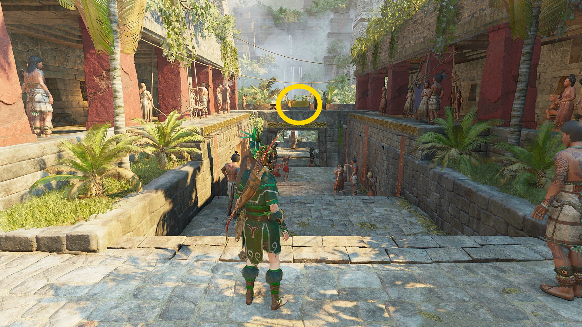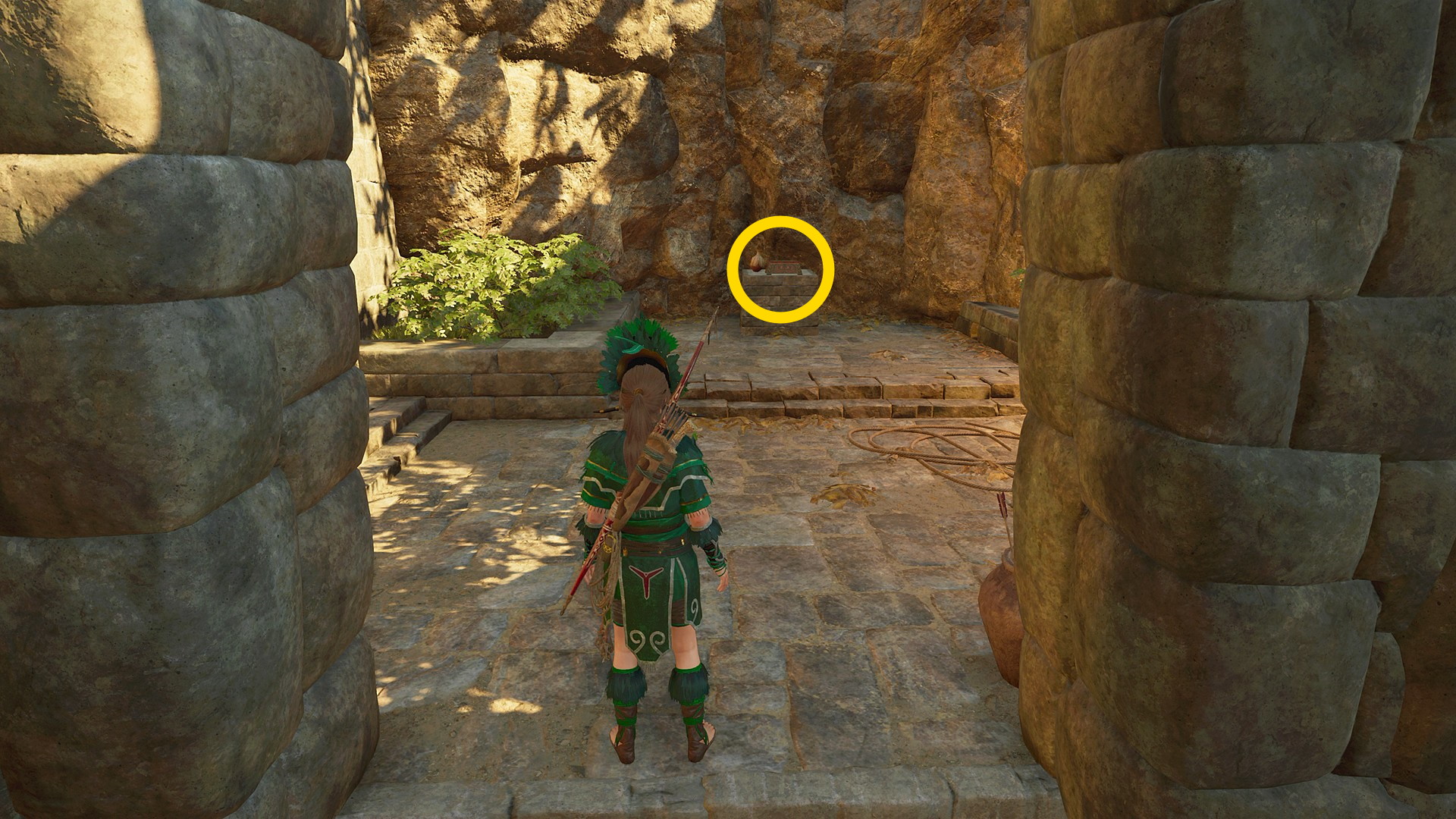- 「ベースキャンプ:神殿区」まで向かい、神殿を正面に見て、左の上り階段を登っていく