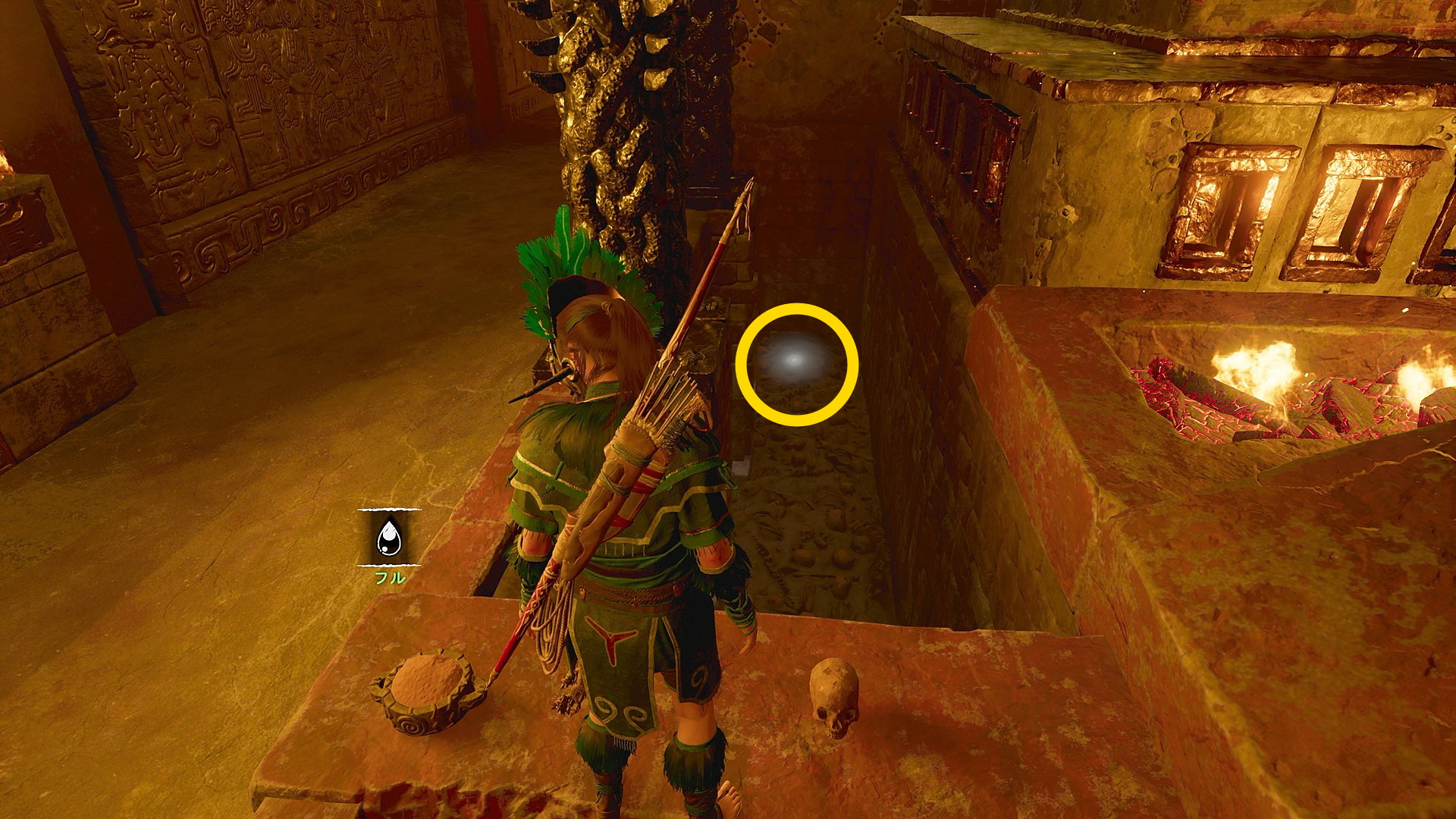 - 右側の短い橋に立ち、右前方の床に パイティティ征服:生贄になった王