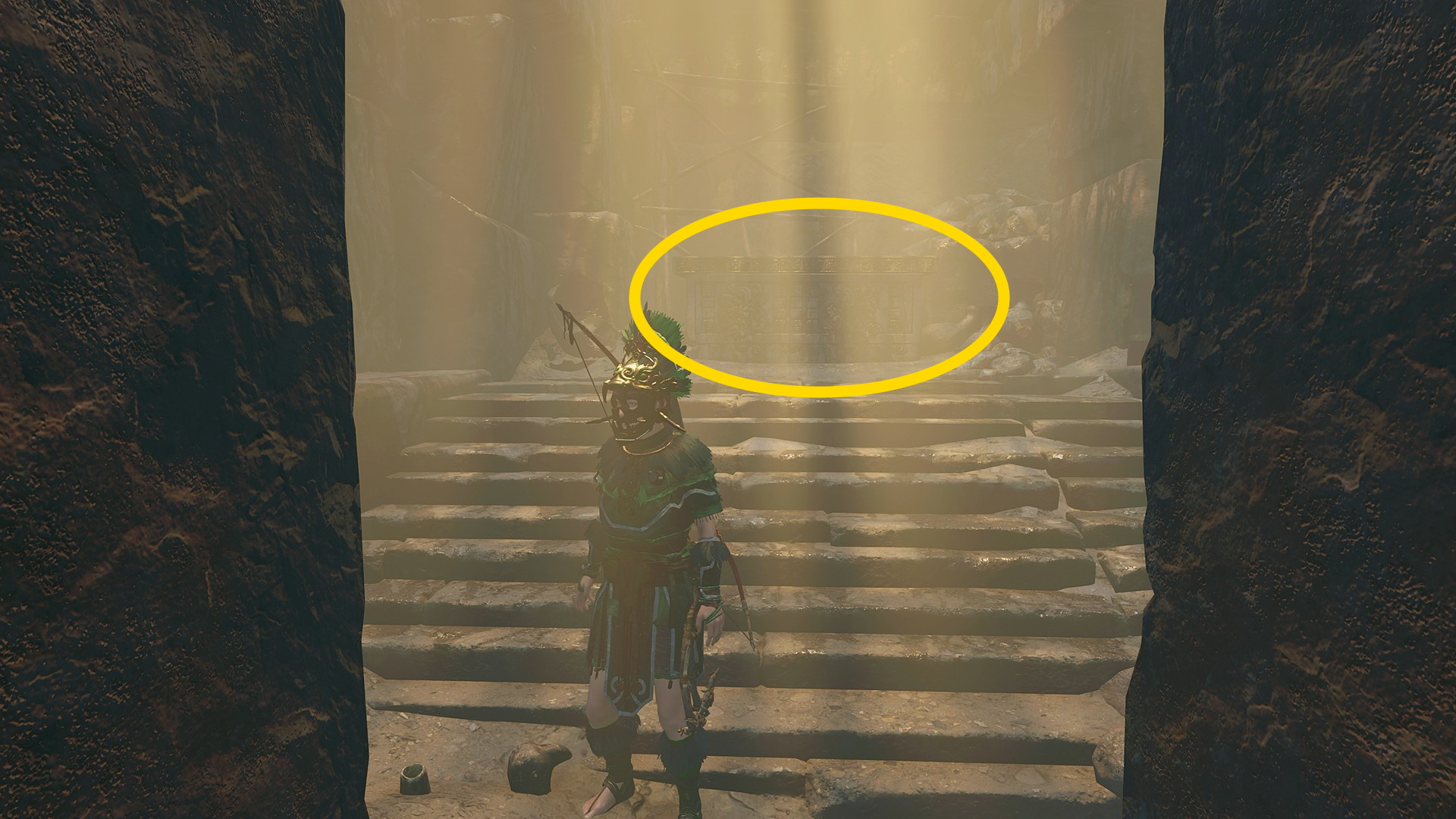- メインミッションマーカーに進み、先ほど合言葉を伝えたところから神殿に入る