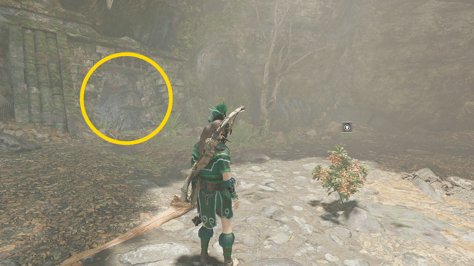 - 廃村に到着したら、階段を下りてまっすぐ進む
