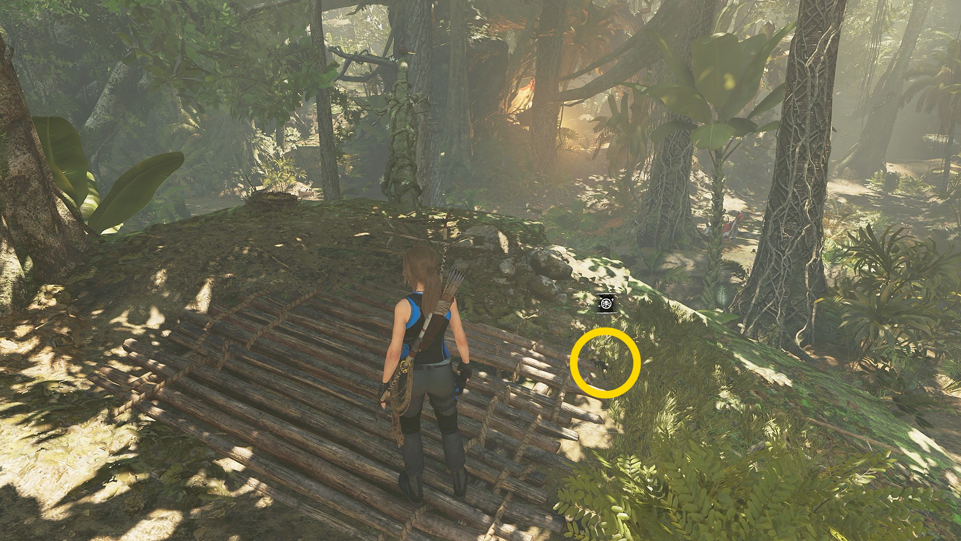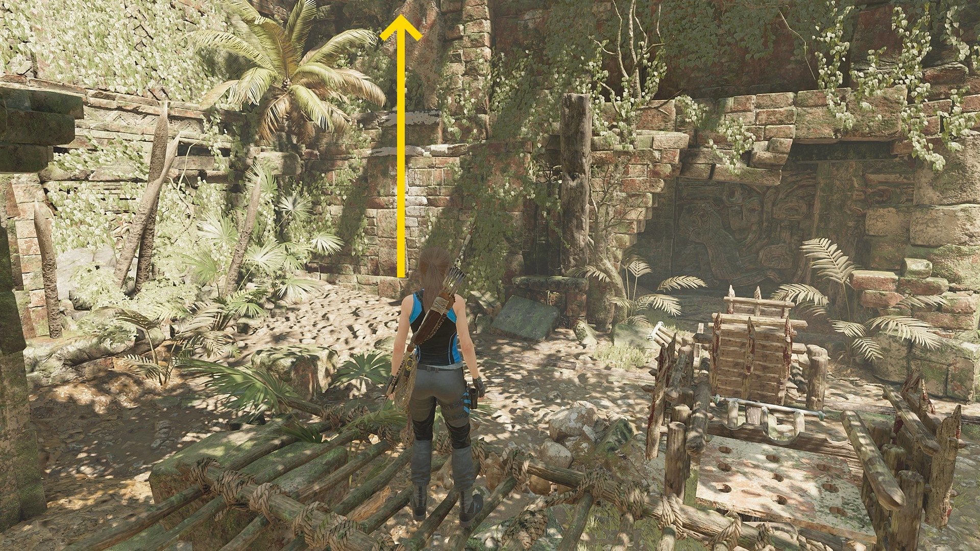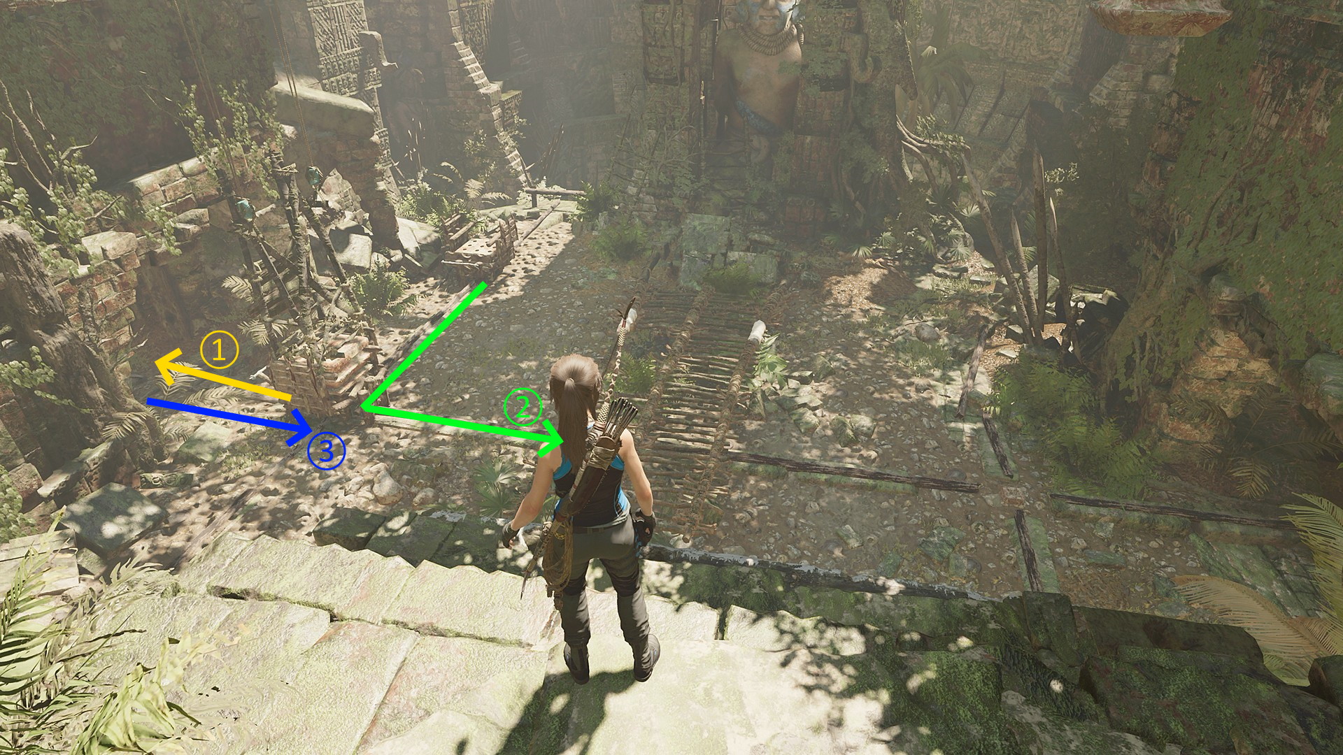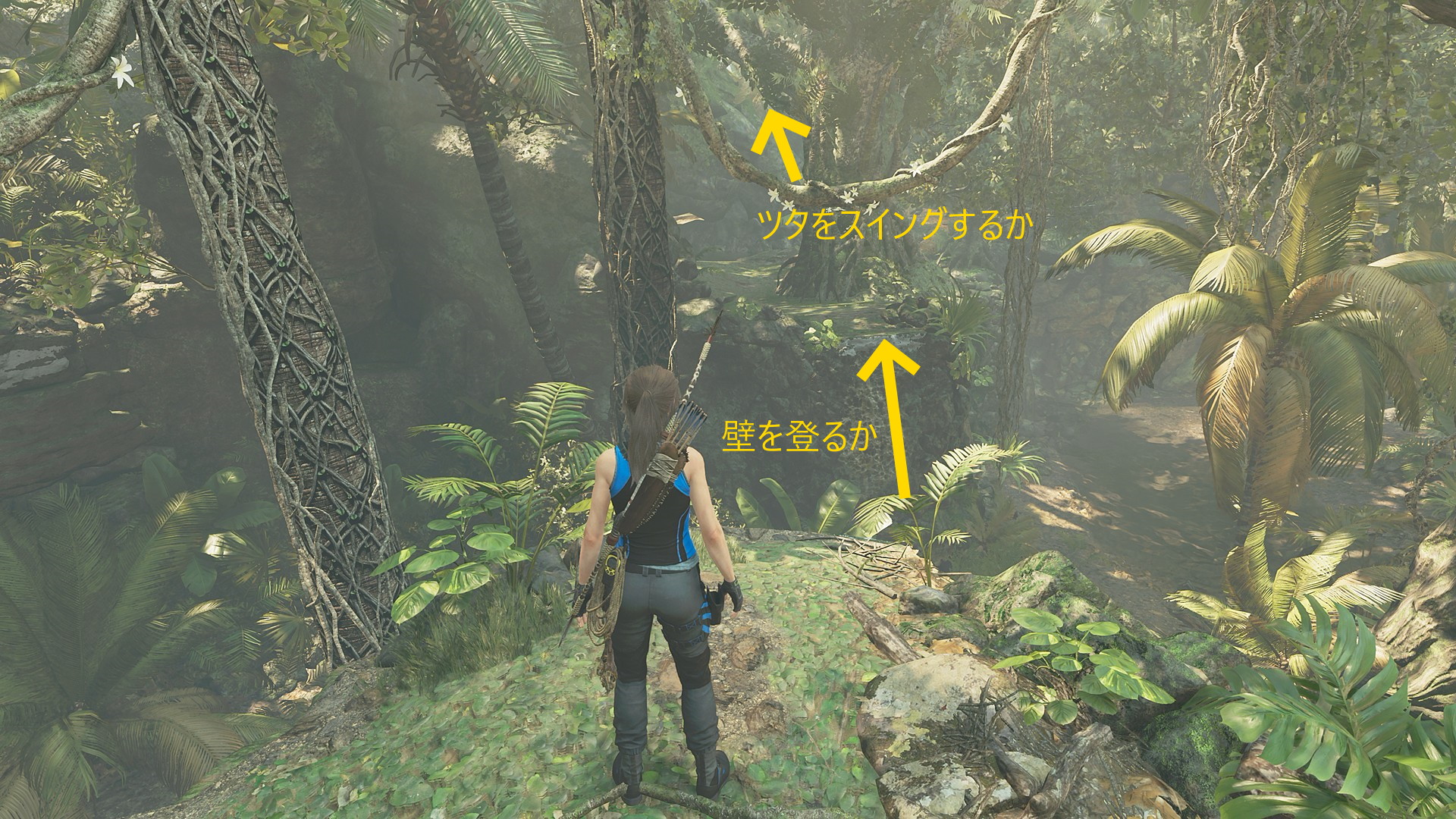 - 2本目のロープを切断した高台方面に進み、壁をよじ登る or ツタでスイングすればジョナがいるエリアに戻れる