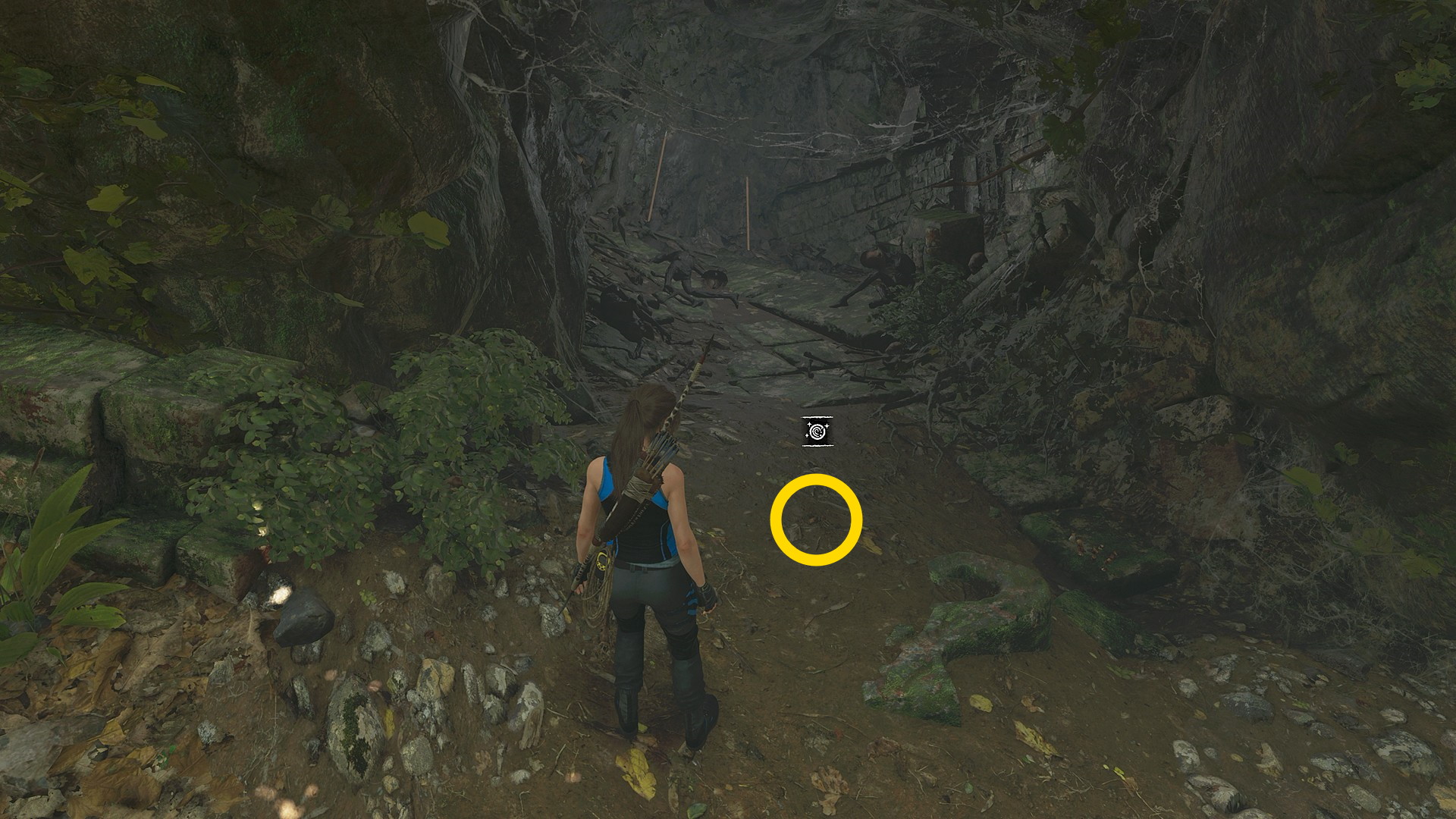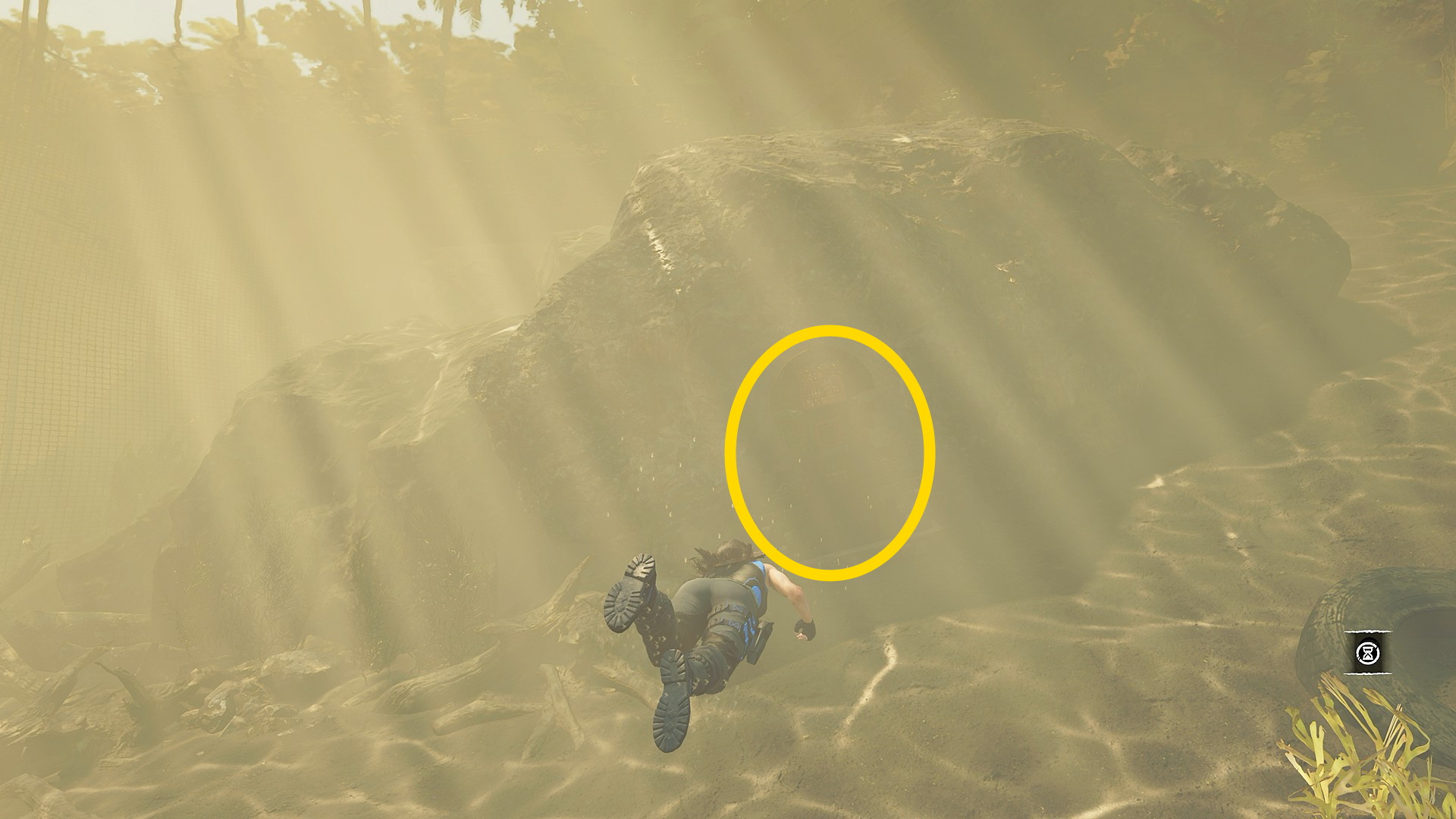 - 右後ろの洞窟に入る。洞窟入口、手前の左側にはサルベージあり