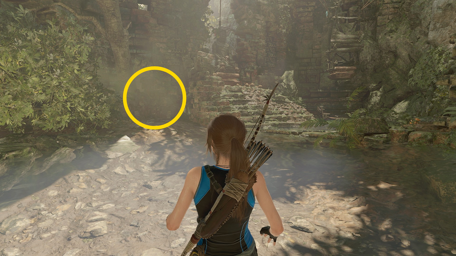 - 段差を登ったら、水場の奥にある壁を壊して侵入